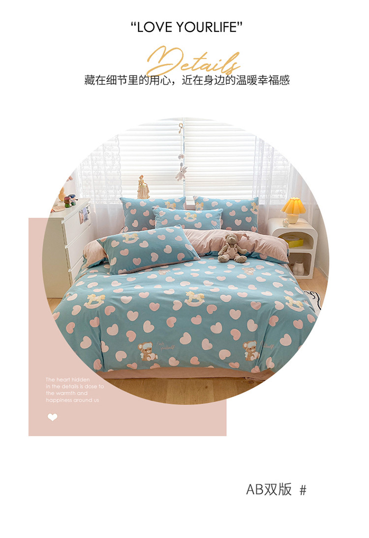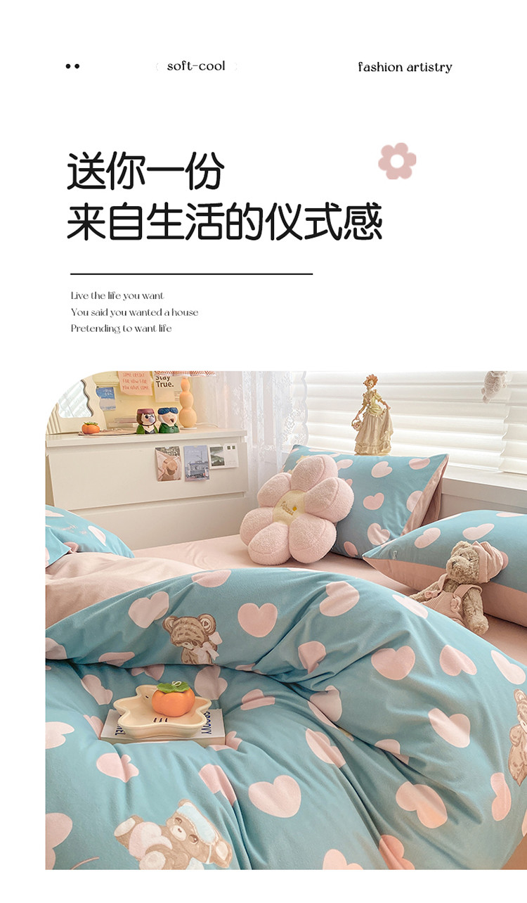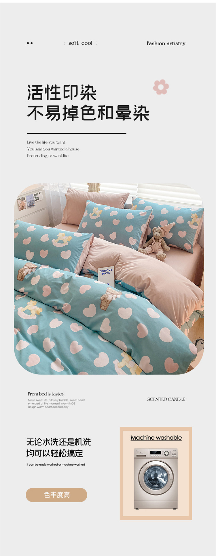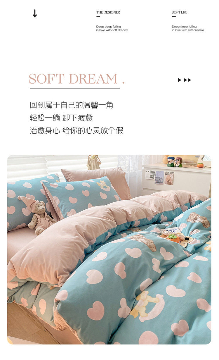 好阁 2022新款小清新企鹅绒四件套直播爆款 绿色心情
