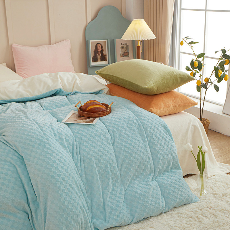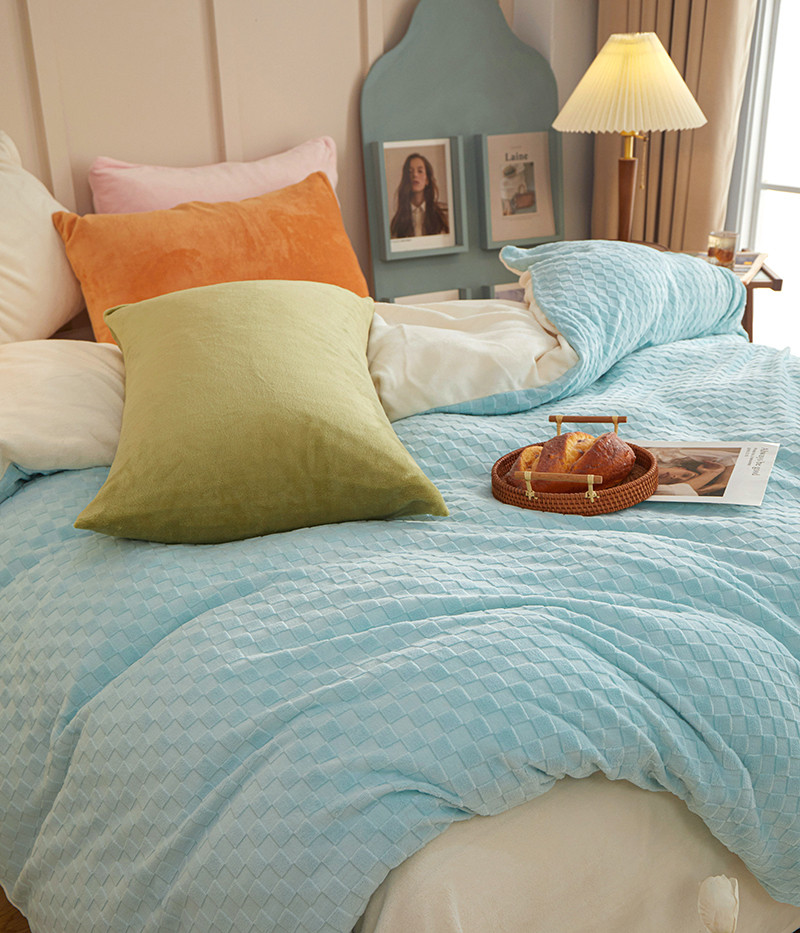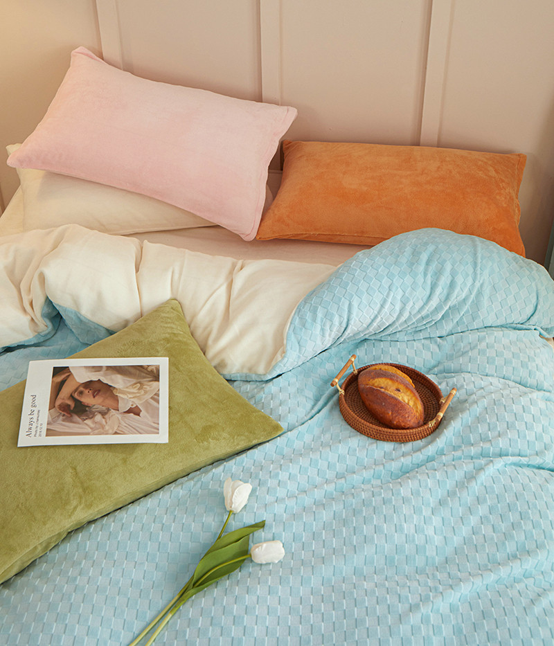 当前位置: 91家纺网 > 商品网购 > 床品套件 > 四件套 > 牛奶绒四件套 > 一米阳光2022新款立方格高克重牛奶绒撞色四件套系列 立方格豆紫