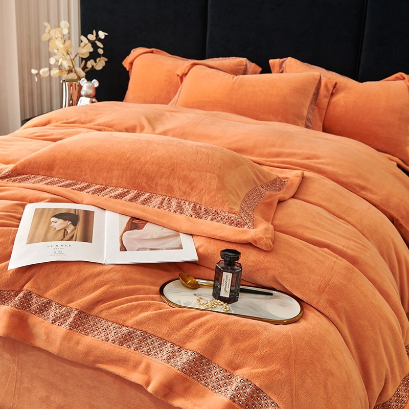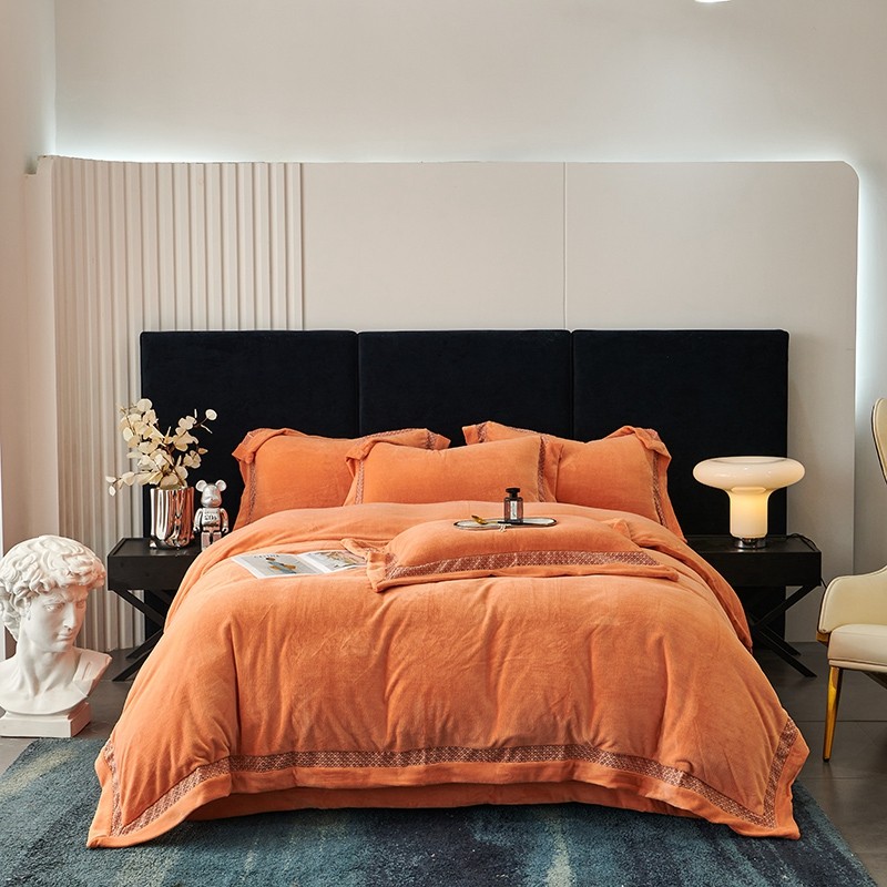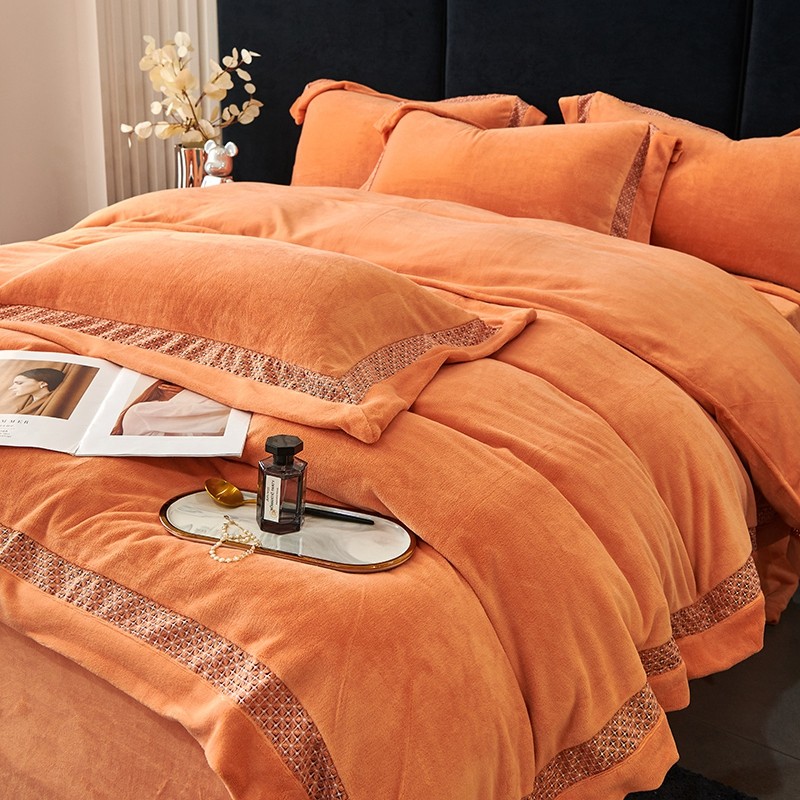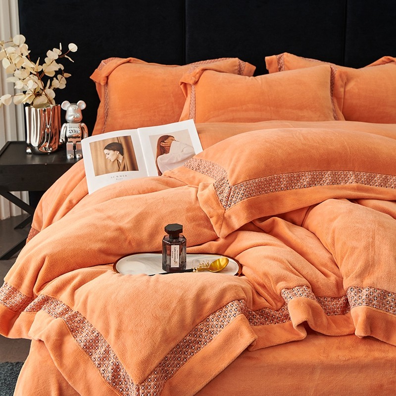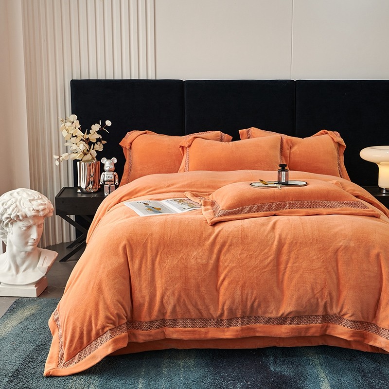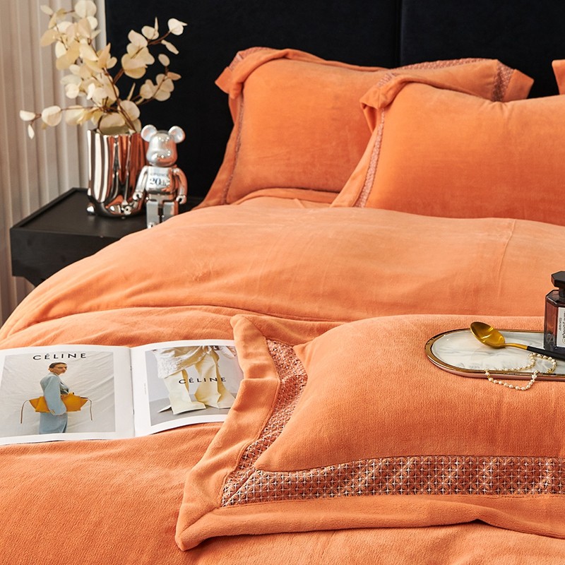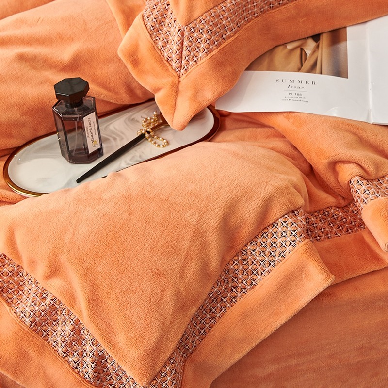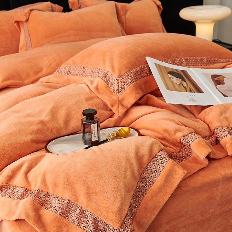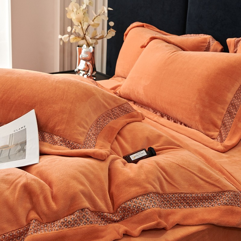 商品名称:时亿 2022新款260g雪融绒四件套-爱丁堡 爱丁堡 暖阳橘