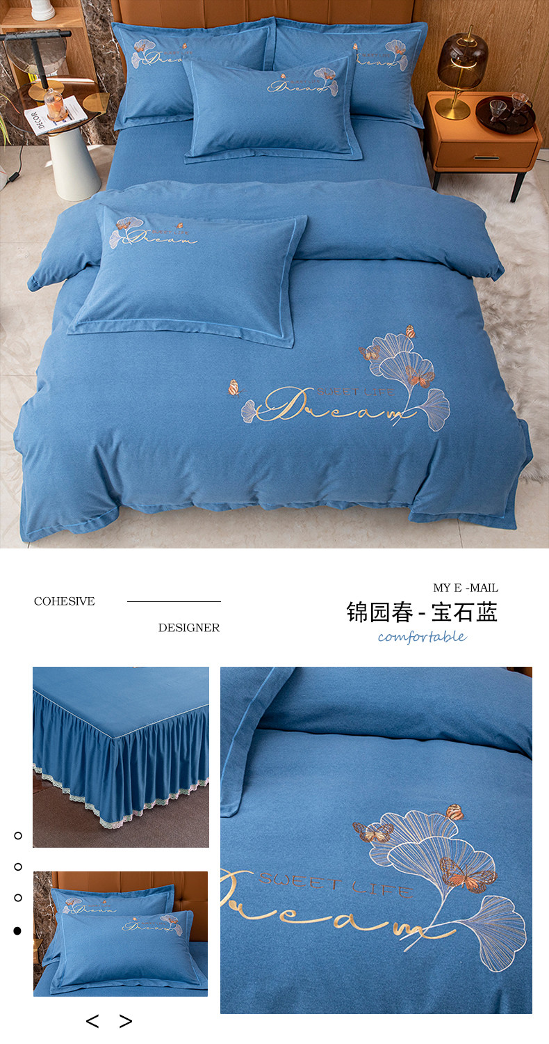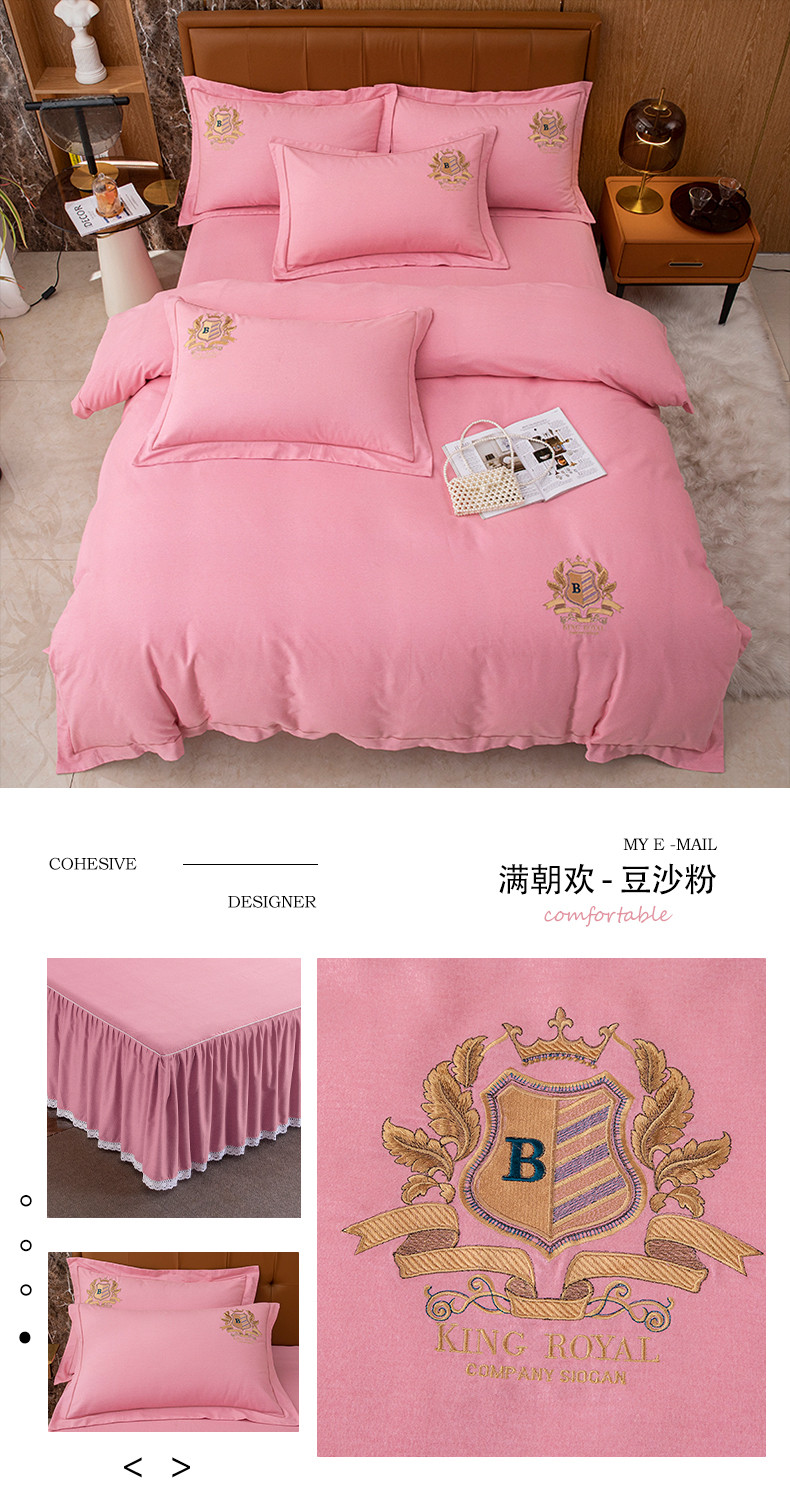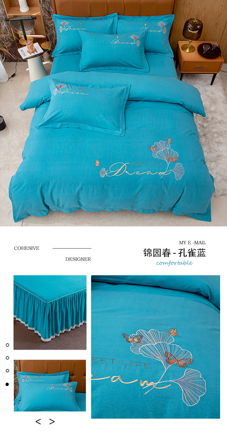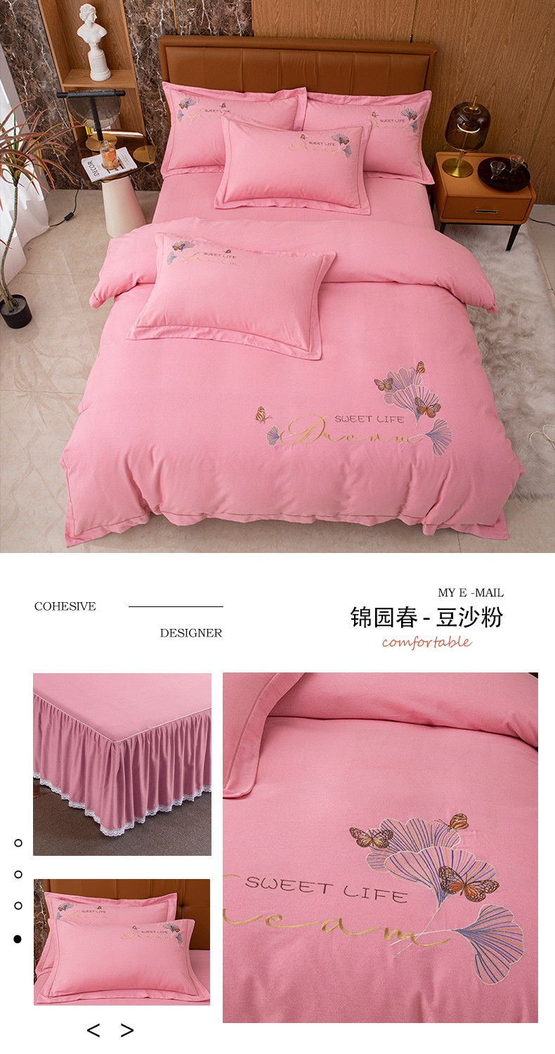 (总)纽缦 2022新款纯棉加厚纯色绣花款床裙四件套