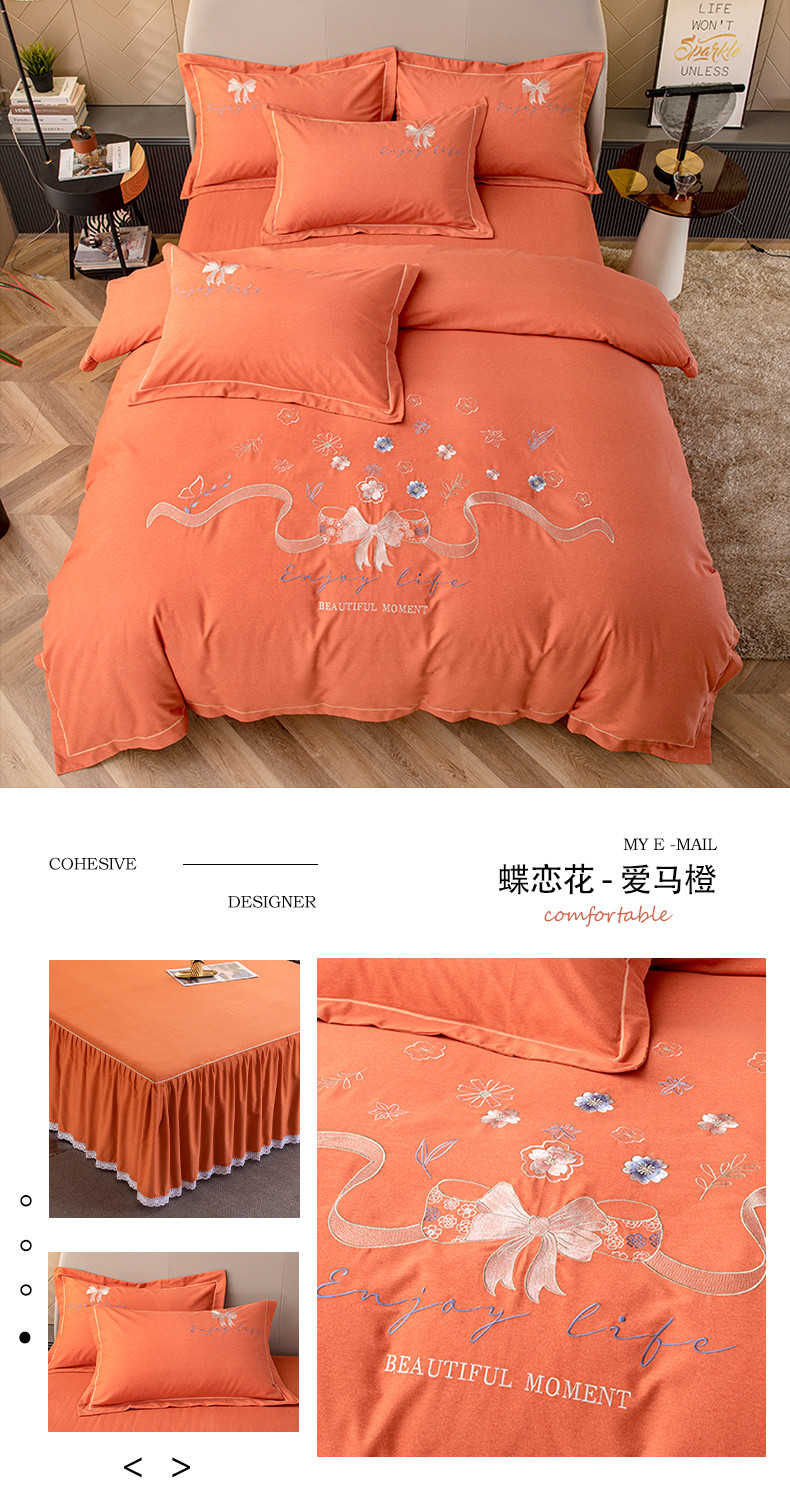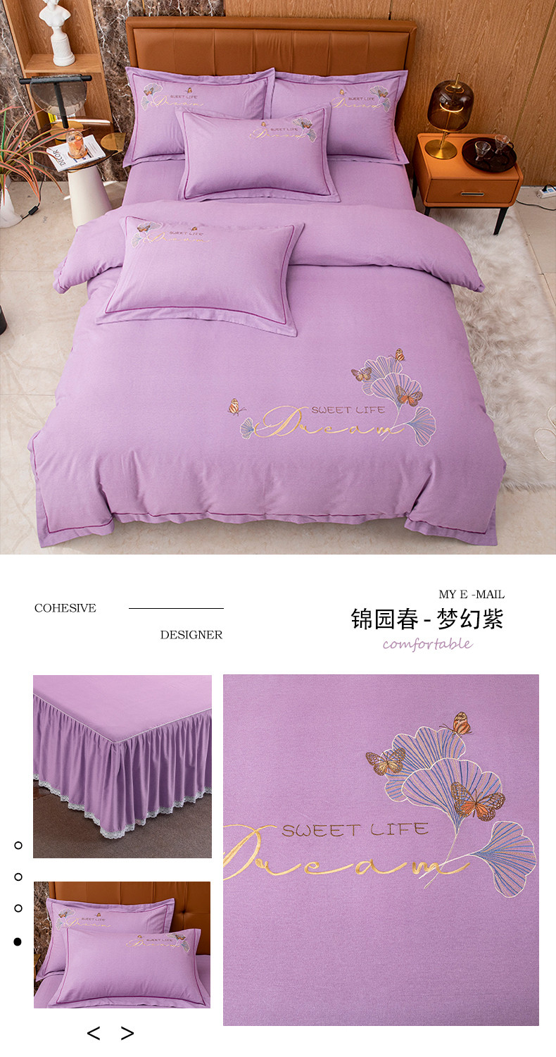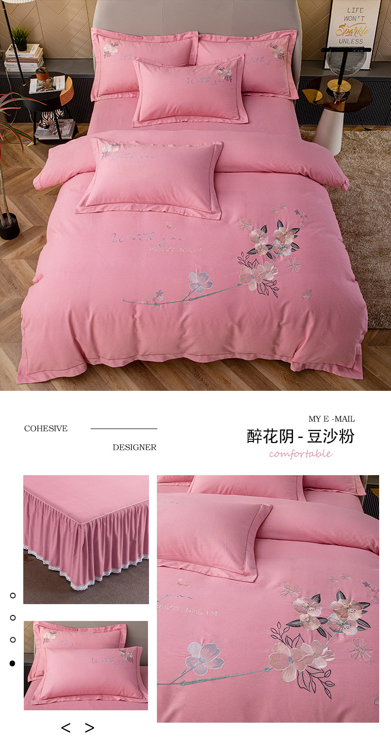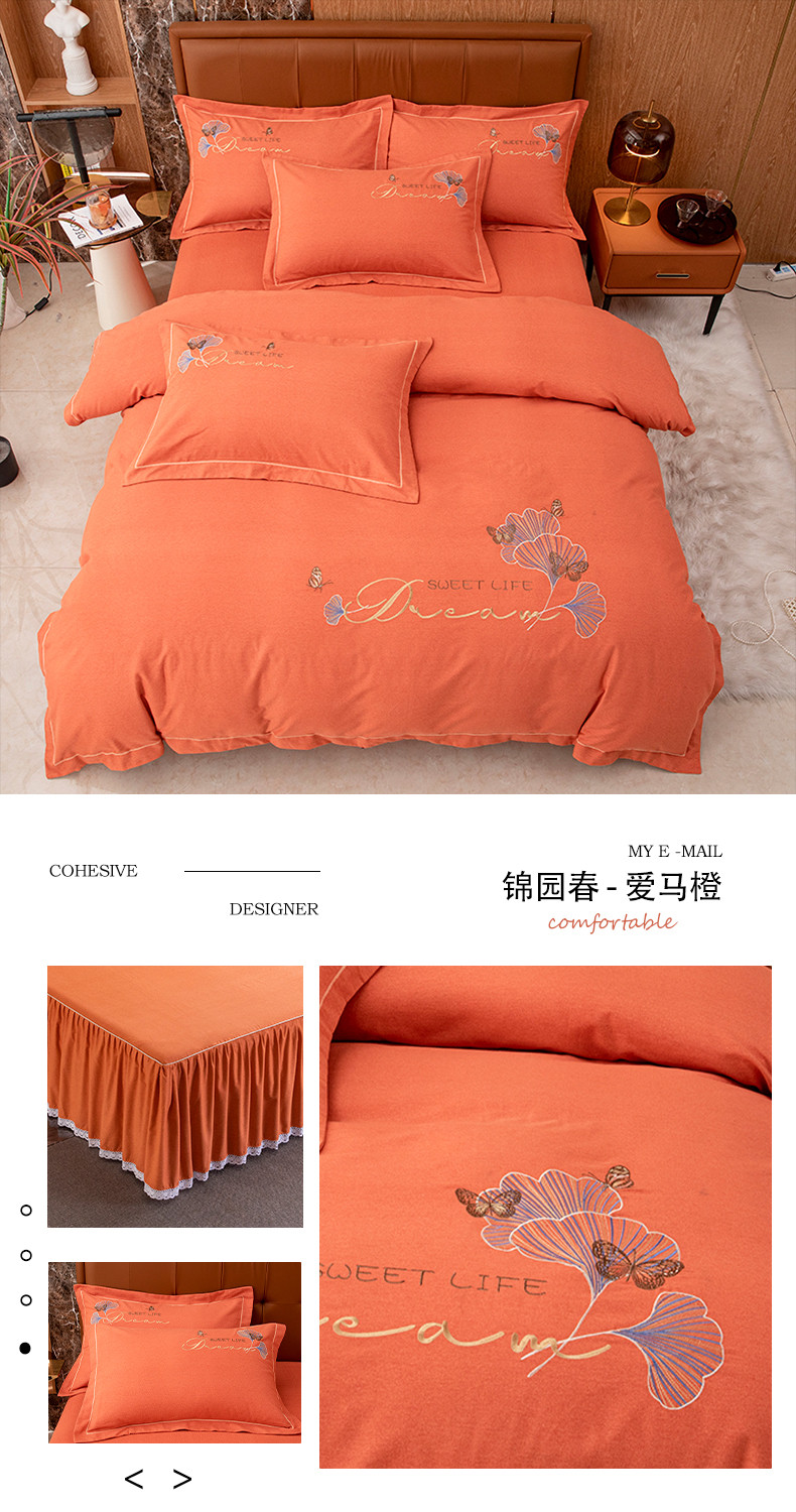 (总)纽缦 2022新款纯棉加厚纯色绣花款床裙四件套