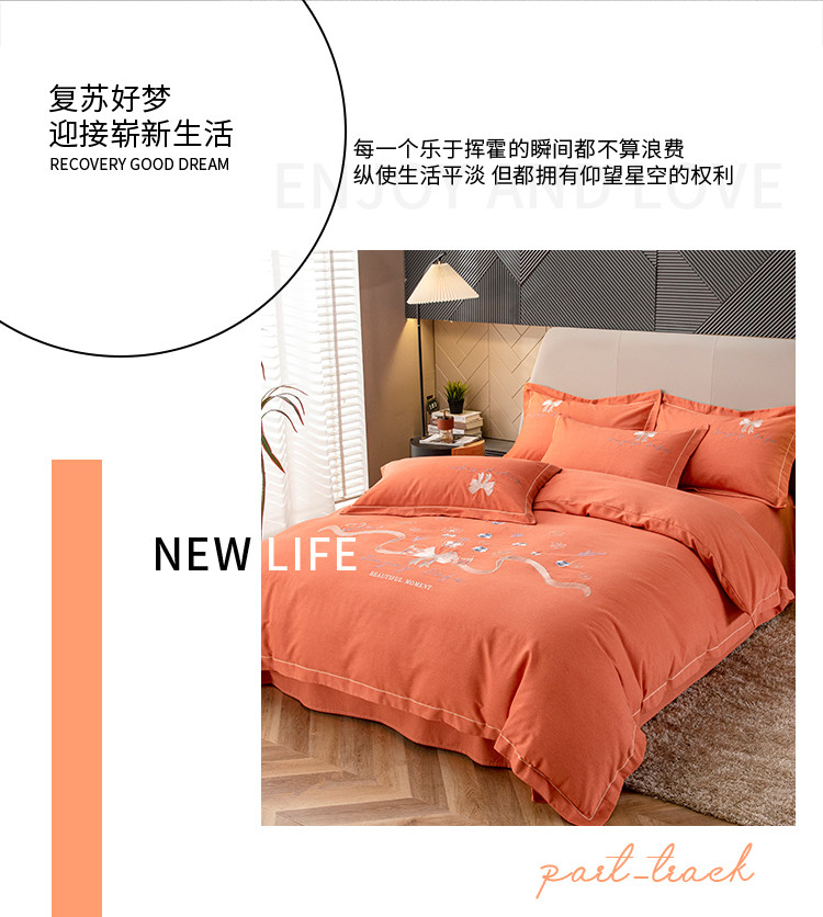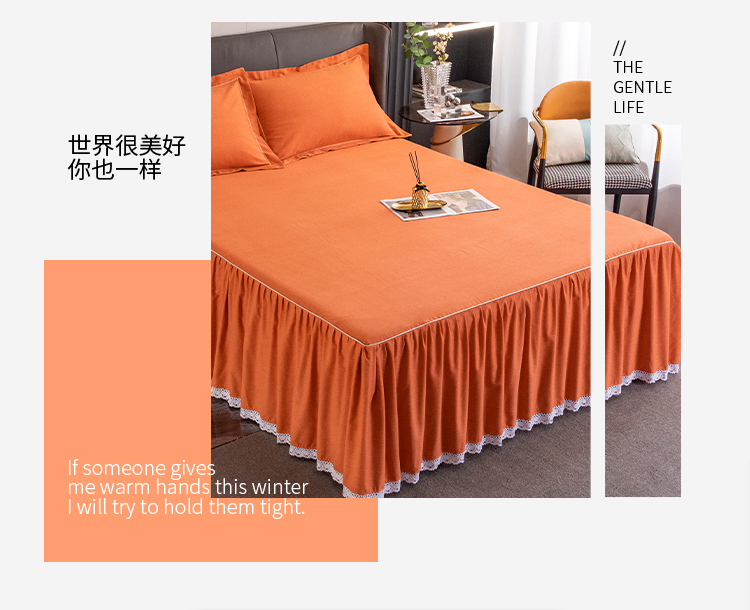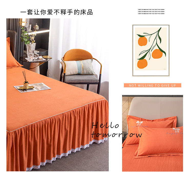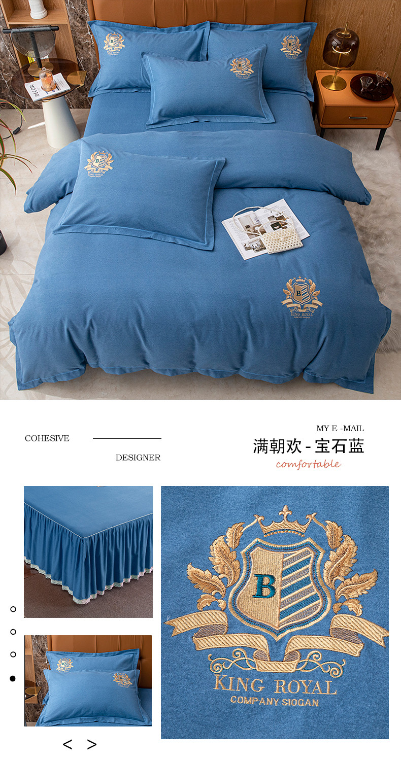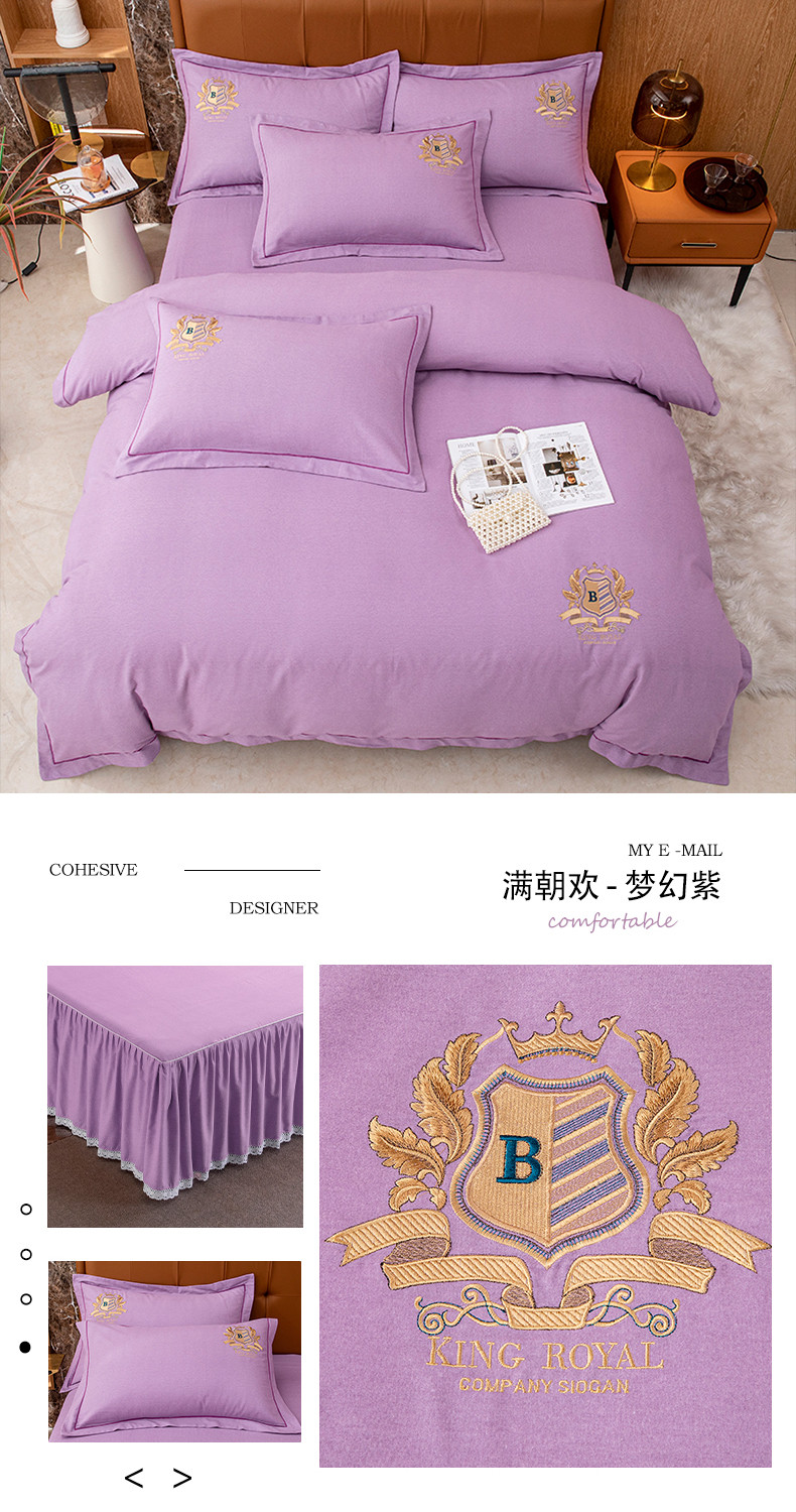 (总)纽缦 2022新款纯棉加厚纯色绣花款床裙四件套