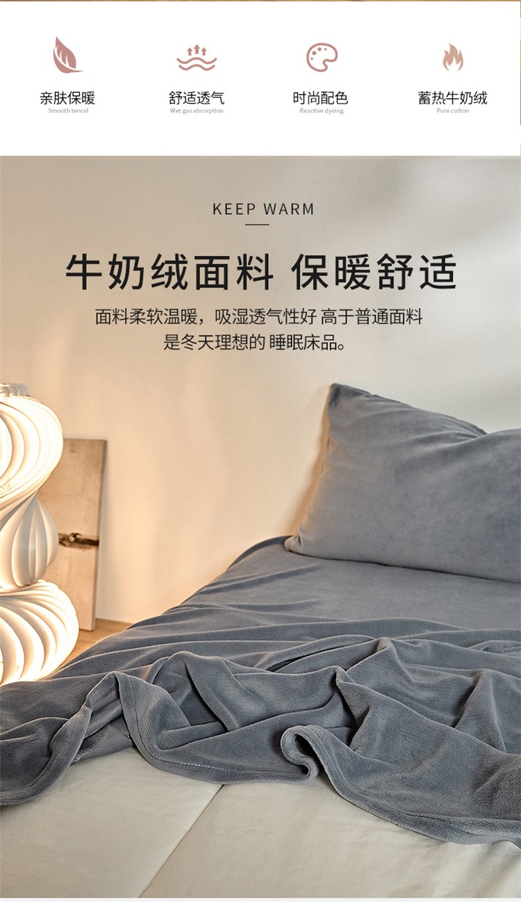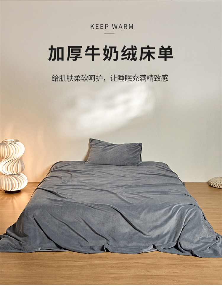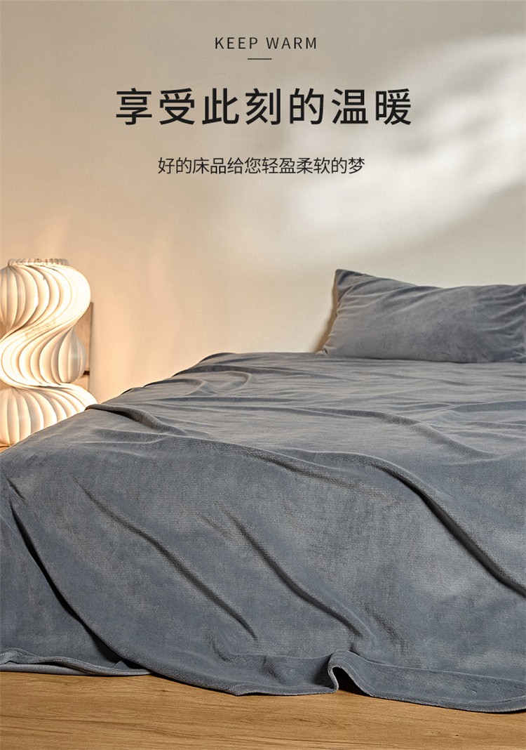 商品名称:新款纯色牛奶绒床单 蓝墨灰