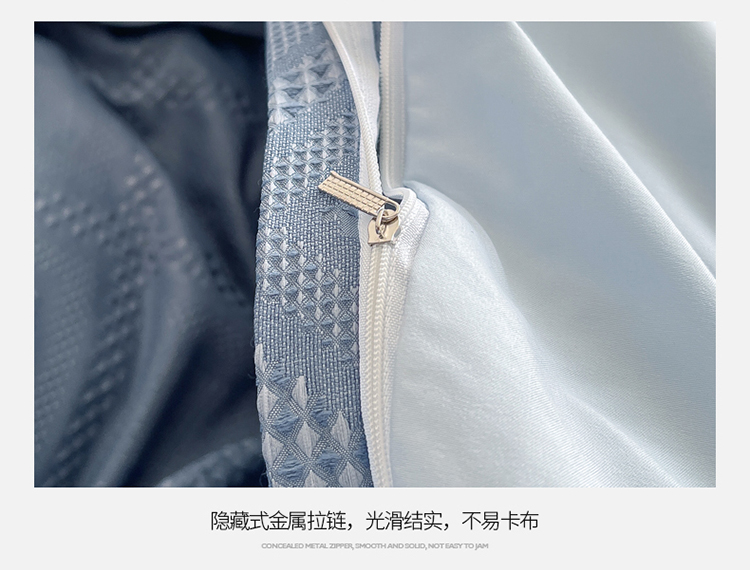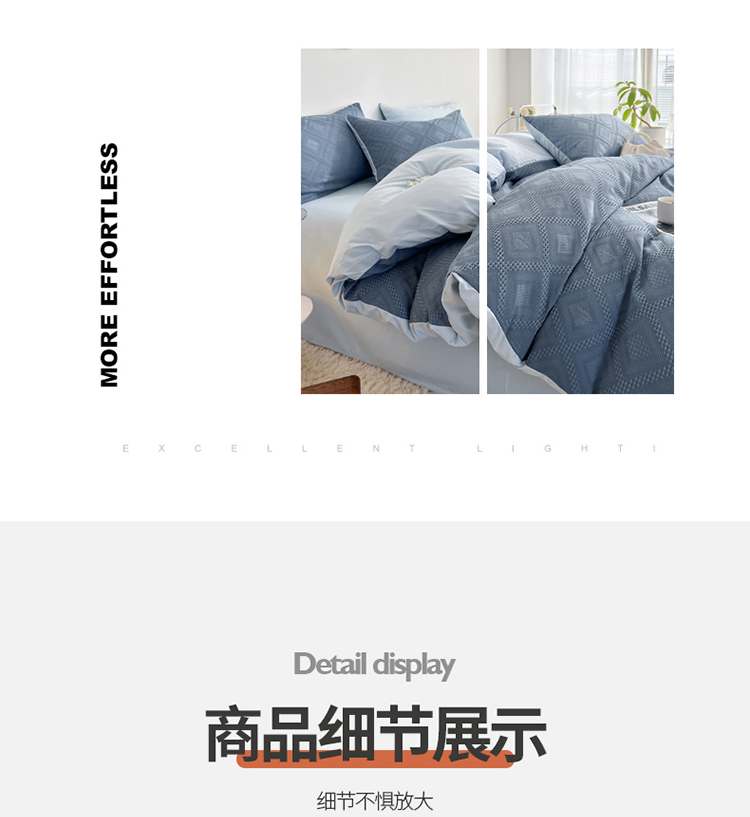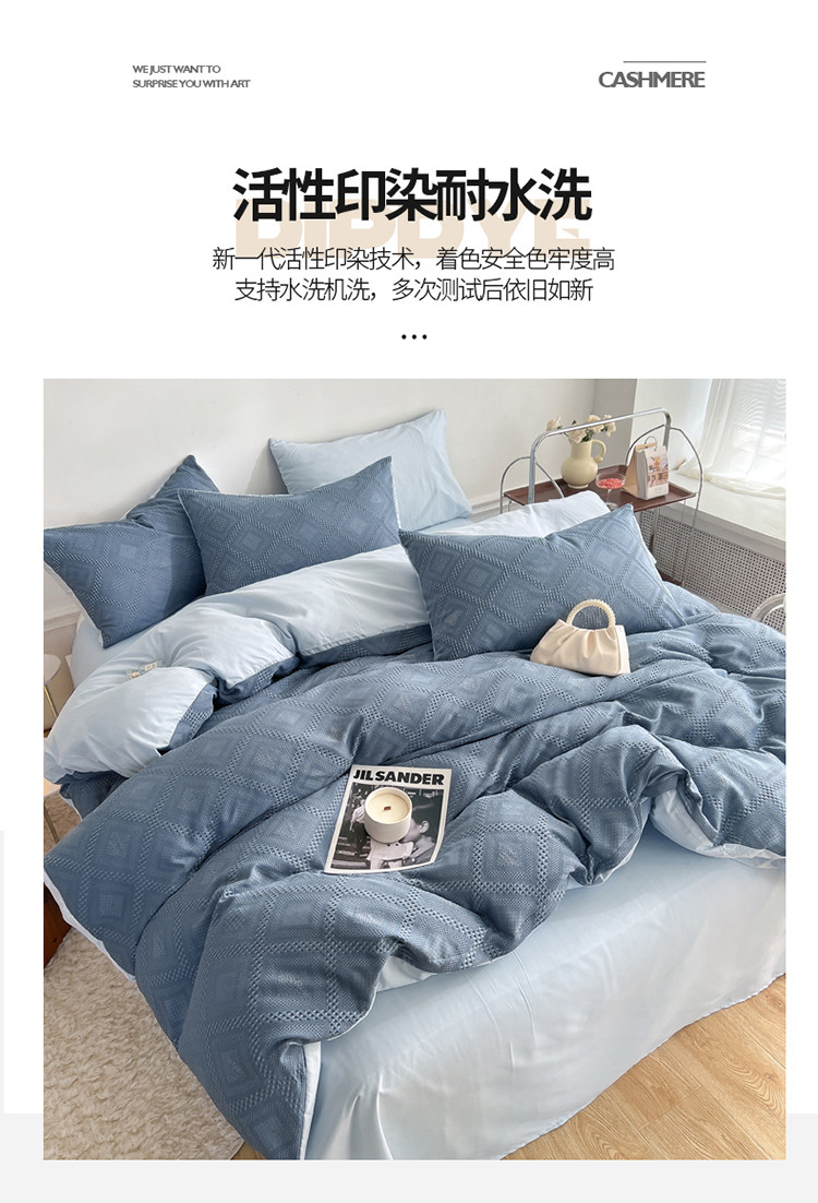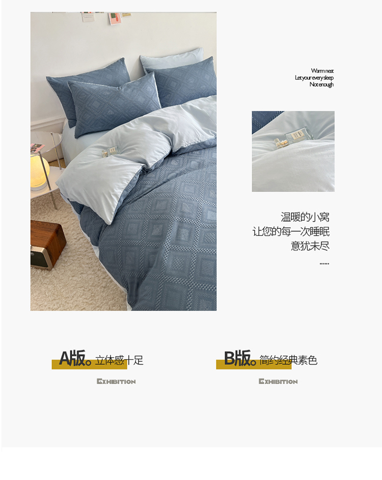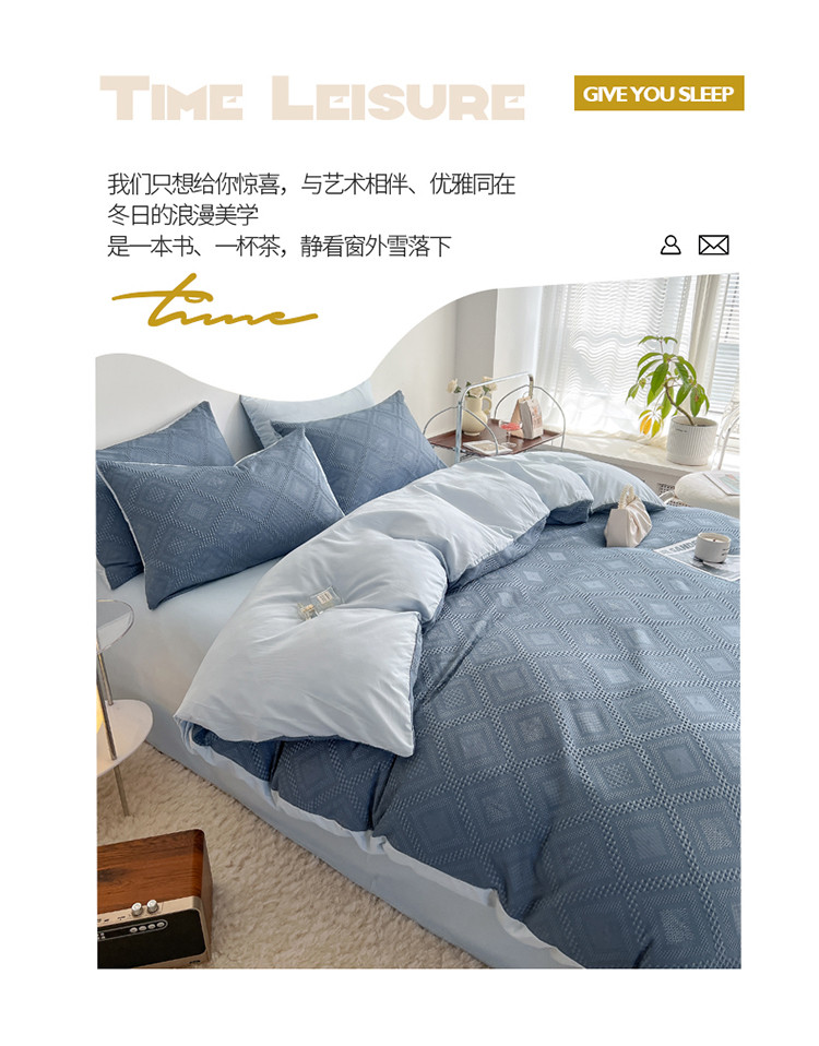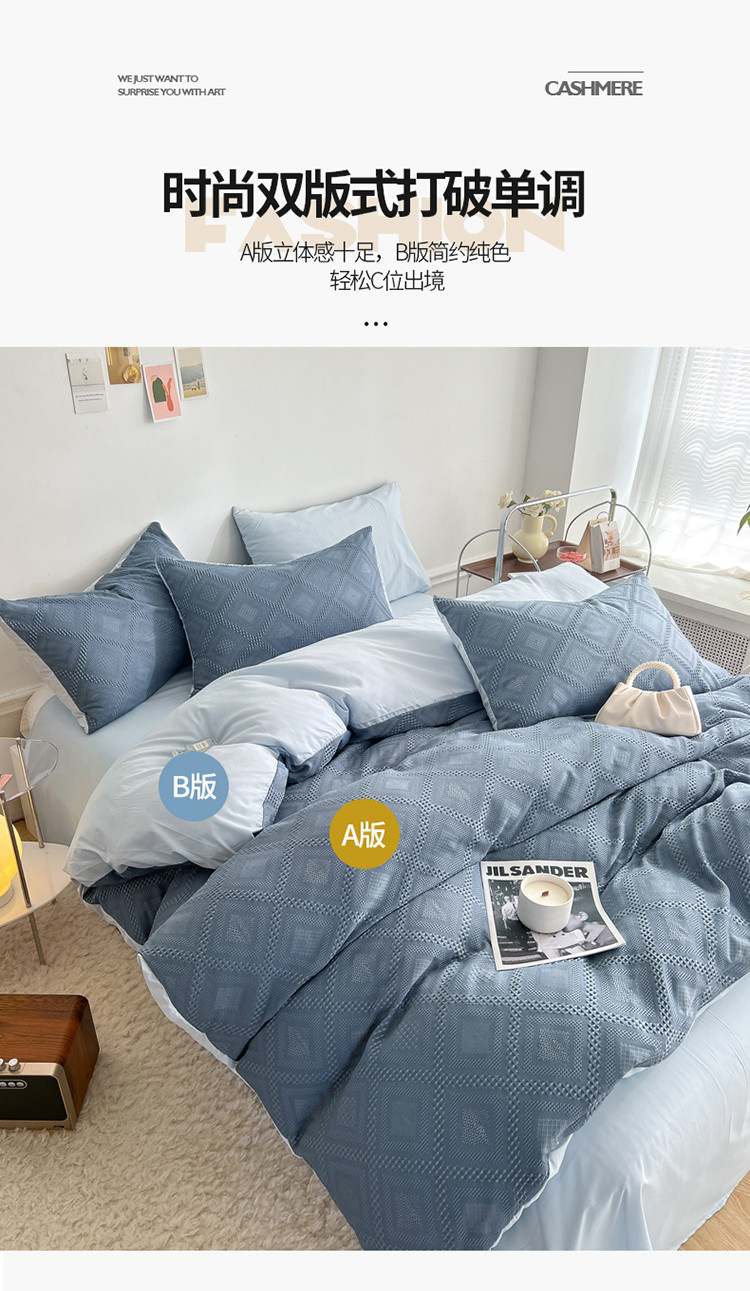 商品名称:米粒 2022直播爆款纯色AB版华夫格四件套磨毛水洗棉 牛仔蓝
