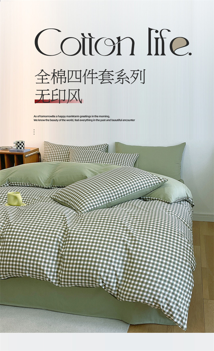 当前位置: 91家纺网 > 商品网购 > 床品套件 > 四件套 > 全棉普通四件套 > 798 2023新款全棉无印风系列四件套 小绿格