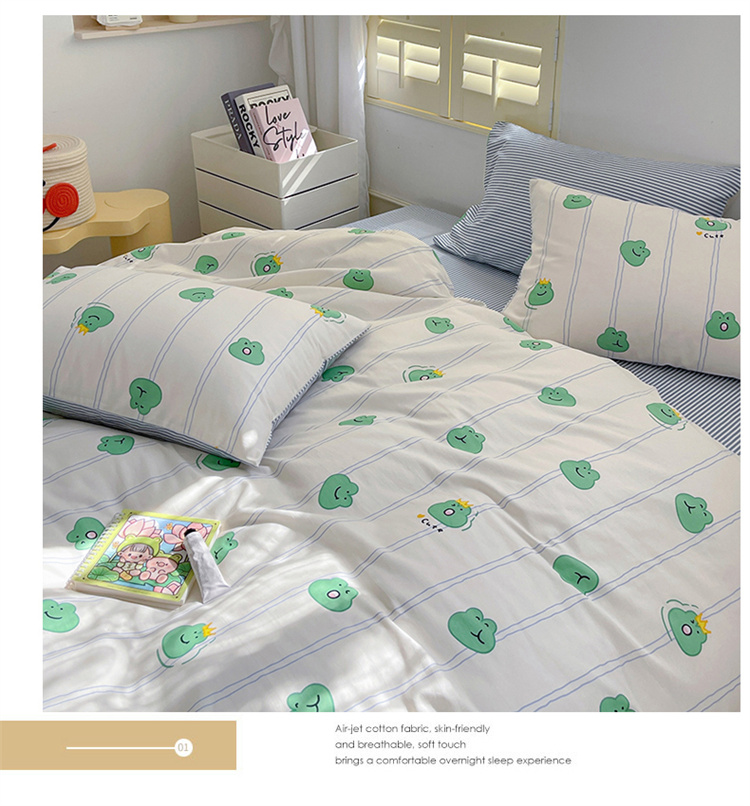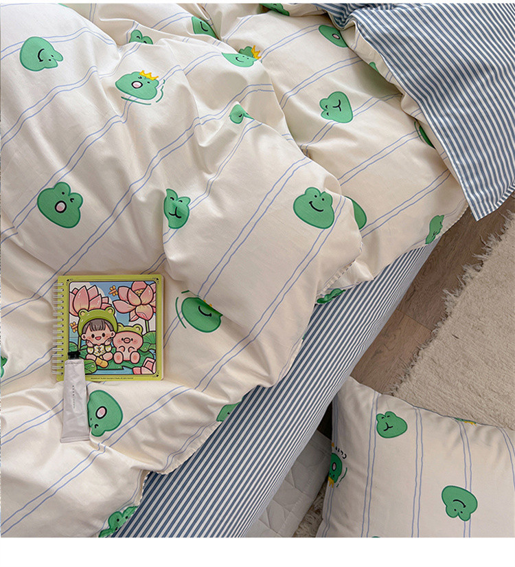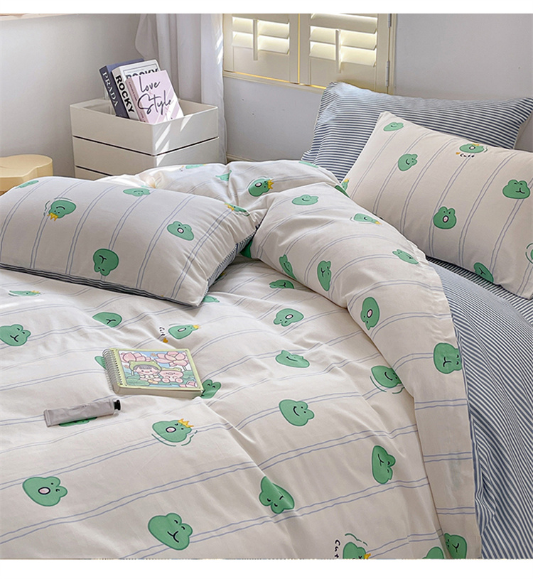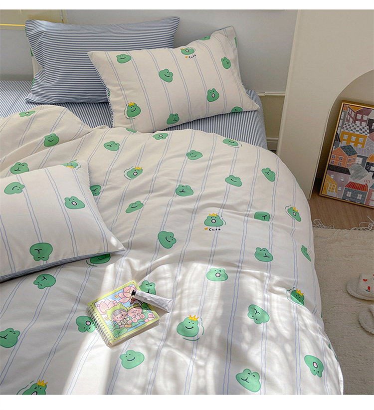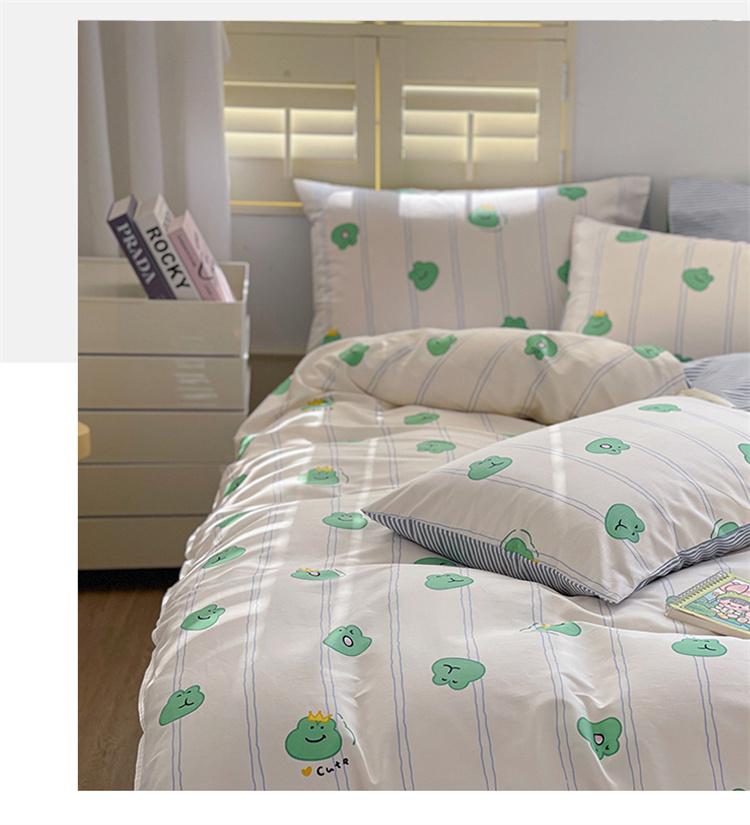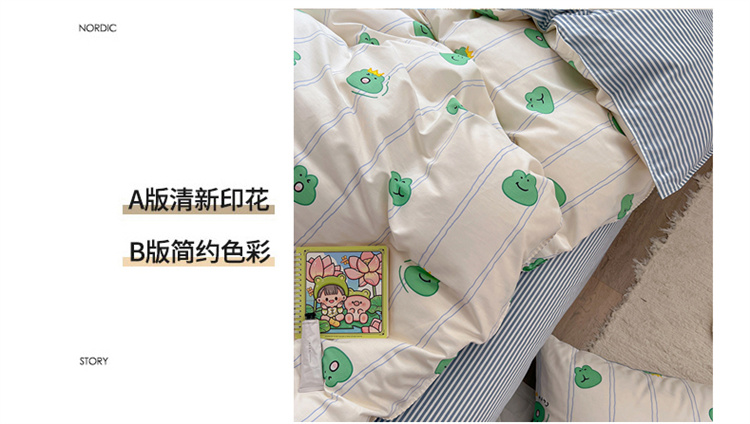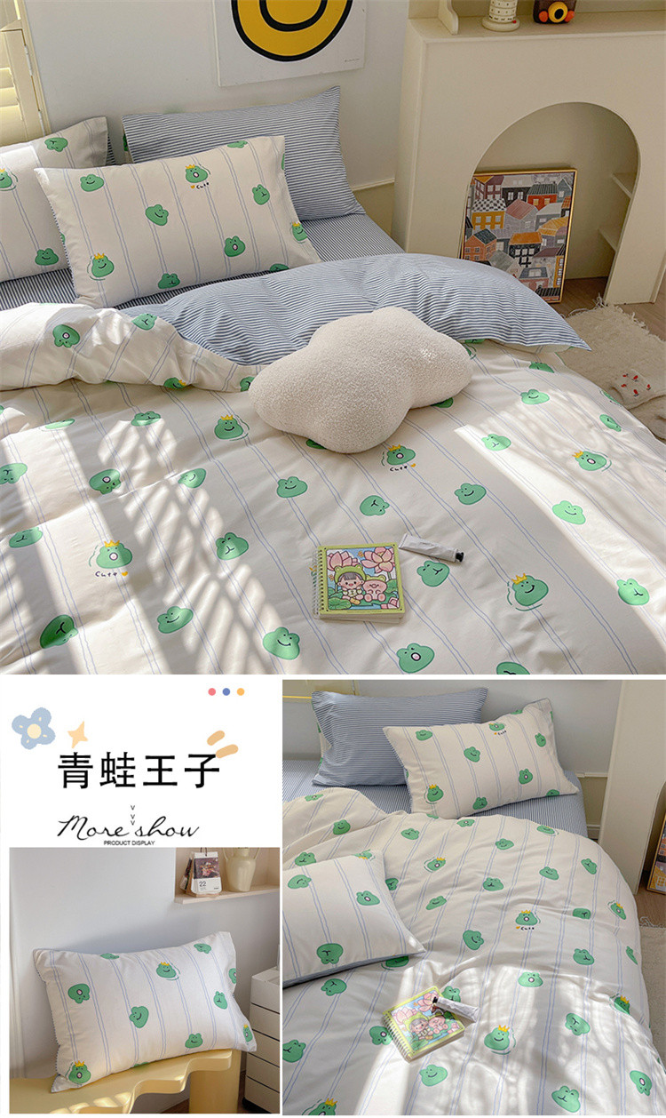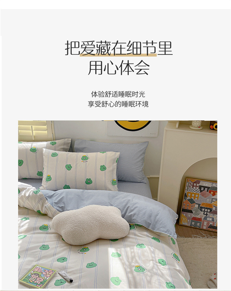 当前位置: 91家纺网 > 商品网购 > 床品套件 > 四件套 > 全棉普通四件套 > 麦伦家居 2023春夏新品ins小清新简约全棉斜纹四件套 青蛙王子
