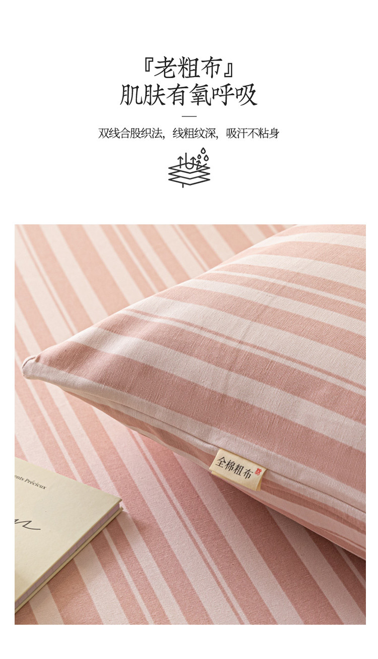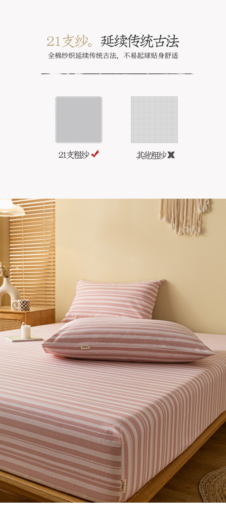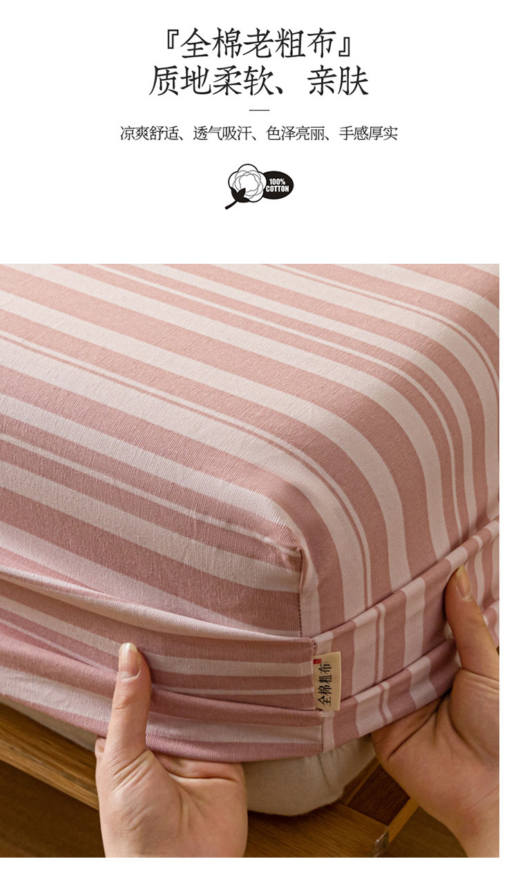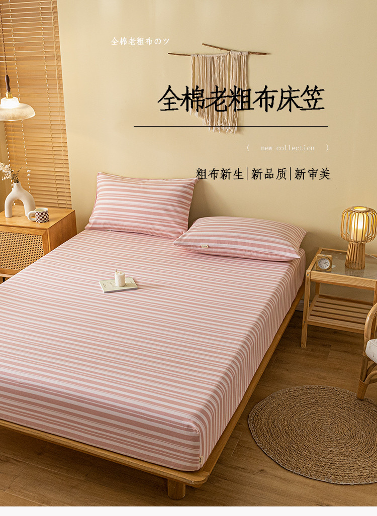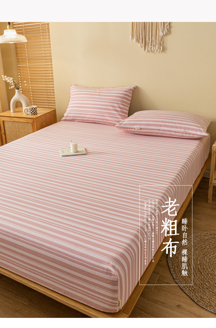 卧趣家纺 2023新款全棉老粗布单品系列单床笠 素采-粉