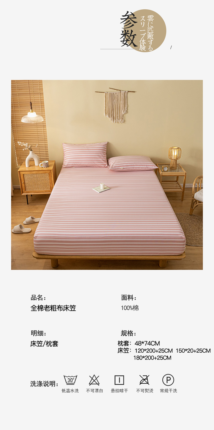 商品名称:卧趣家纺 2023新款全棉老粗布单品系列单床笠 素采-粉