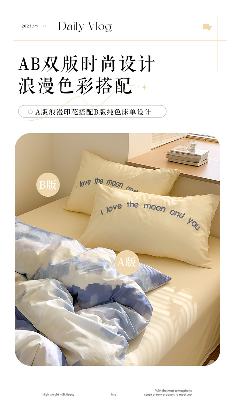 山茶家纺 2023新款月亮系列全棉四件套 月亮-黄蓝
