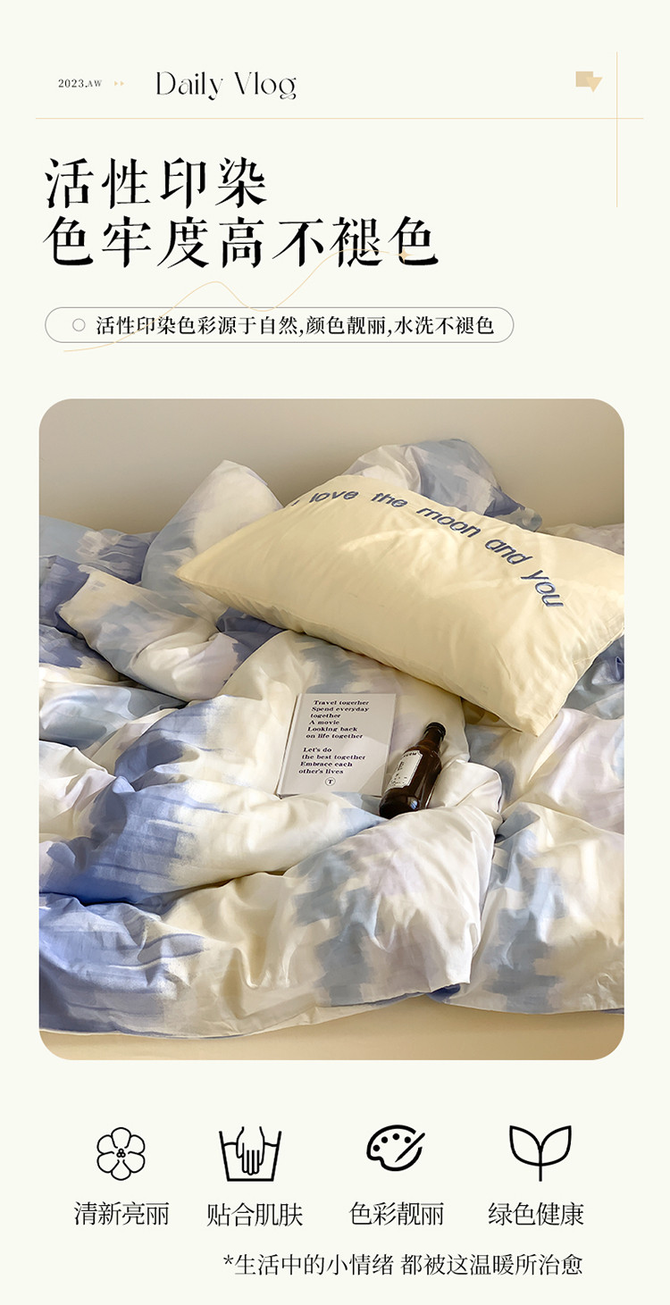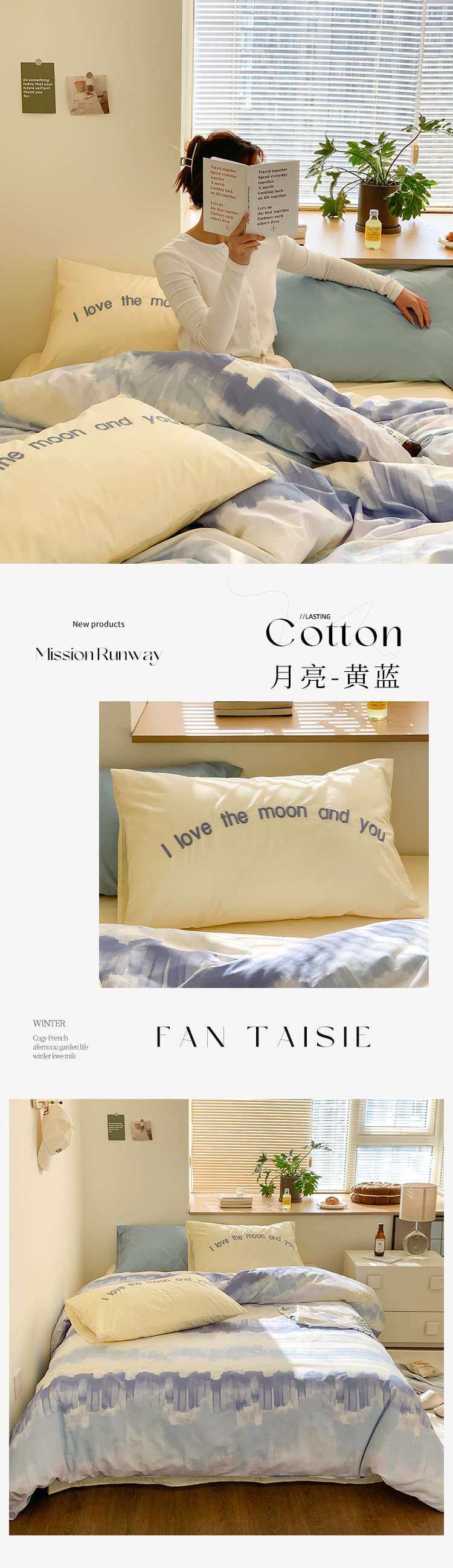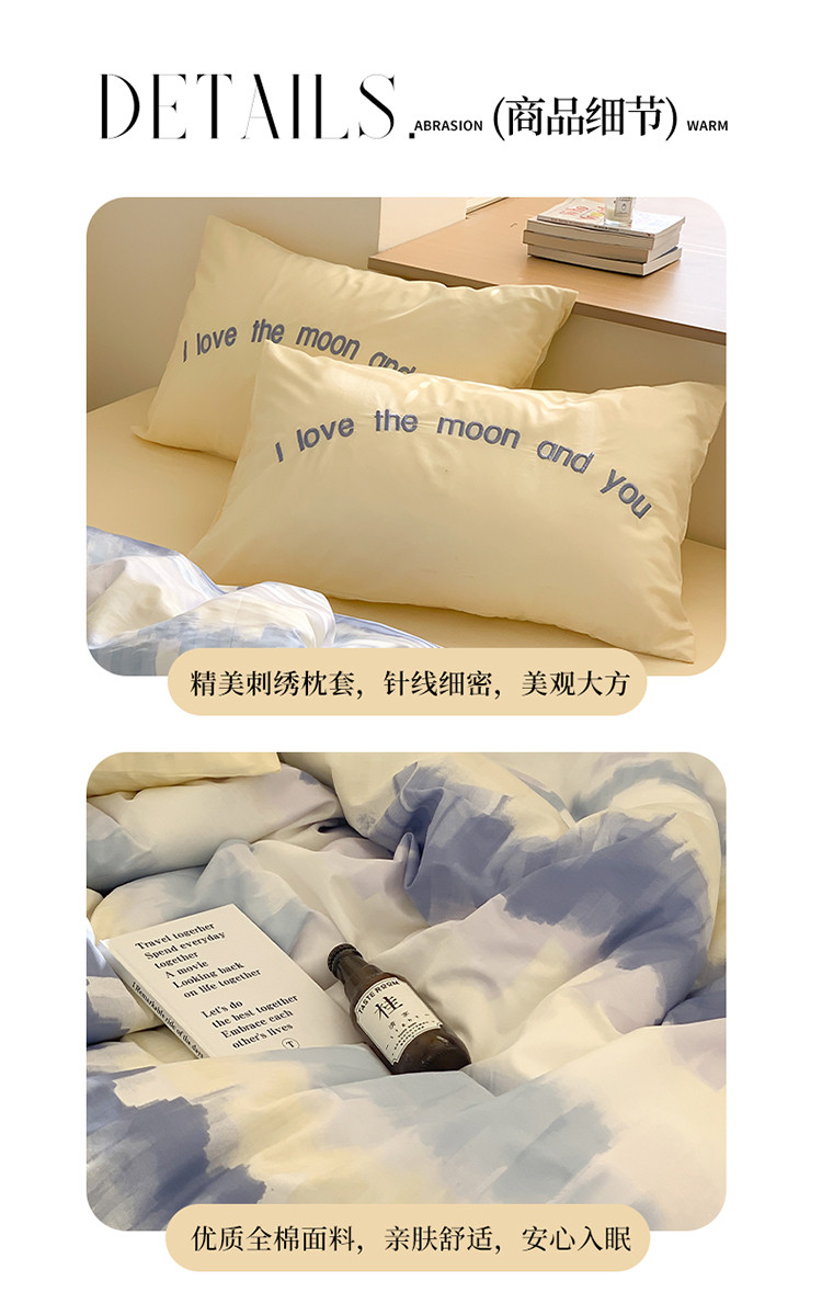 商品名称:山茶家纺 2023新款月亮系列全棉四件套 月亮-黄蓝