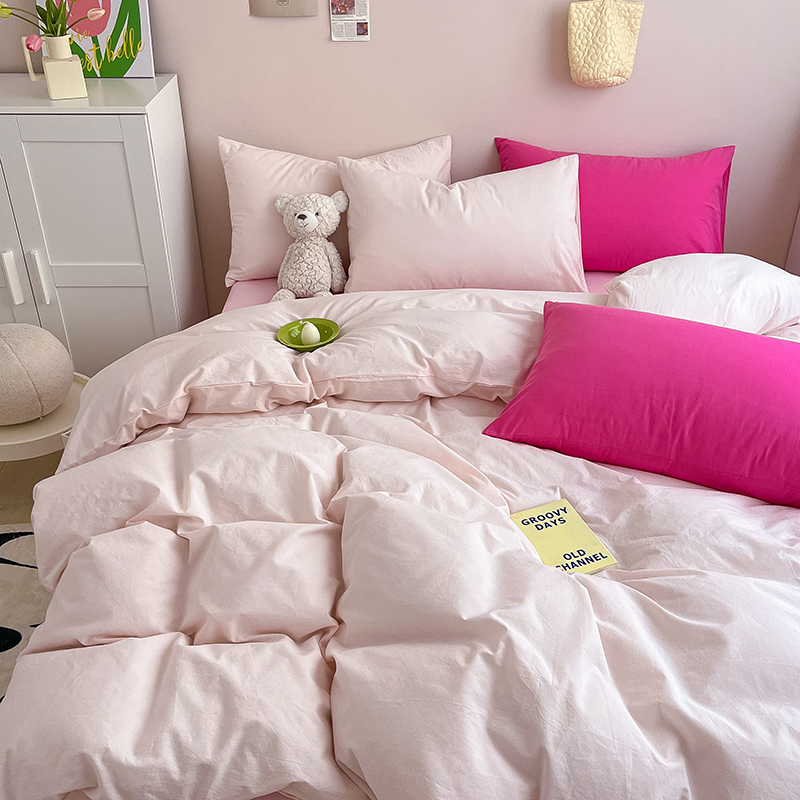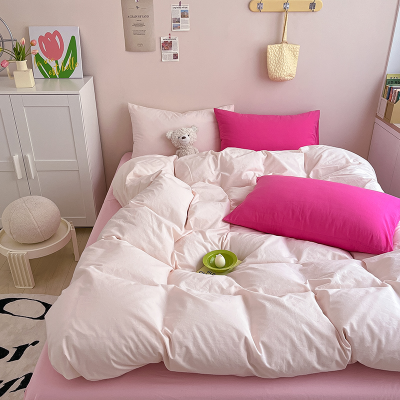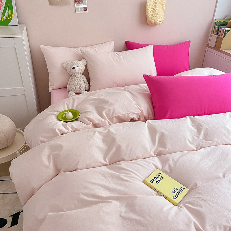 商品名称:寐居 2023新款全棉水洗棉双拼色纯色单被套 ins风-裸粉色