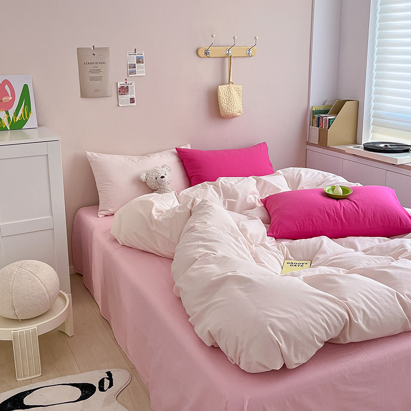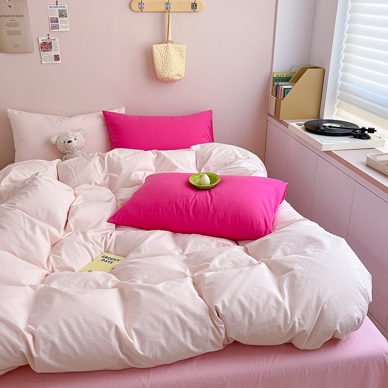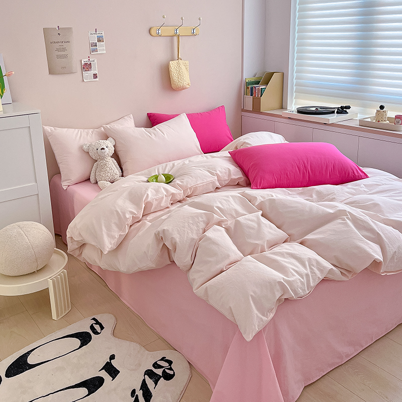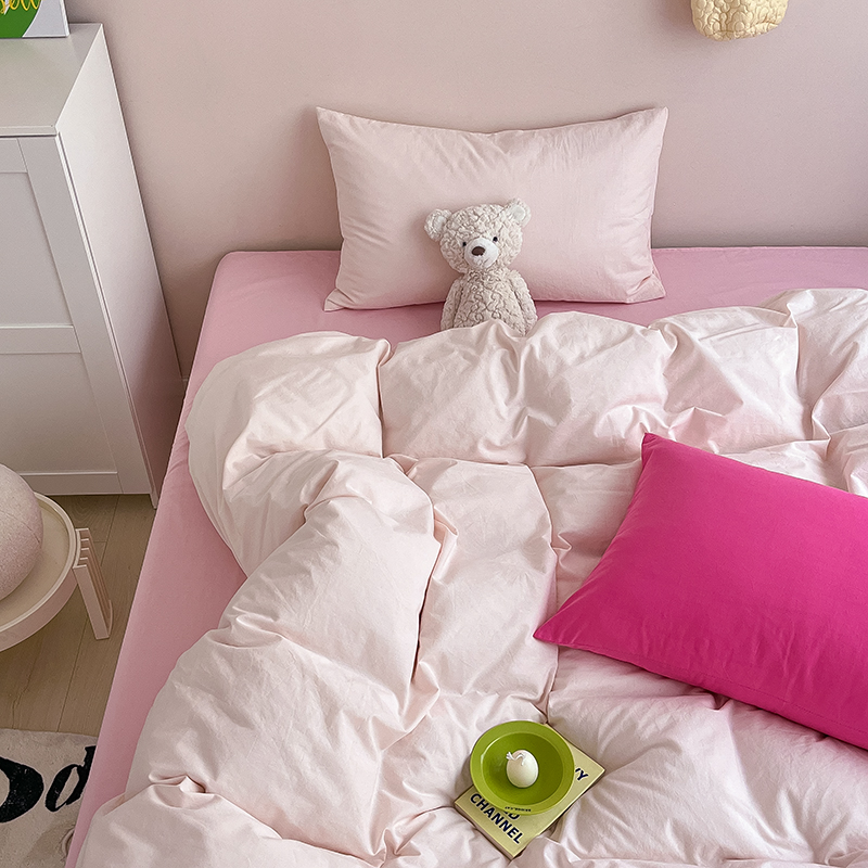 寐居 2023新款全棉水洗棉双拼色纯色单被套 ins风-裸粉色