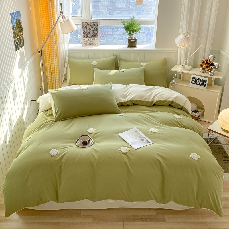 (总)红嘴企鹅 2025新款刺绣全棉纯棉生态磨毛加厚四件套,学院熊-黑条纹,学院熊-黄条纹,学院熊-绿条纹