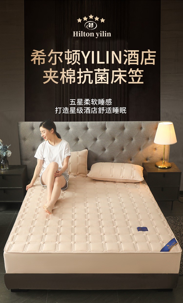 商品名称:给笠 2024新款希尔顿原棉抗菌夹棉床笠-雅格 雅格-卡其