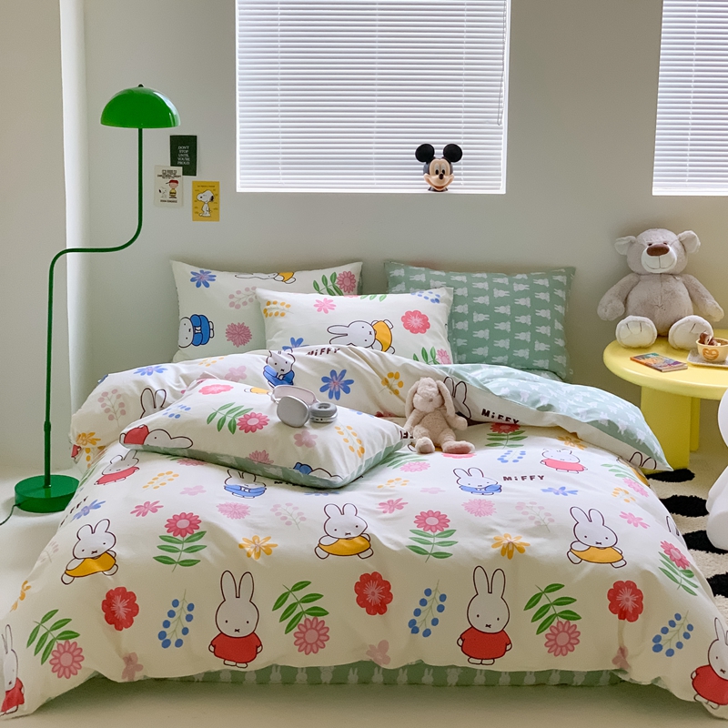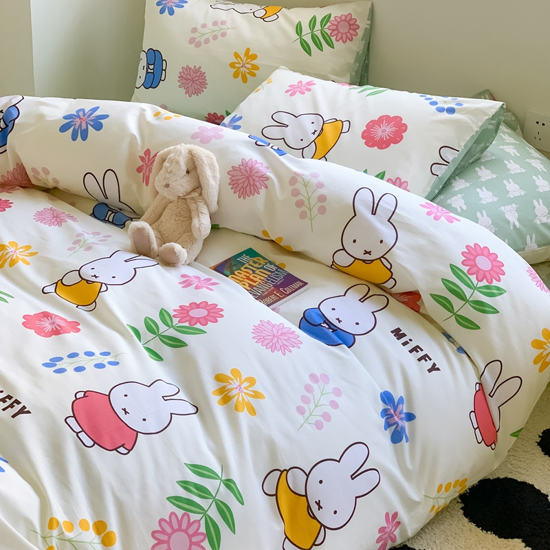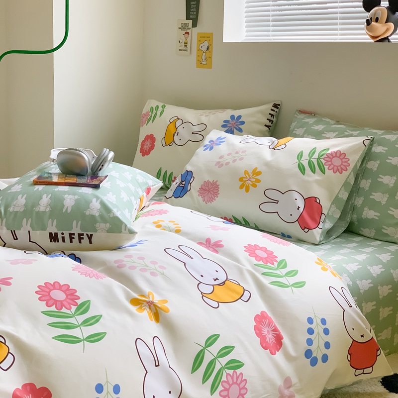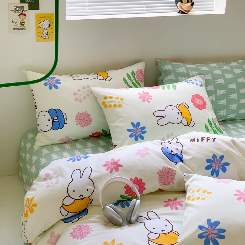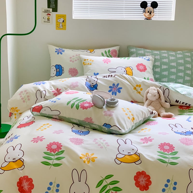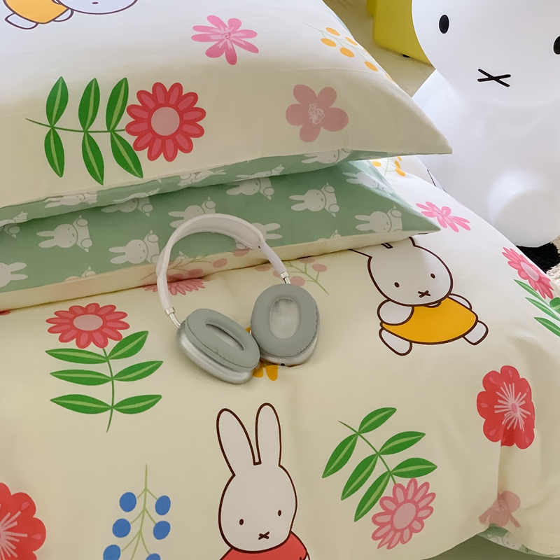 顾里家居 2023新款40支13372全棉米菲兔正版授权四件套 花朵米菲