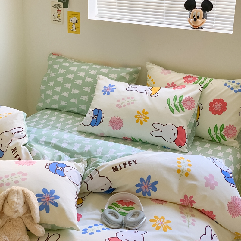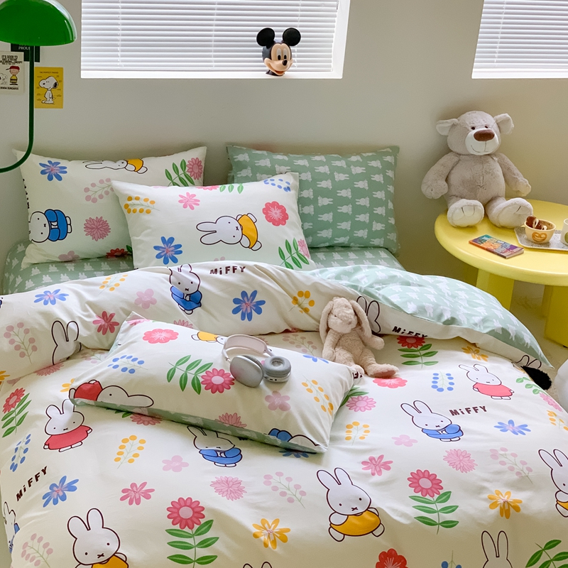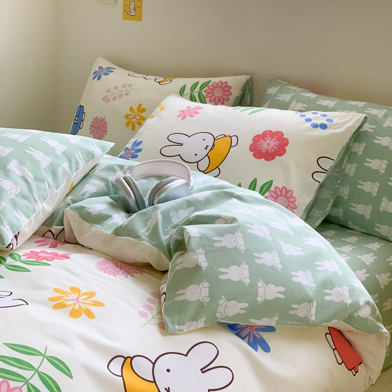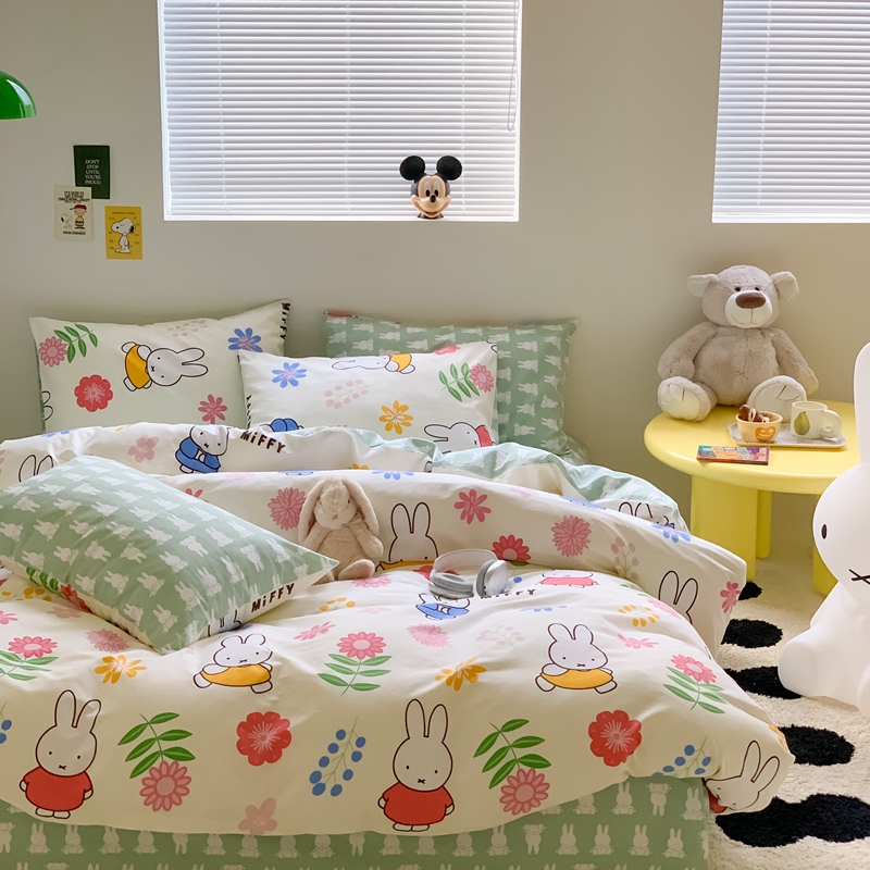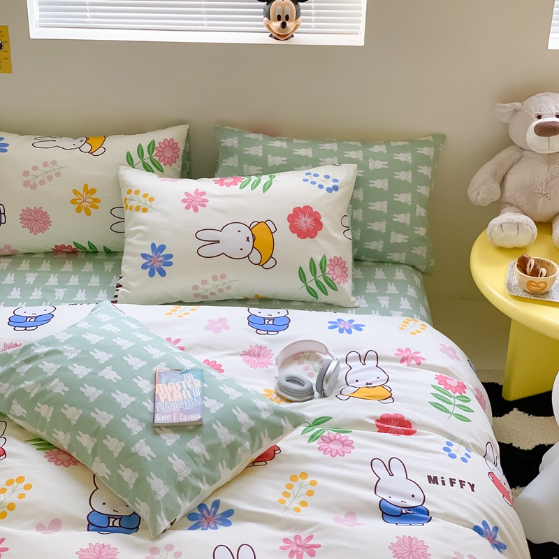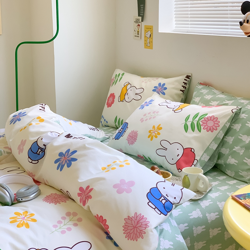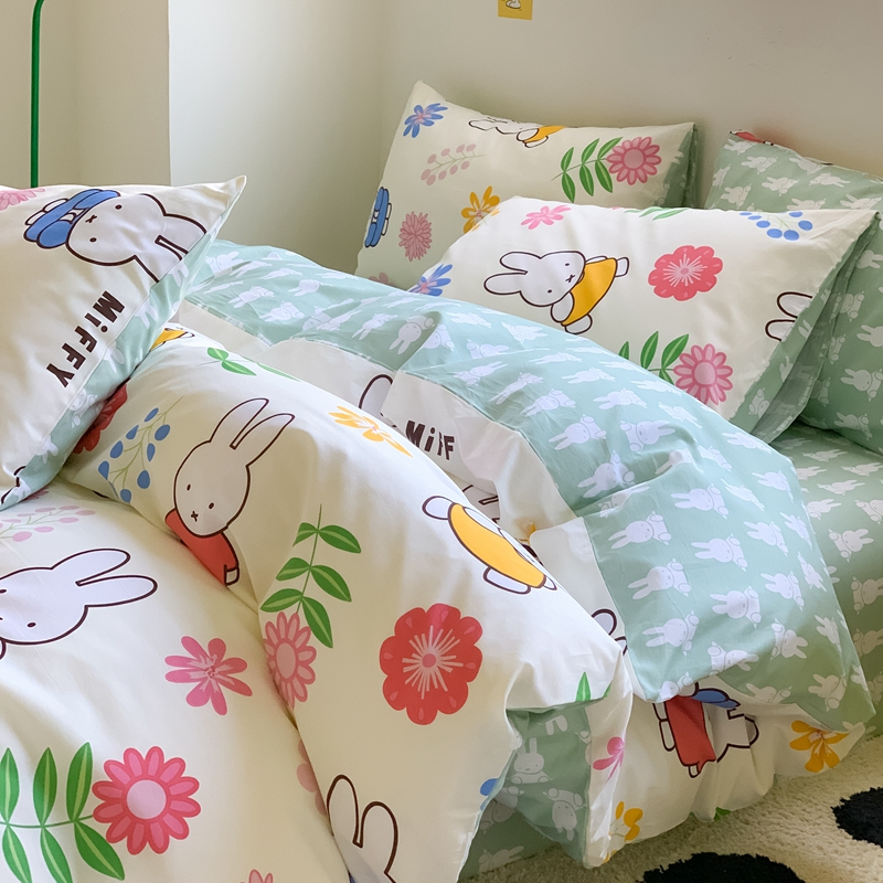 顾里家居 2023新款40支13372全棉米菲兔正版授权四件套 花朵米菲