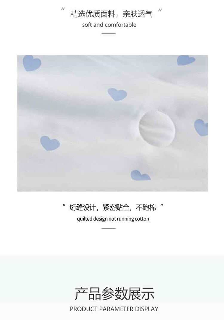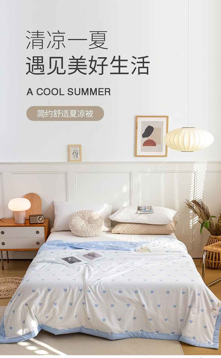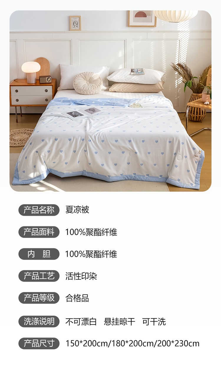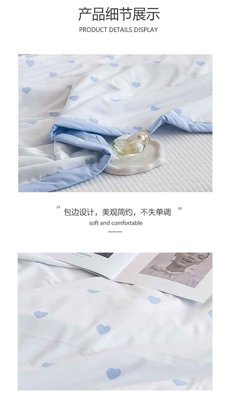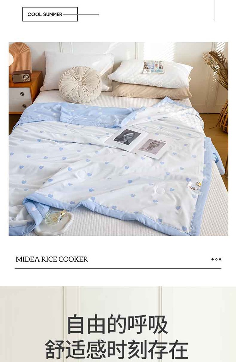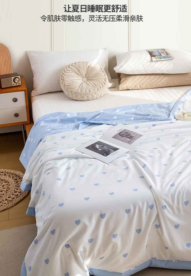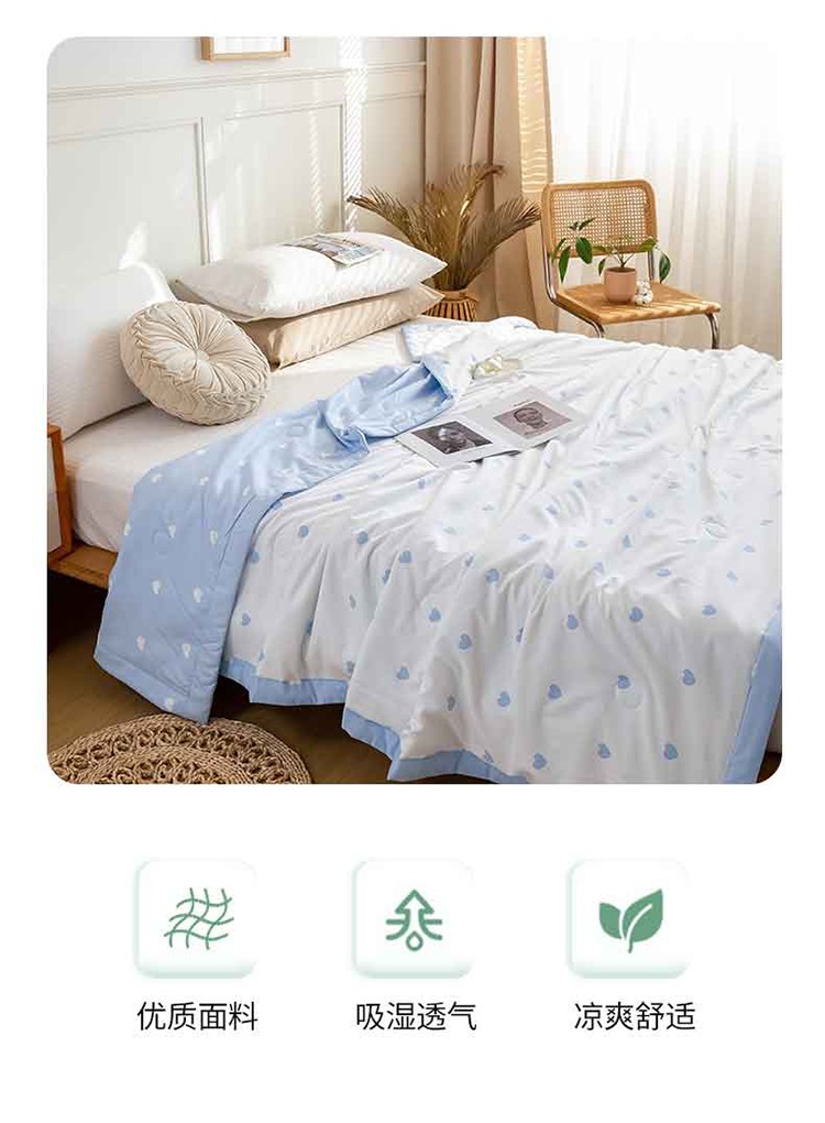 商品名称:羋多家纺 2023年新款日式手工包德芙棉磨毛夏被 爱心-蔚蓝