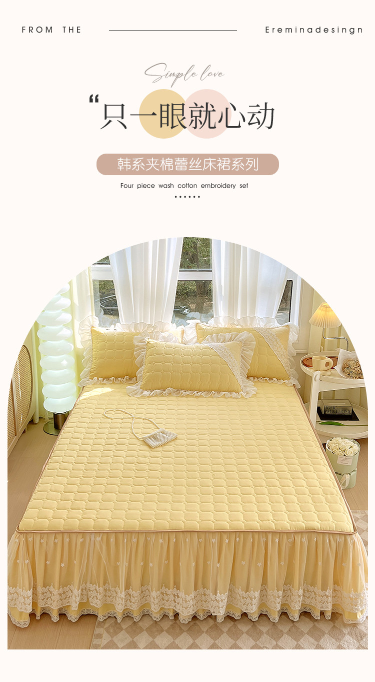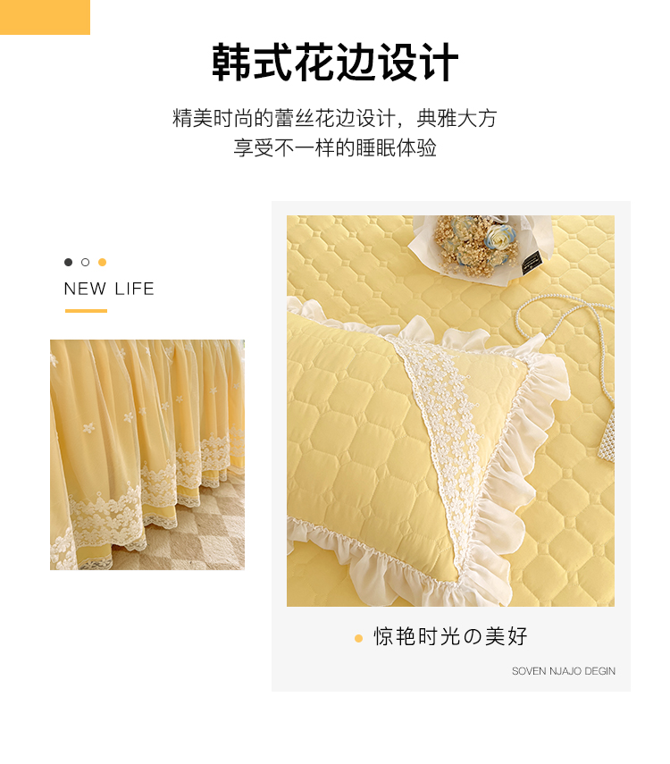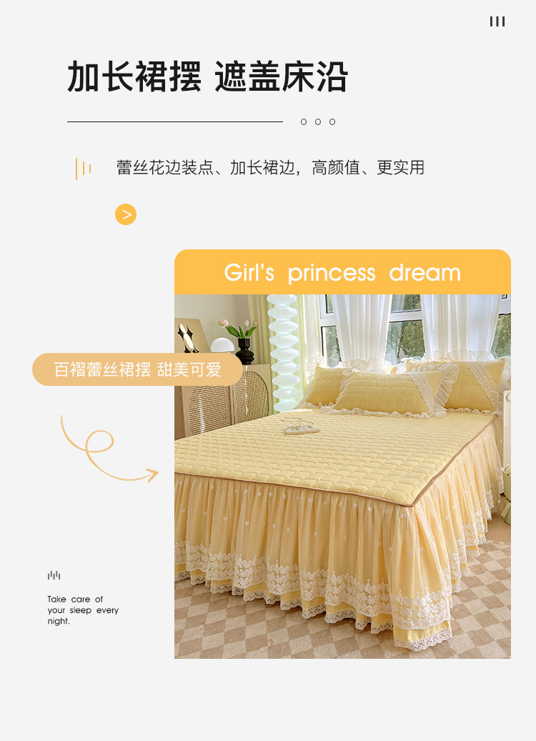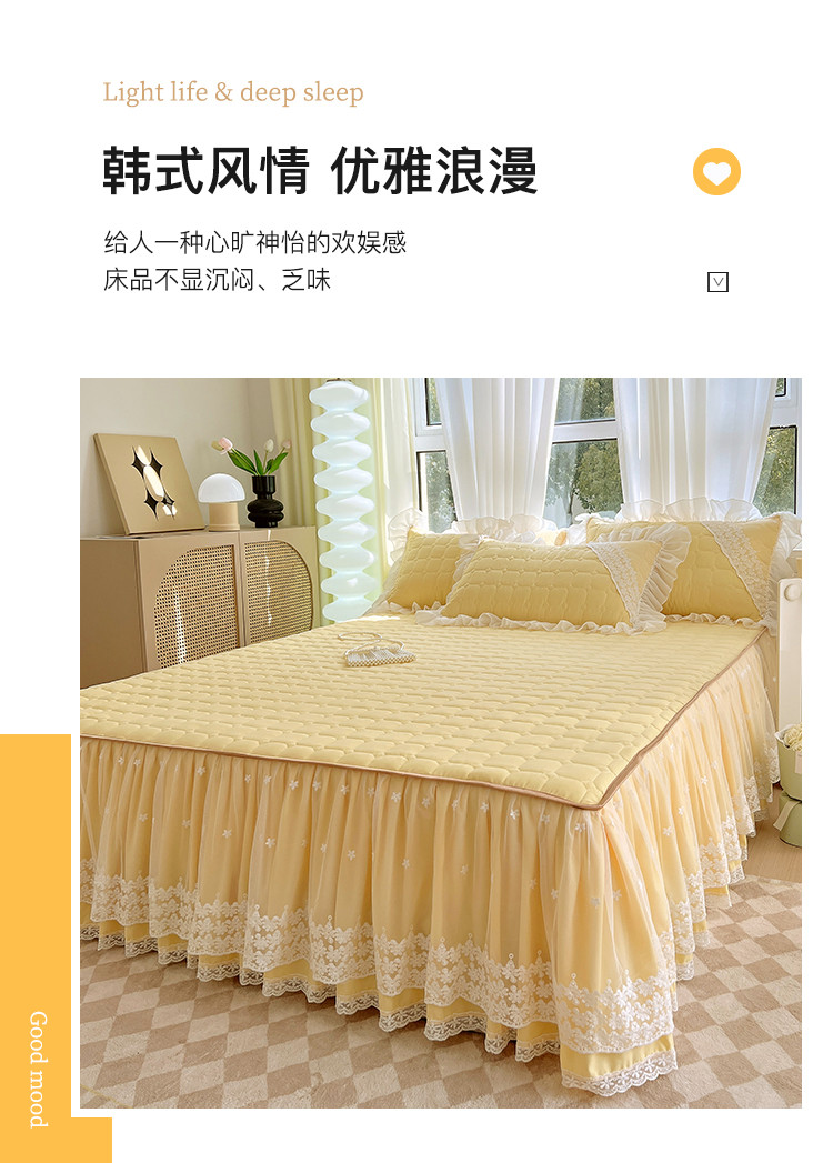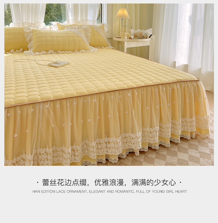 商品名称:罗艺轩 2024新款 泡泡纱夹棉床裙白雪公主系列 柠檬黄