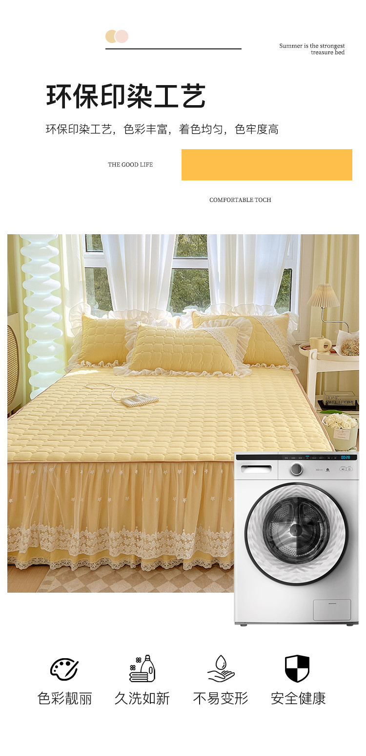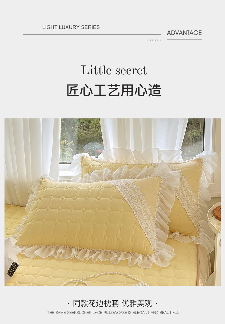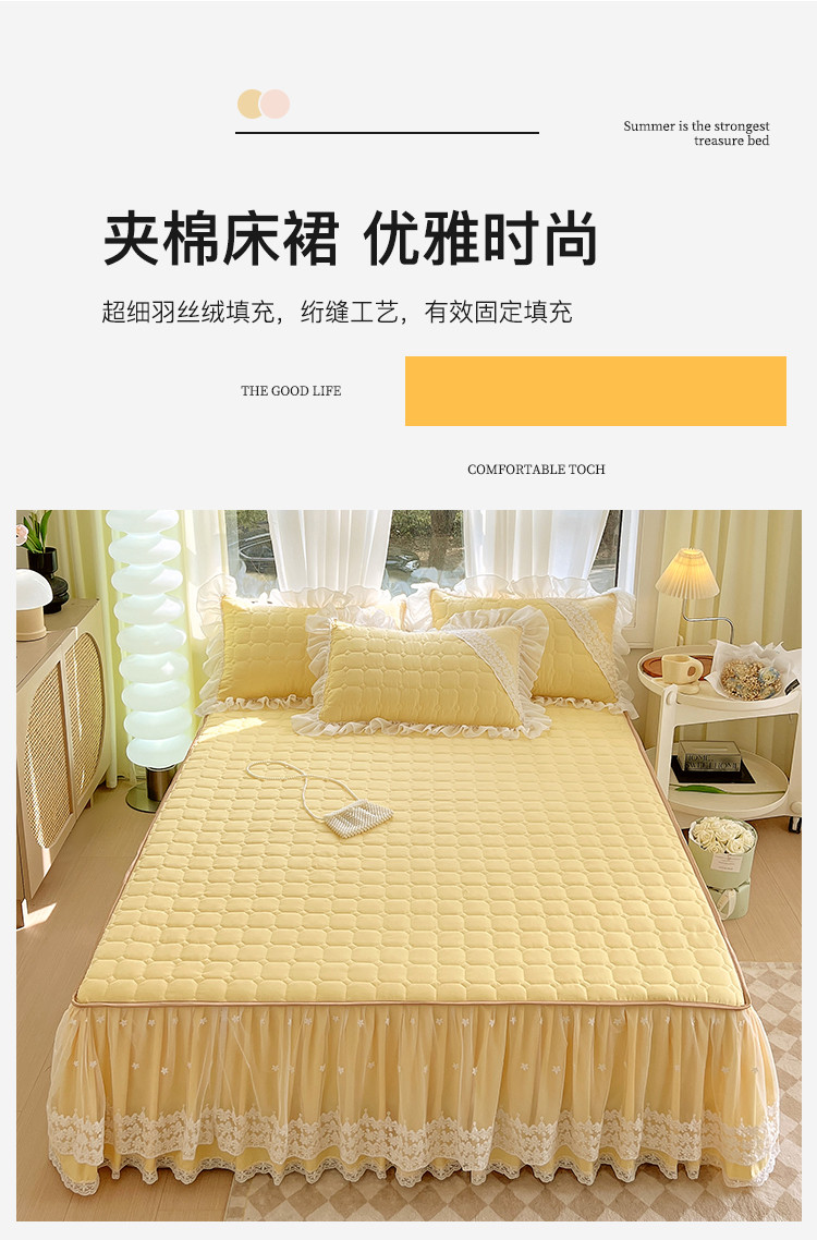 商品名称:罗艺轩 2024新款 泡泡纱夹棉床裙白雪公主系列 柠檬黄
