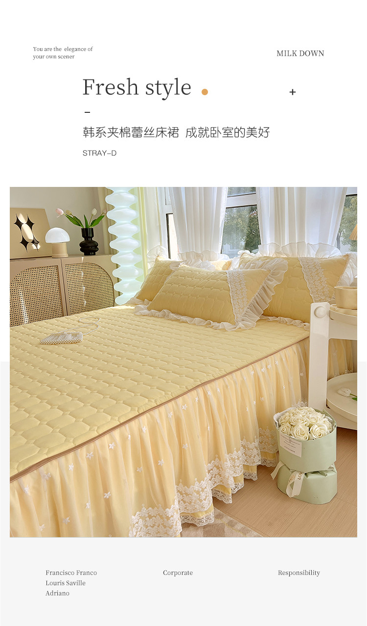 罗艺轩 2024新款 泡泡纱夹棉床裙白雪公主系列 柠檬黄