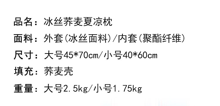 商品名称:(总) 枕之坊 2023新款冰丝荞麦夏凉枕