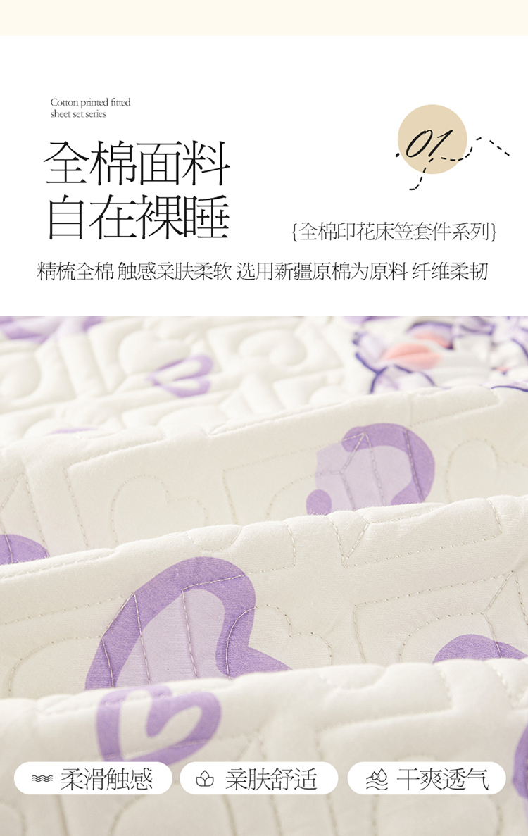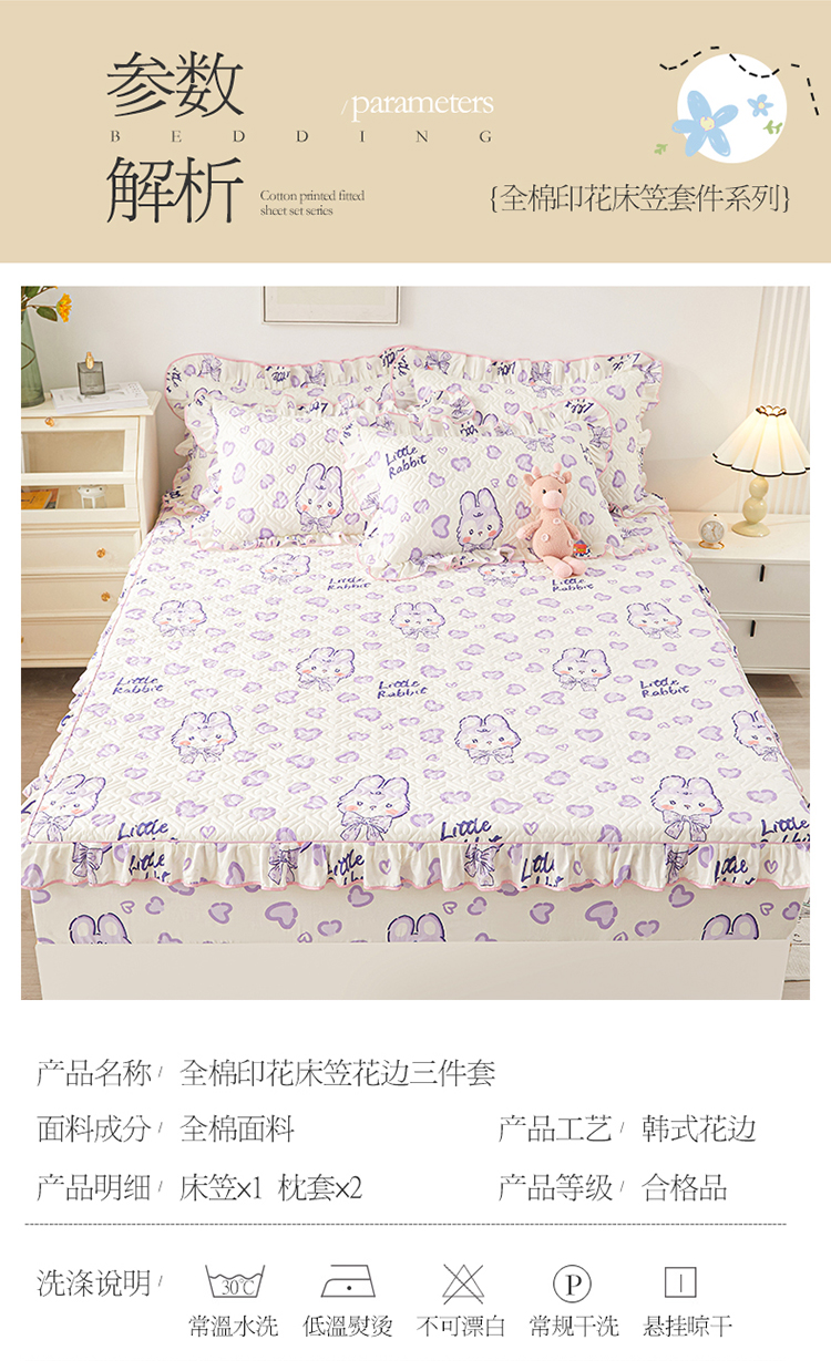 商品名称:宜凡2023新款全棉印花床笠三件套 潮派爱心