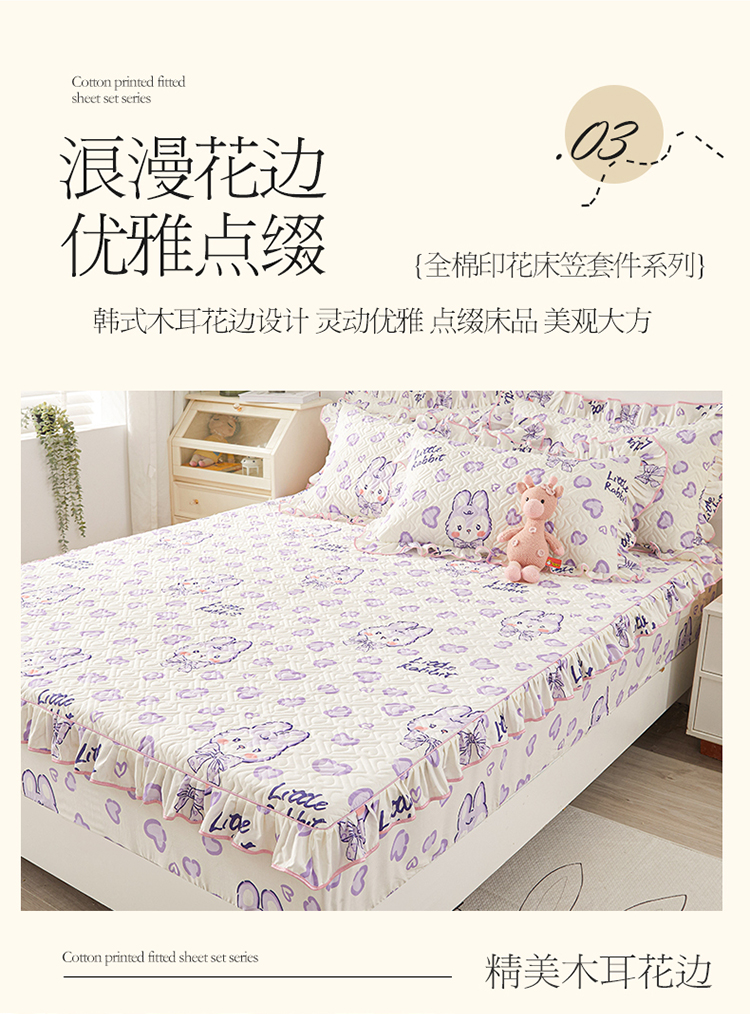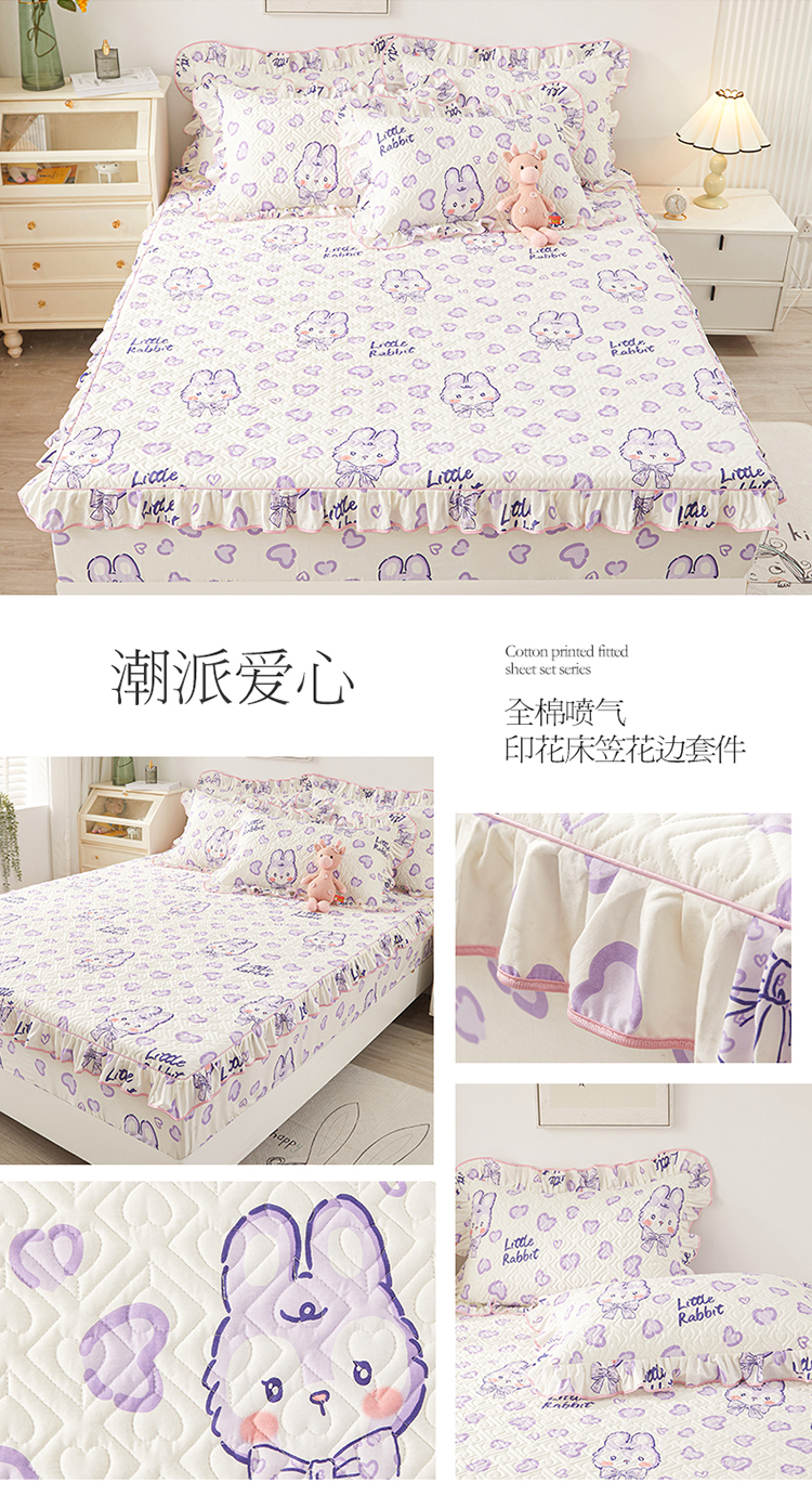 宜凡2023新款全棉印花床笠三件套 潮派爱心