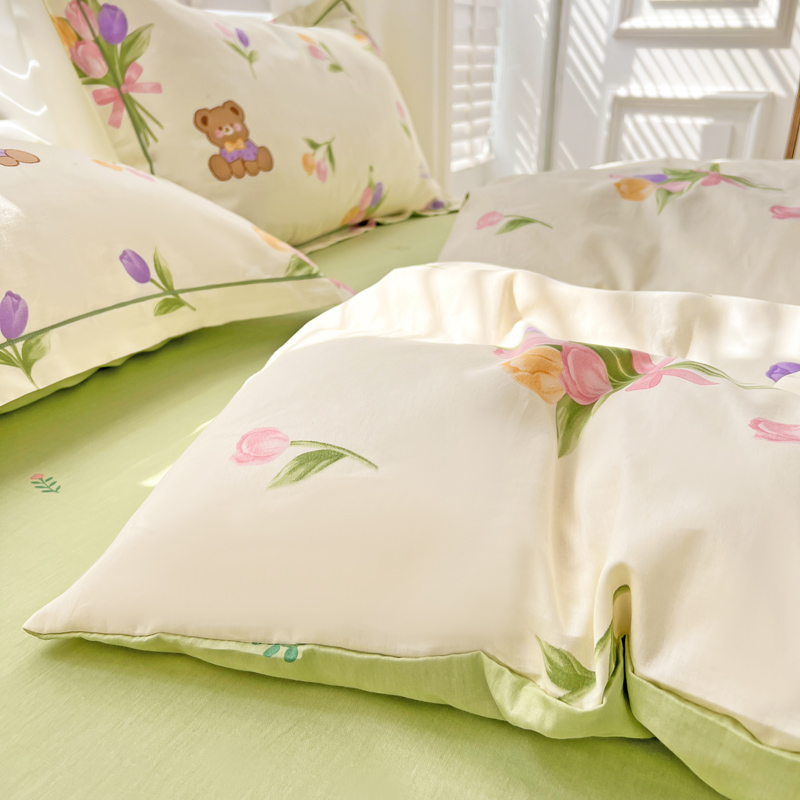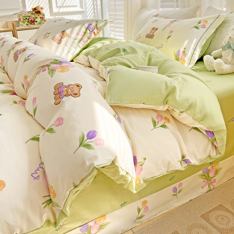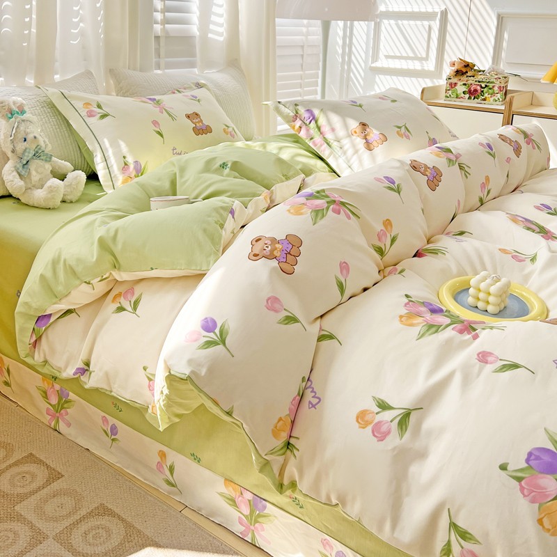 乐童 2024网红直播爆款吊边+一字绣工艺款四件套(五)花田 小熊