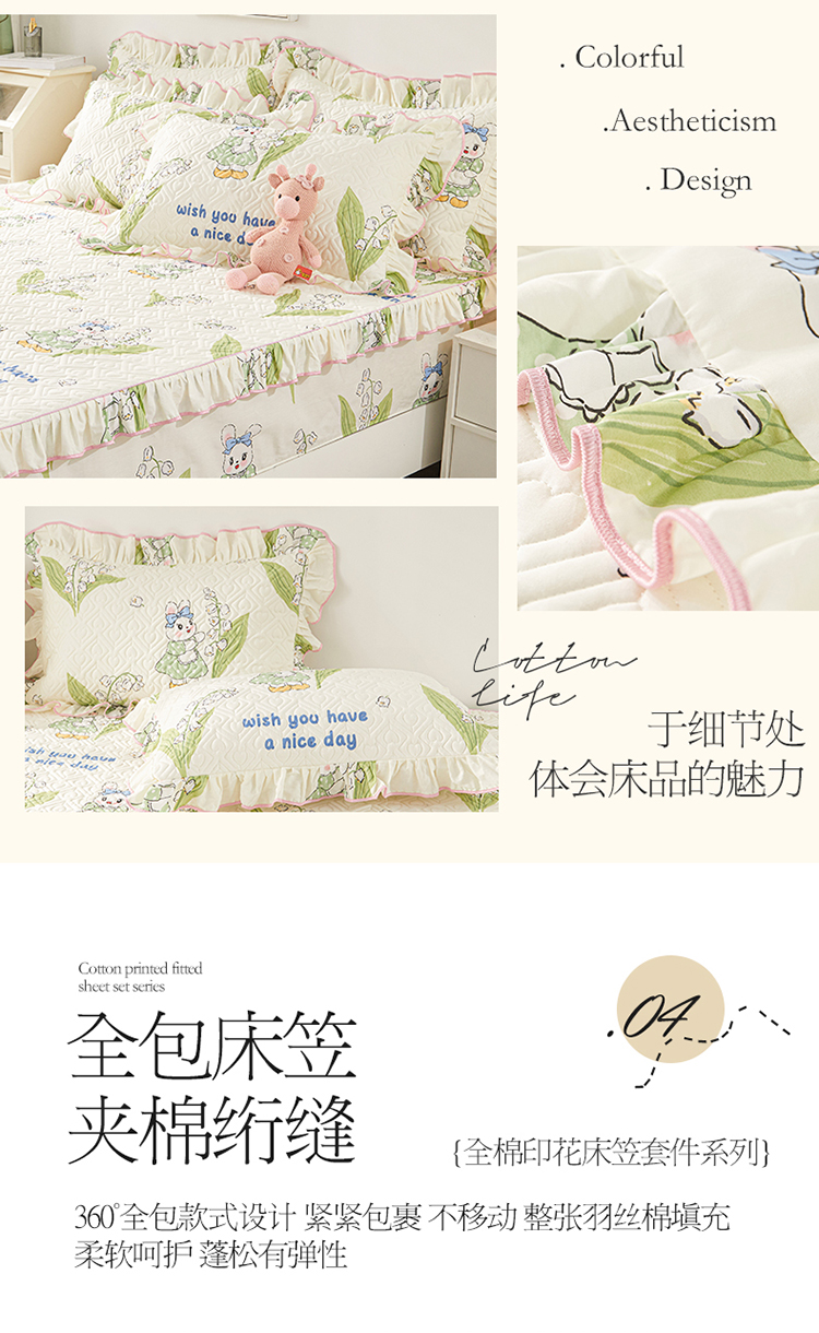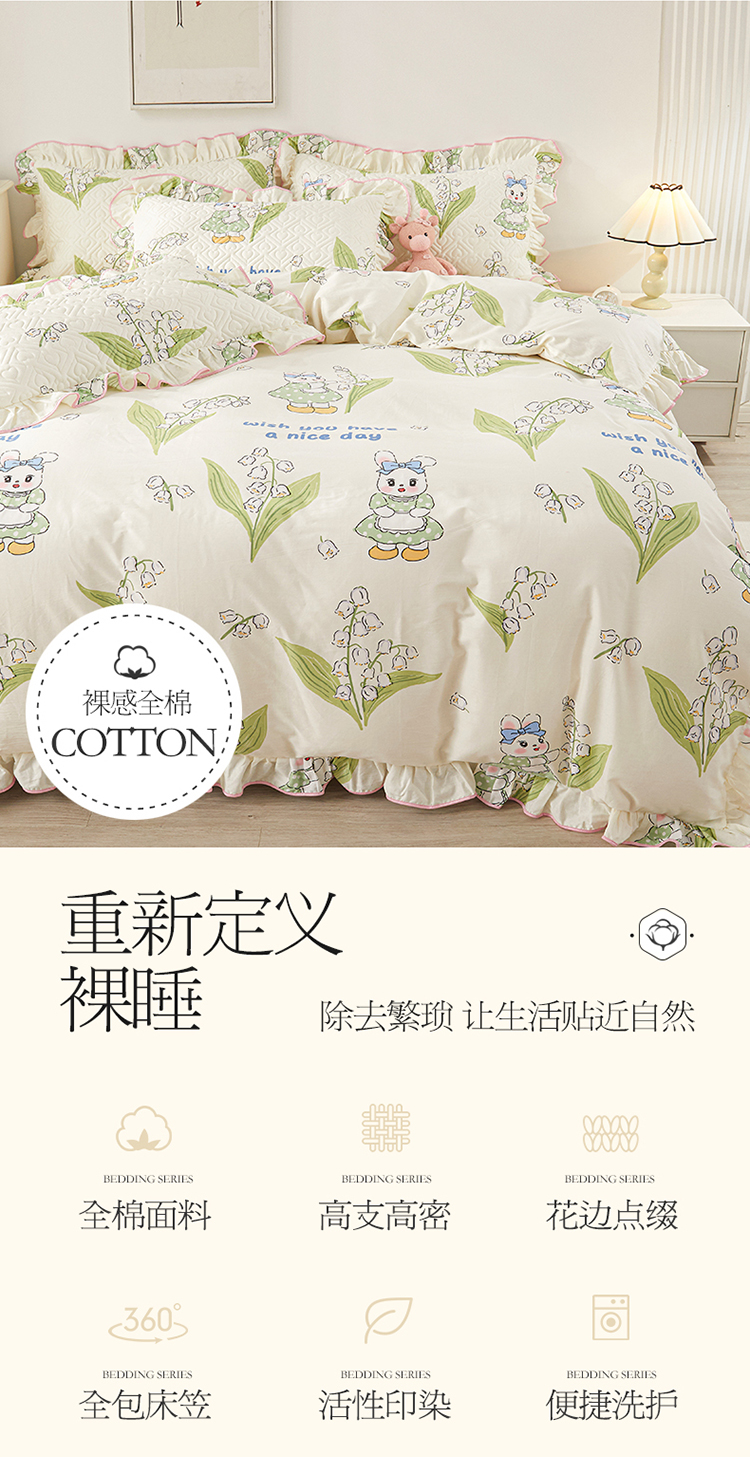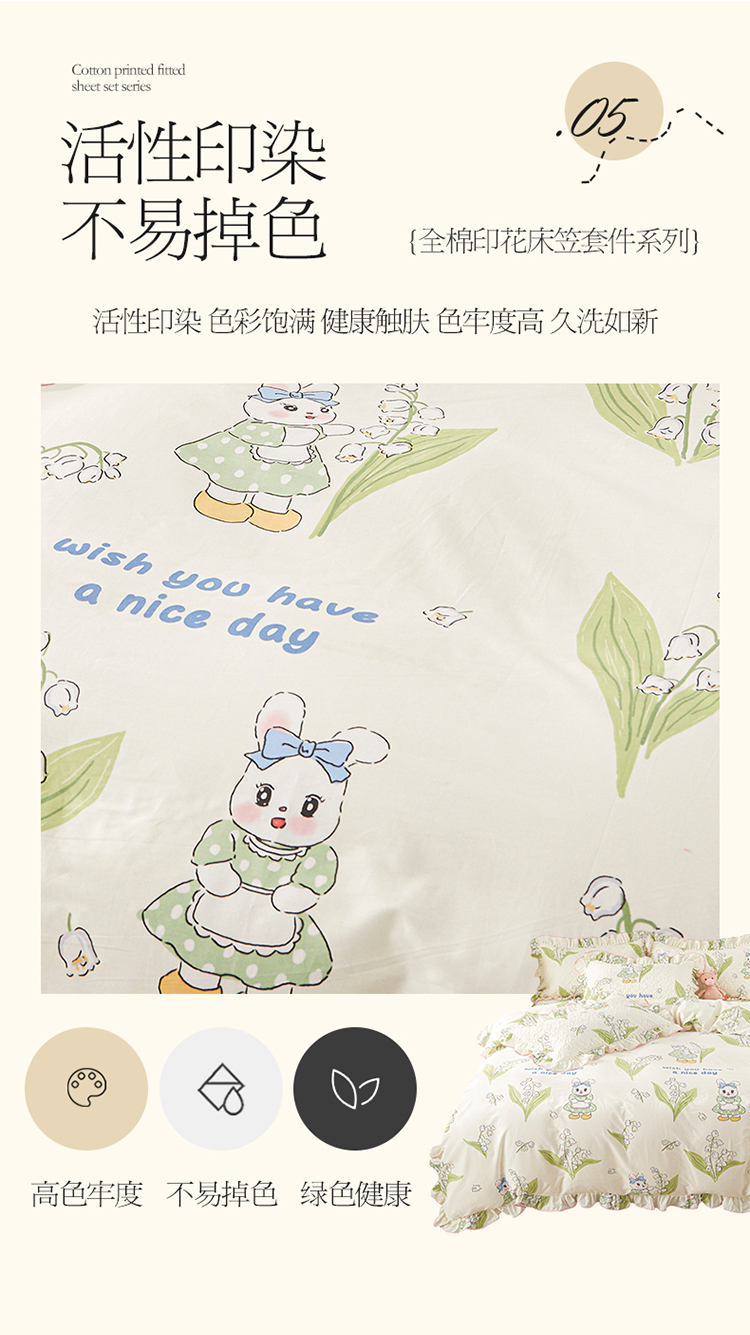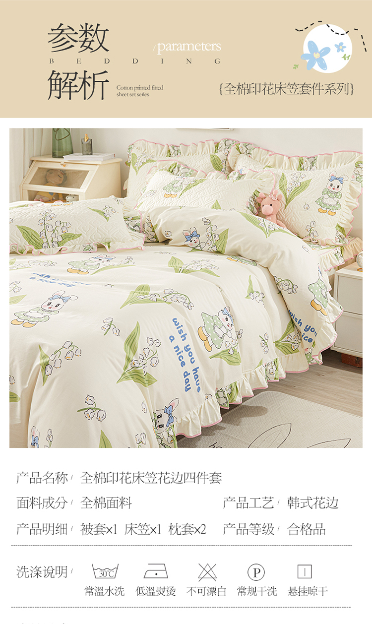商品名称:宜凡 2023新款全棉印花床笠四件套 含羞兔