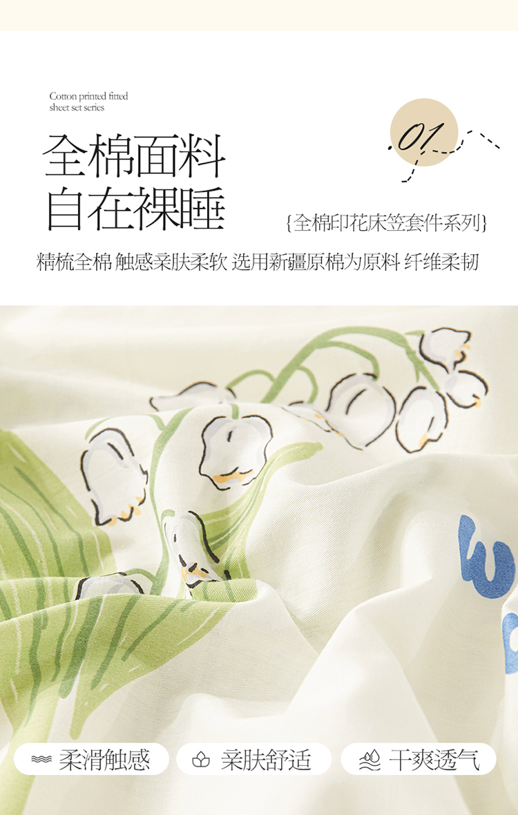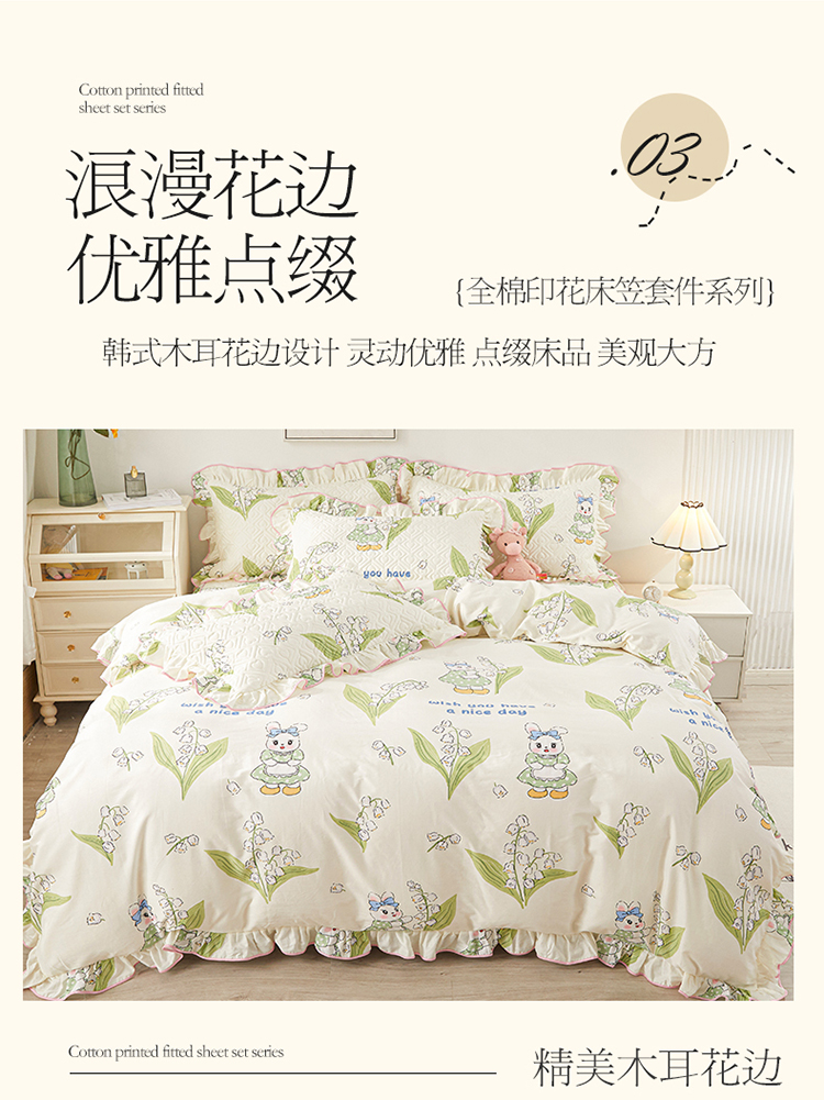 (总)宜凡家纺 2025新款全棉数码印花床裙三件套系列一,静若幽兰,浮云织梦,梦幻花园,陌上花开