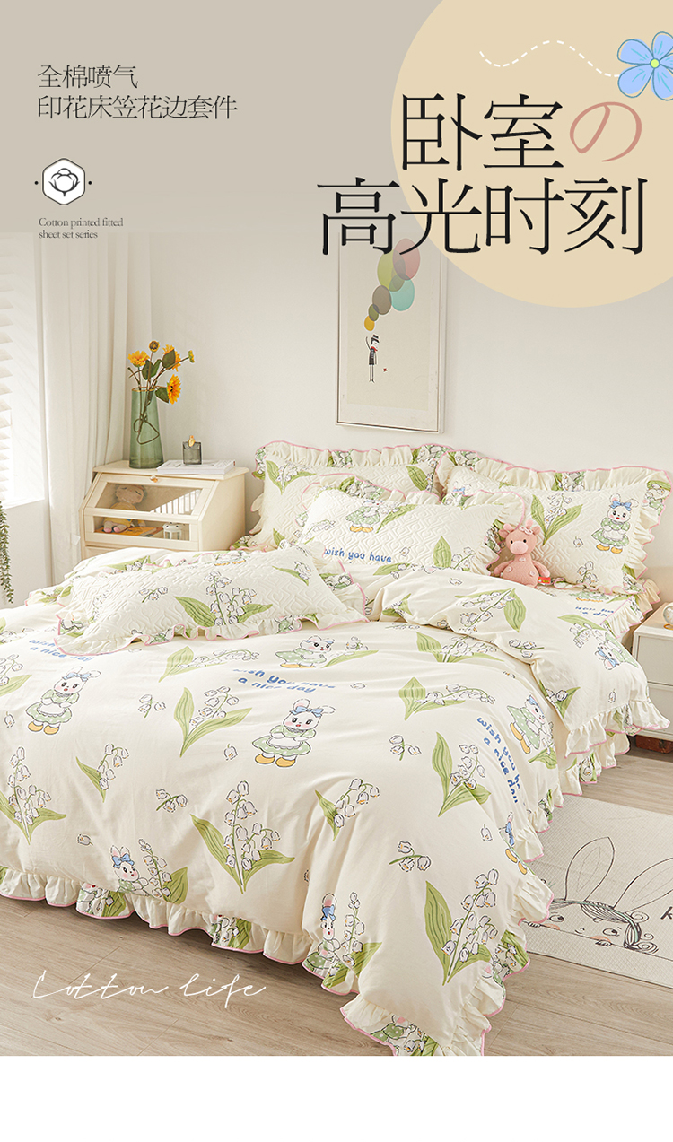 宜凡 2023新款全棉印花床笠四件套 含羞兔