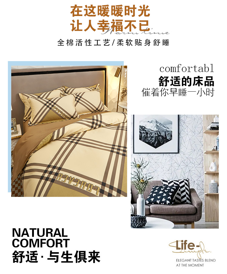 商品名称:雲归梦 2023新款13372大版活性四件套 杰菲-咖