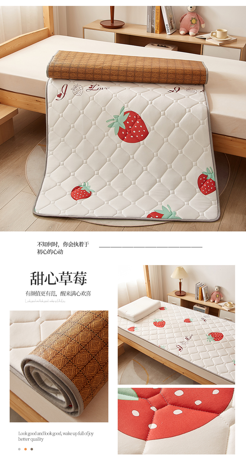 商品名称:花言狐语 2025新款AB双面可用藤席夹棉床褥地垫单人款 甜心草莓