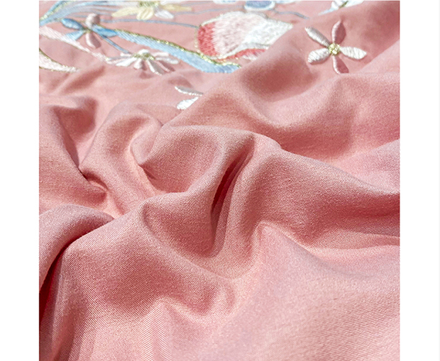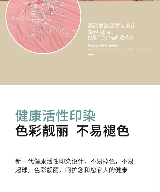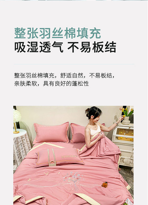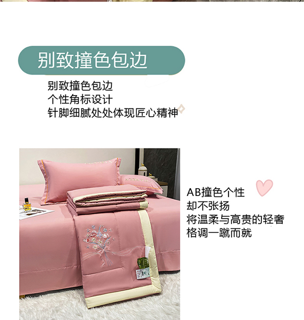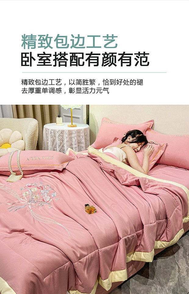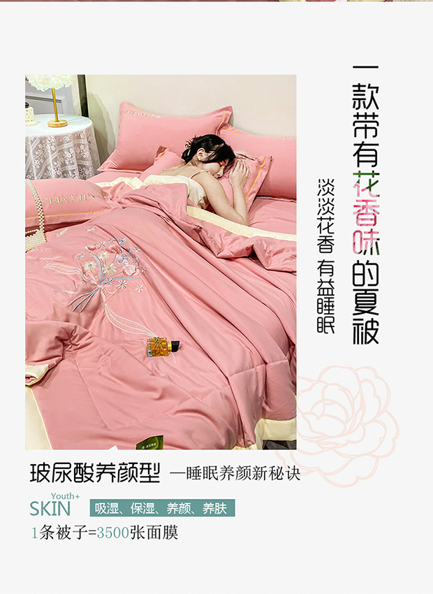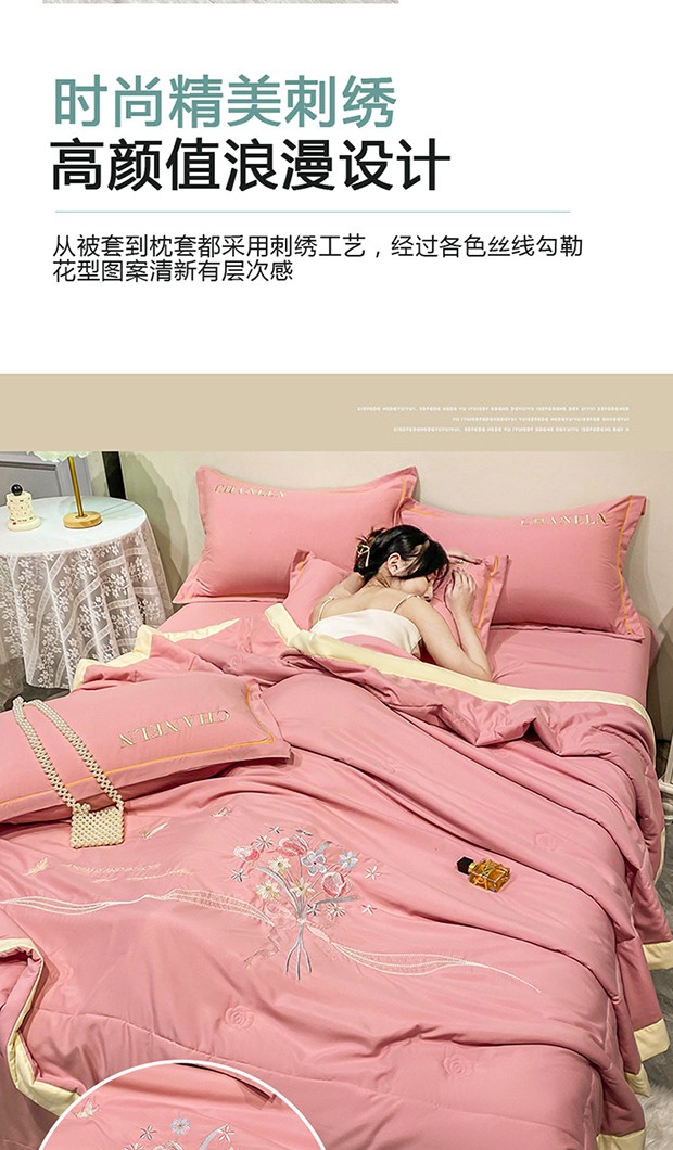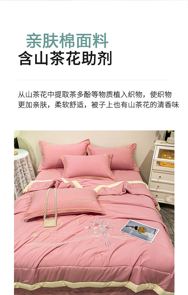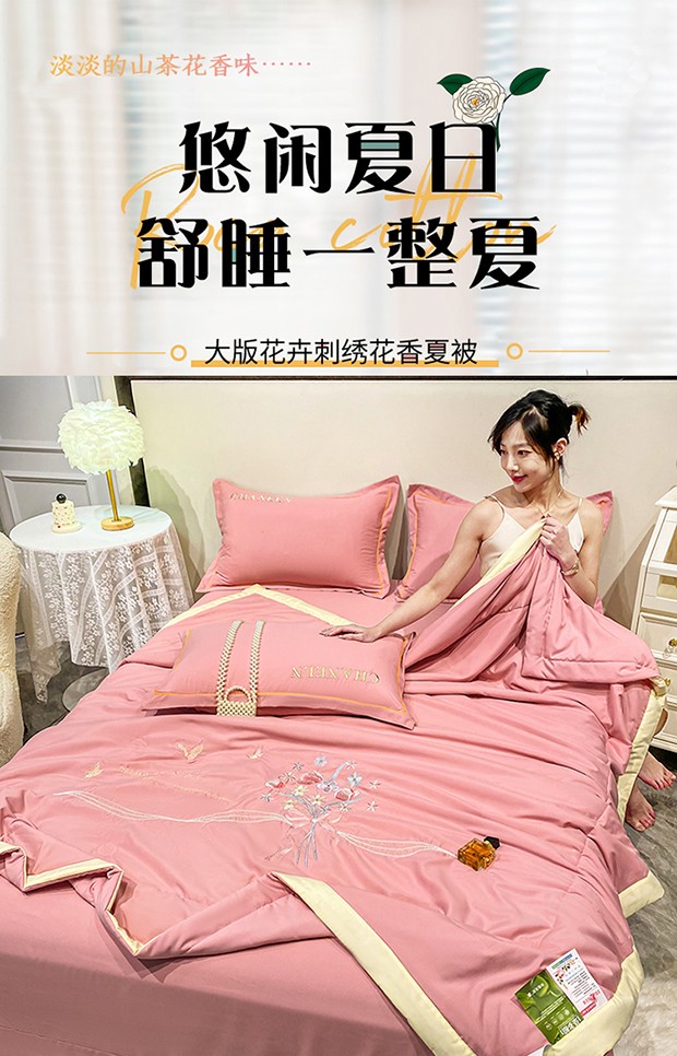 商品名称:2023苏米娜刺绣山茶花香夏被四件套天丝棉麻双层纱磨毛纯棉夏凉空调夏被 花香伊人-豆沙