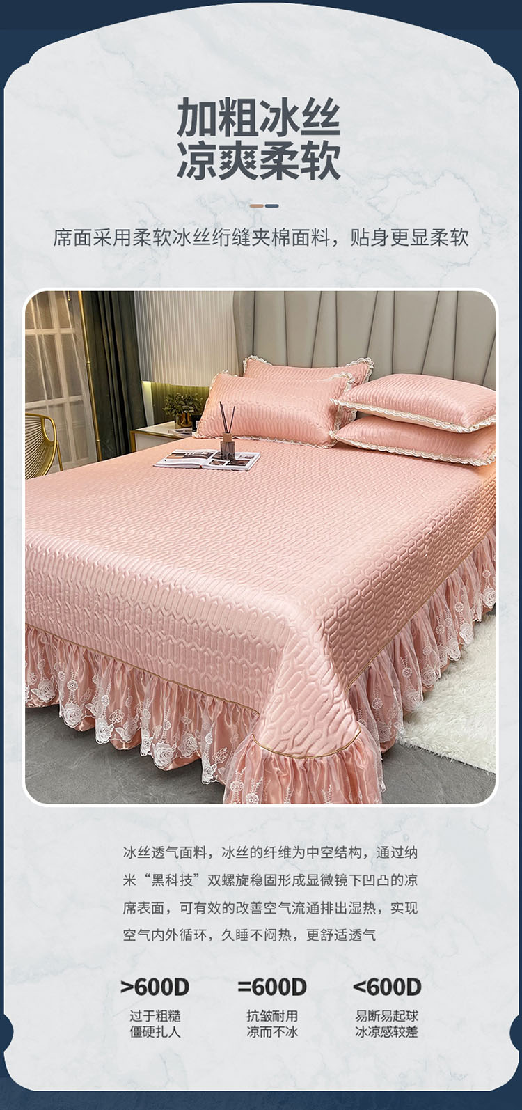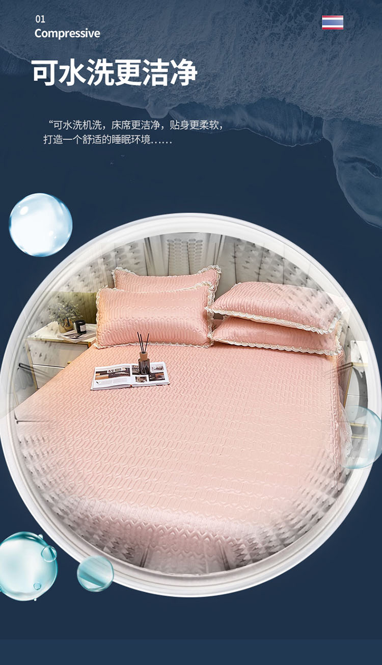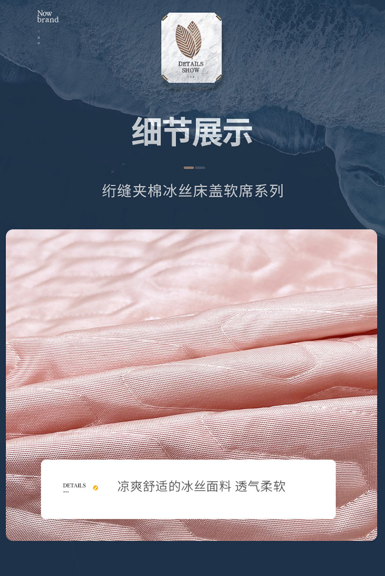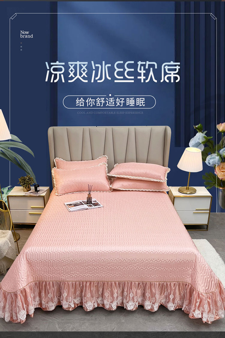 商品名称:恋尚 2023新款冰丝夹棉纯色床盖款软凉席三件套 星海玉