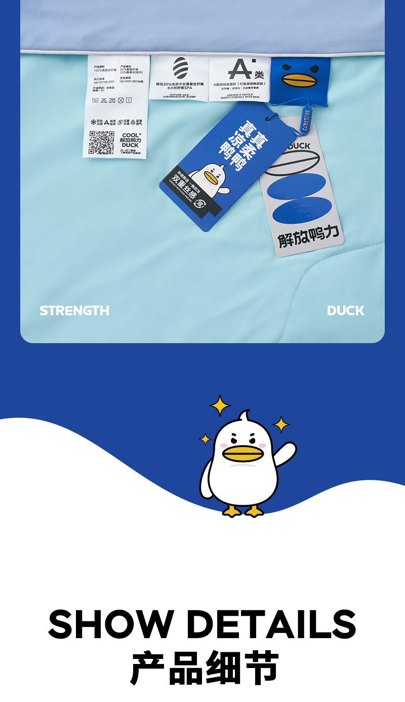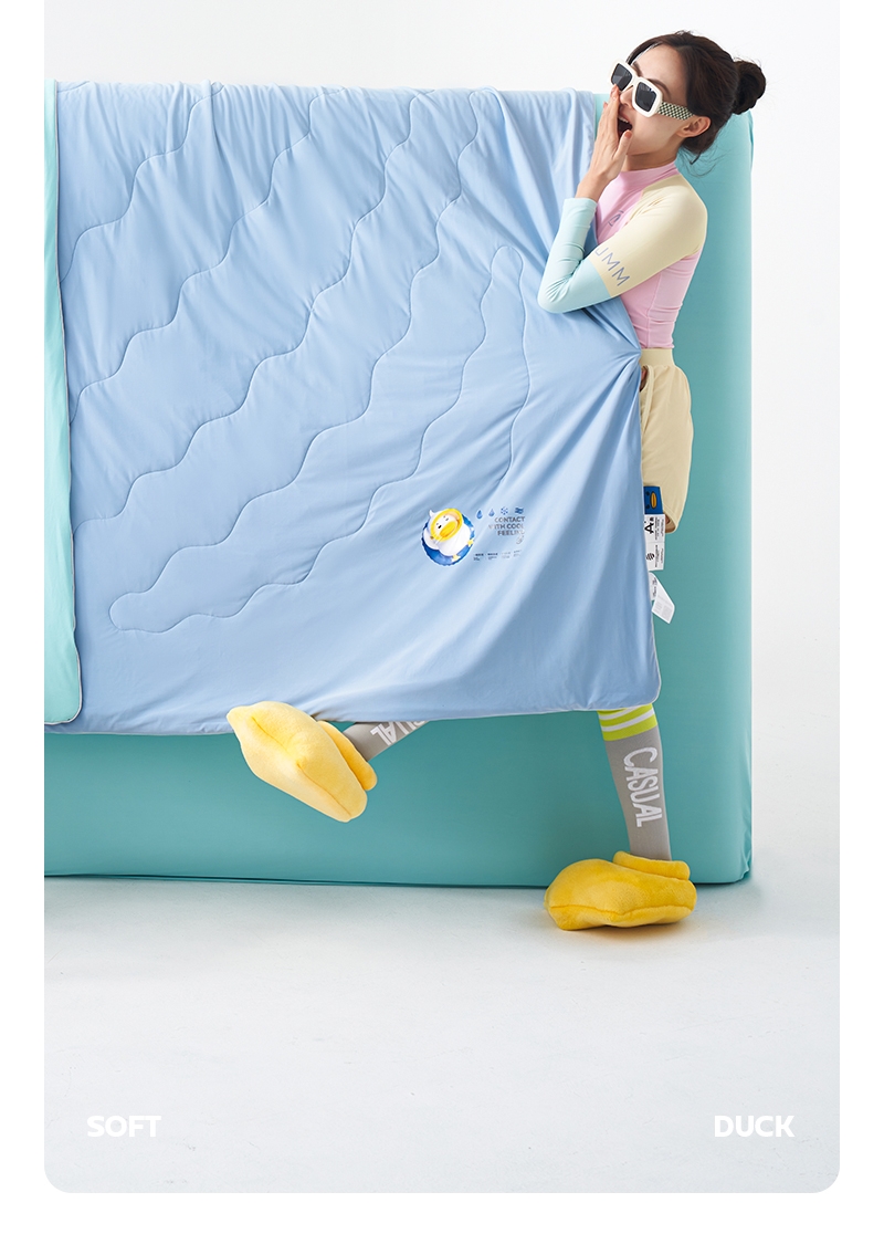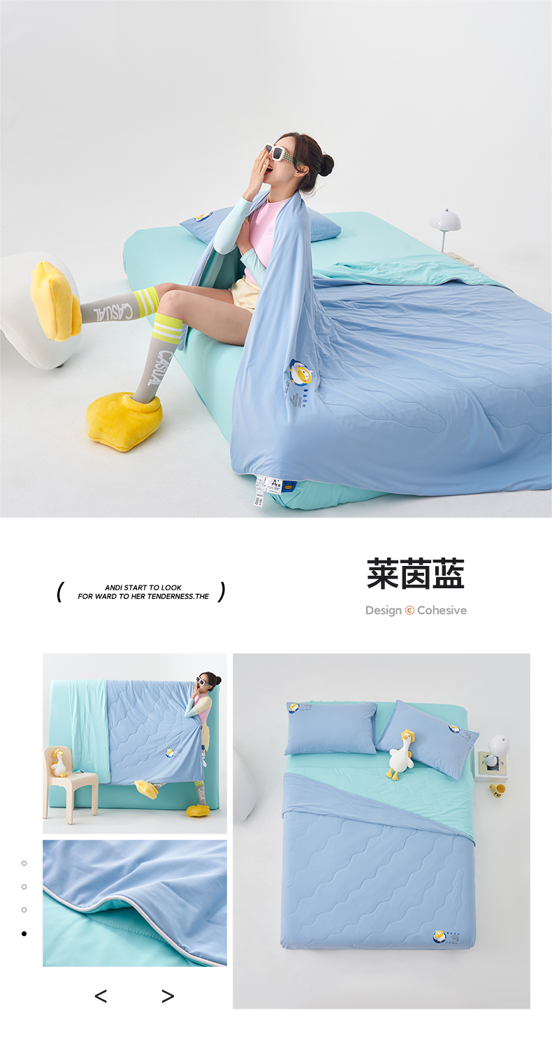 商品名称:莱福仕家纺 2024新款解放鸭力凉感蚕丝夏被 莱茵蓝