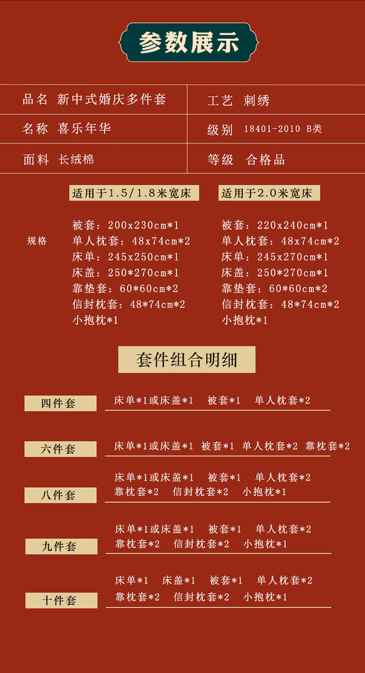 (总)宏羽纺家纺 2025新款全棉100%全棉新中式婚庆多件套,40S富贵之喜,40S皇朝喜嫁-红,40S皇朝喜嫁-金,40S龙凤有喜-金,40S龙凤庄园,40S龙腾凤仪-金,40S百子喜福,40S春色盎然,40S凤舞龙跃金,40S福瑞百子,40S富贵荣华-粉,40S富贵荣华-红,40S富贵荣华-金,40S开枝散叶,40S龙凤福禧-金,40S龙凤盛典 金 ,40S龙凤庄园-红,40S盘龙戏凤,40S如花似玉-红,40S如花似玉-金,40S甜蜜爱人-红,40S甜蜜爱人-金,40S我心永恒-红,40S喜乐龙凤-红,40S喜乐龙凤-金,40S一凤舞龙跃-红,40S一花期如梦-红,40S一花期如梦-金,40S甜蜜之恋-红,40S一嫁娶-金,40S一嫁娶,40S一龙凤盛典-红,40S一往情深,纯棉时尚-爱漾,纯棉时尚-恋语-金,纯棉时尚-玫瑰花海,40S甜蜜之恋-红,40S甜蜜之恋-金,情比金坚,百子百福