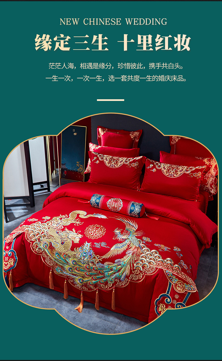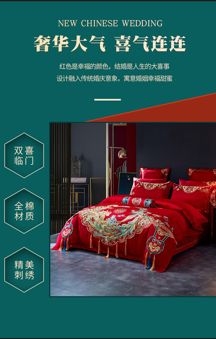 (总)宏羽纺家纺2025新款13372全棉全工艺喷气四件套-最美嫁衣,最美嫁衣
