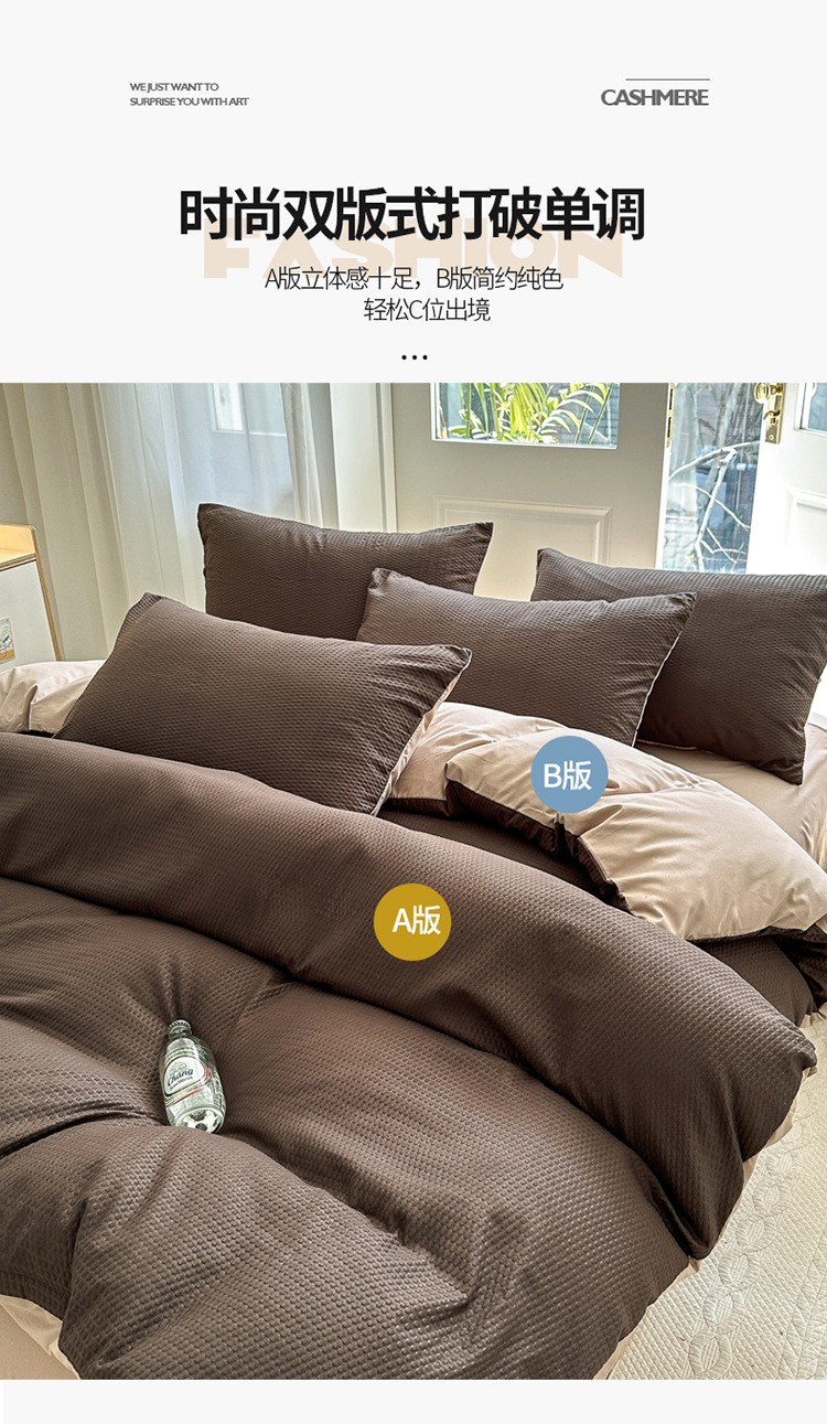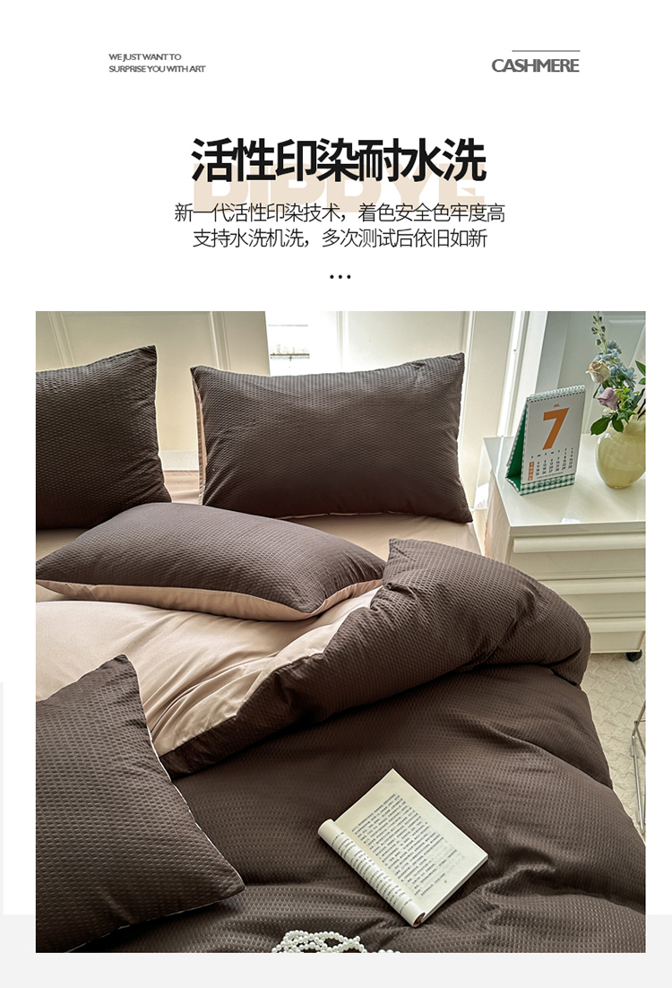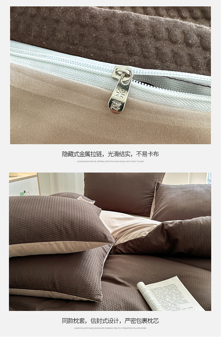 (总)米粒 2022直播爆款纯色AB版华夫格四件套磨毛水洗棉,粉咖,橄榄绿,米兰,米绿,牛仔蓝,浅灰,浅深灰,柔粉玉,水绿,天空蓝,紫咖,紫米