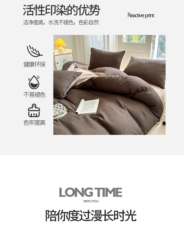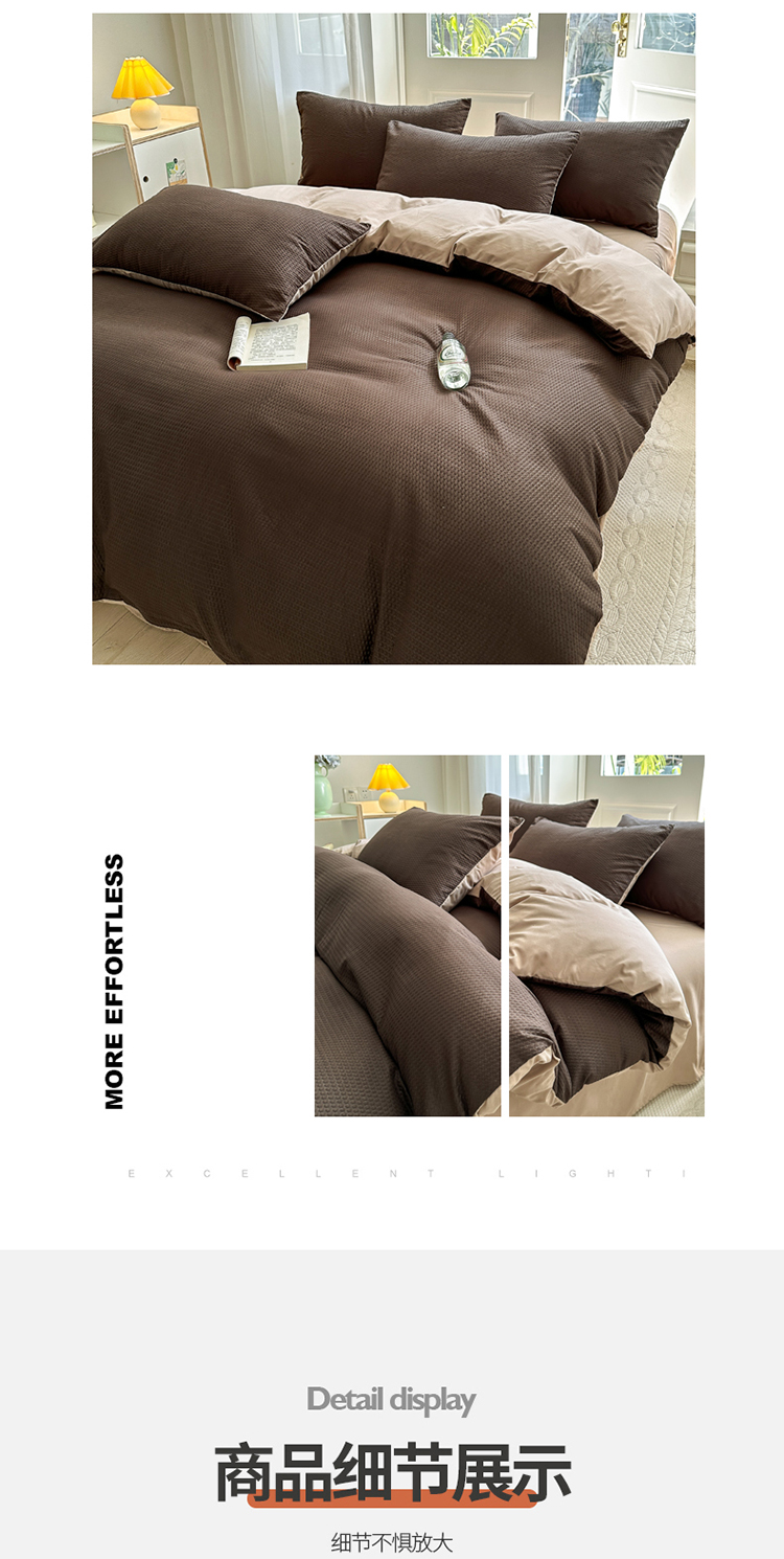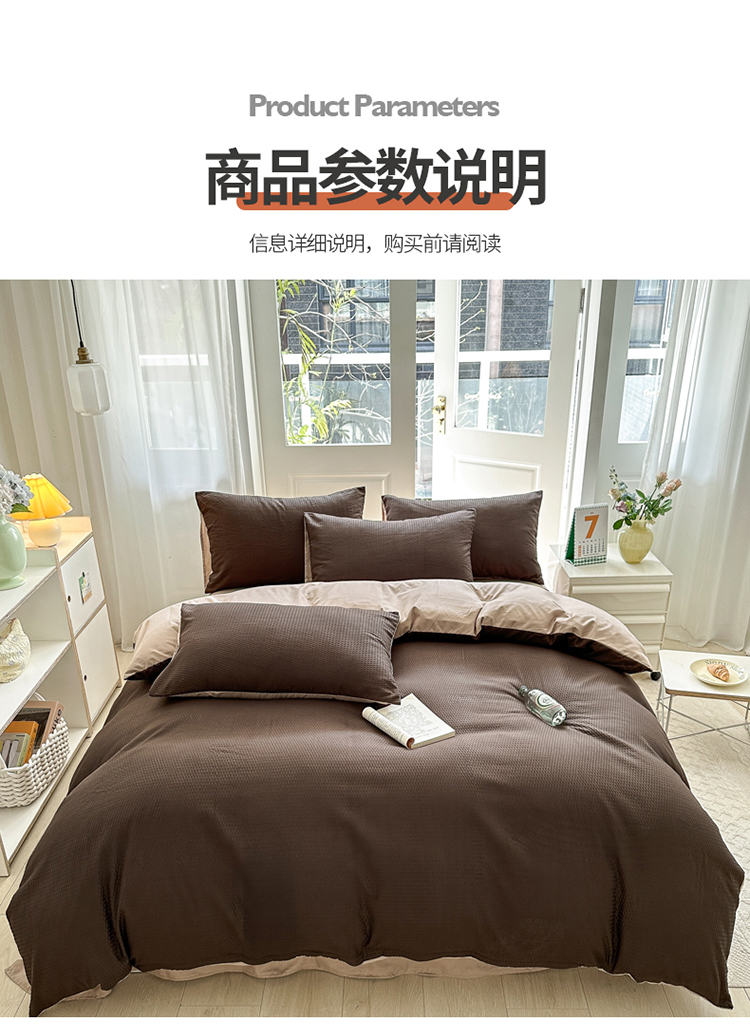 商品名称:米粒家纺 2023新款AB版华夫格四件套 金咖