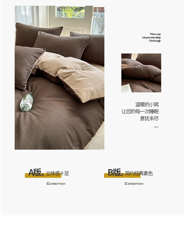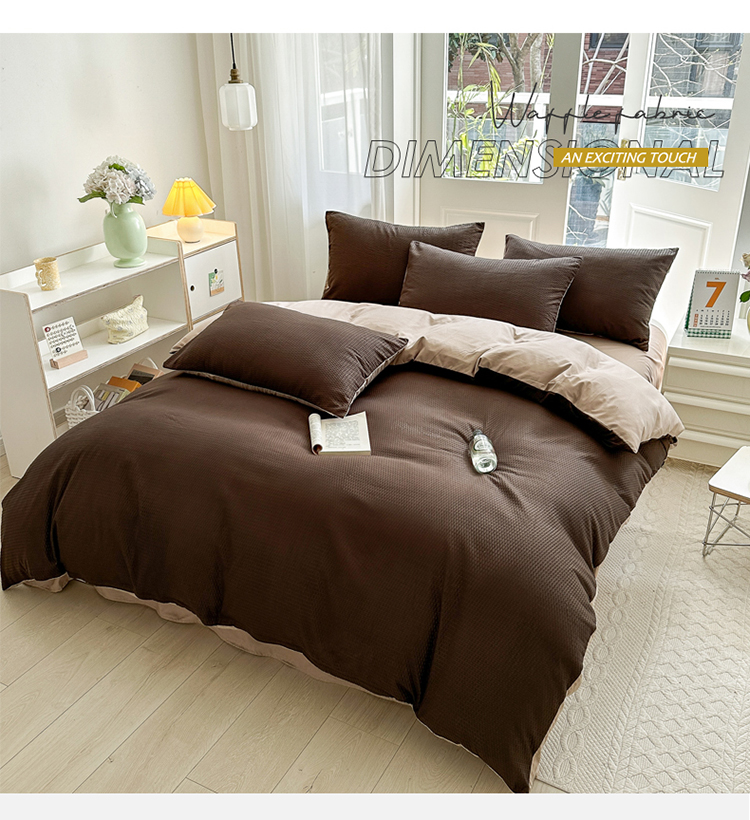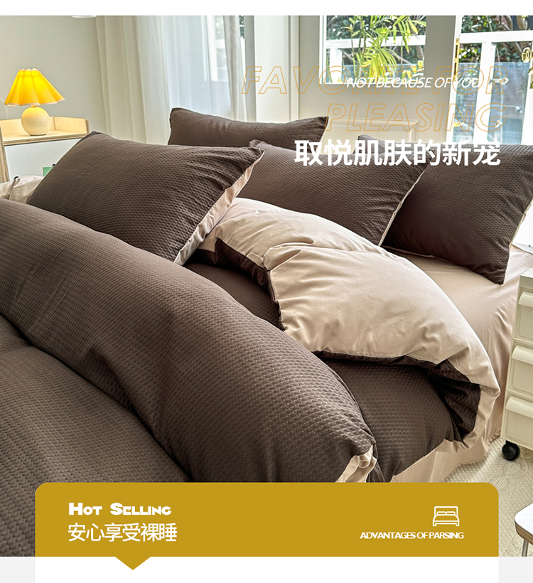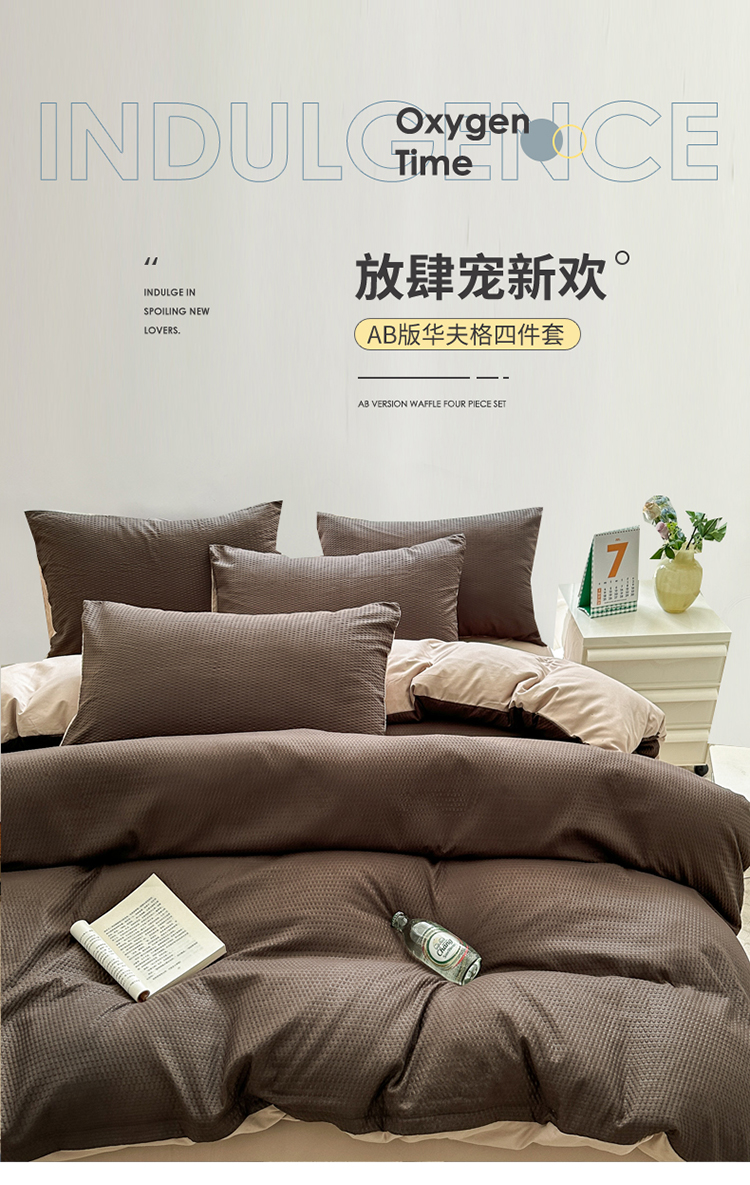 米粒家纺 2023新款AB版华夫格四件套 金咖
