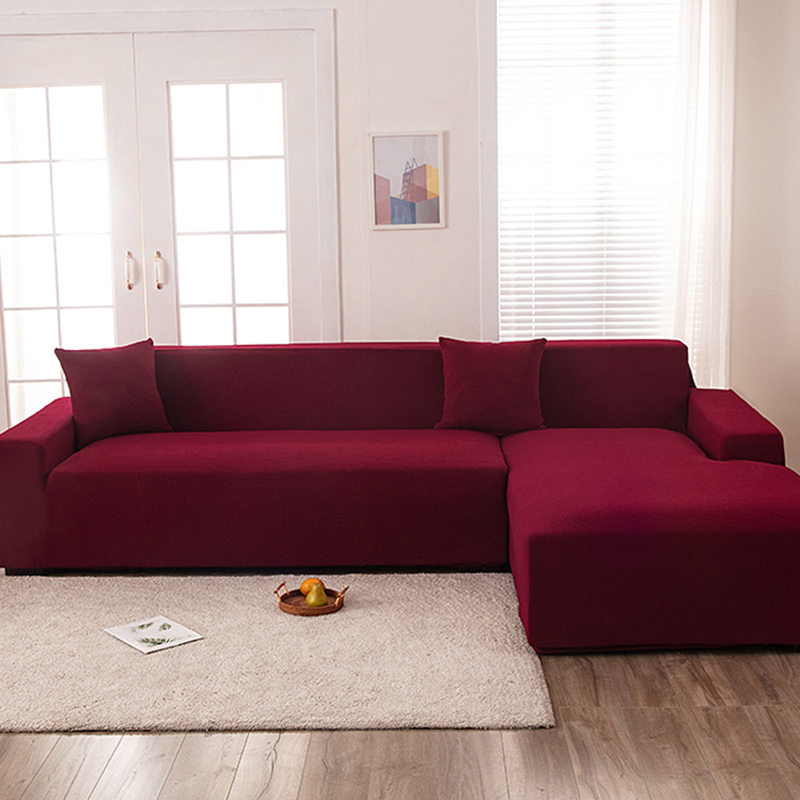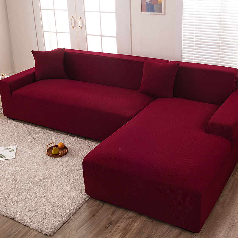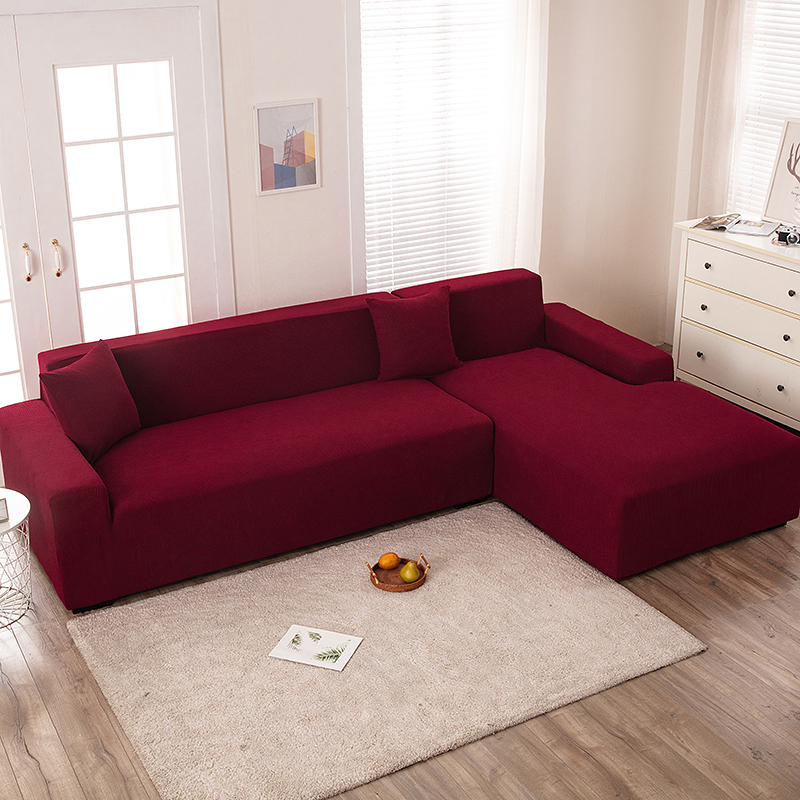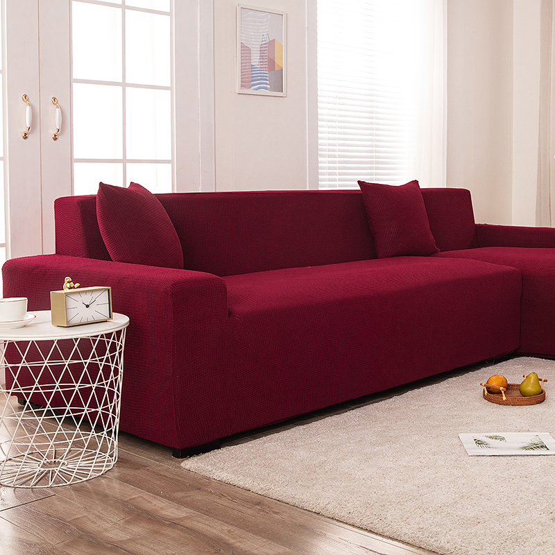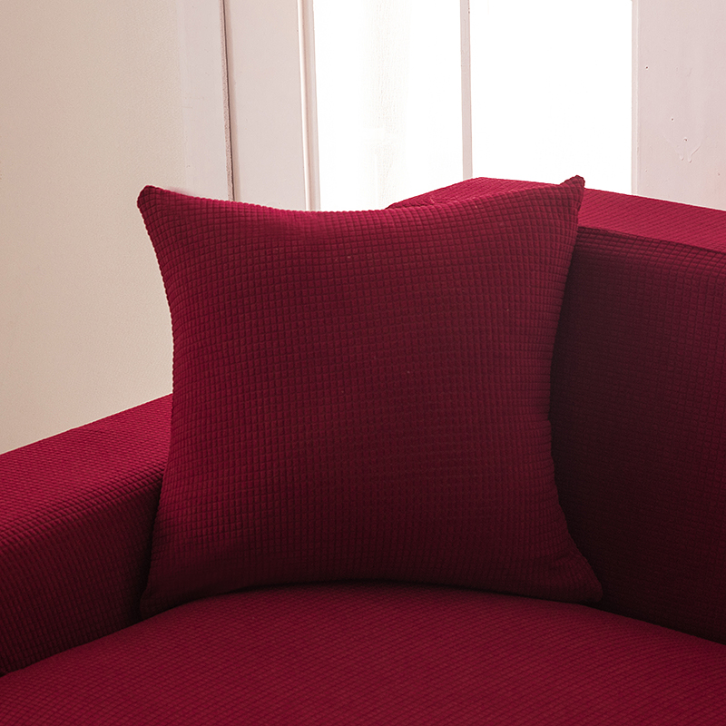 2023新款华夫格防水玉米绒组合沙发套 酒红色