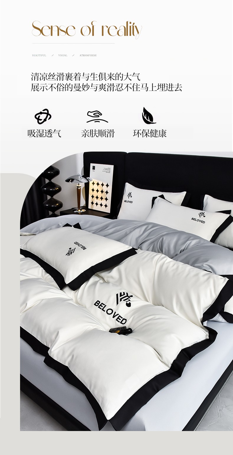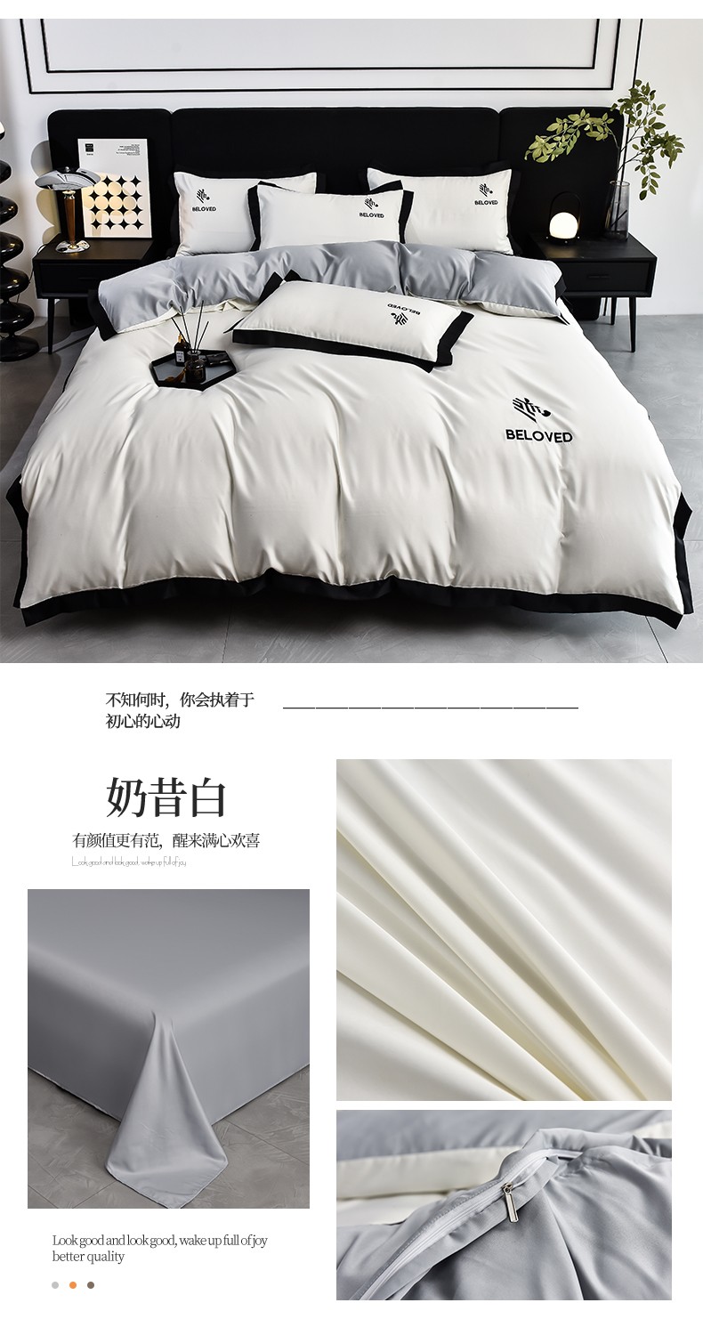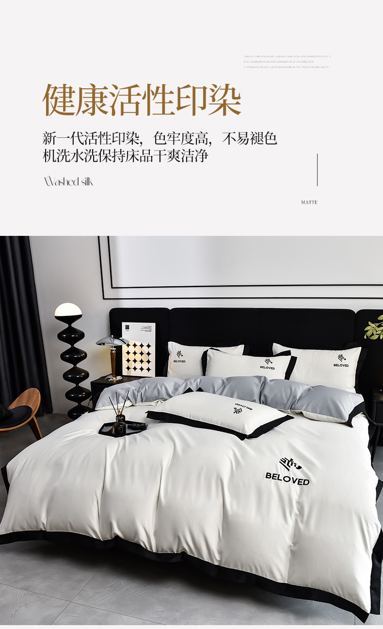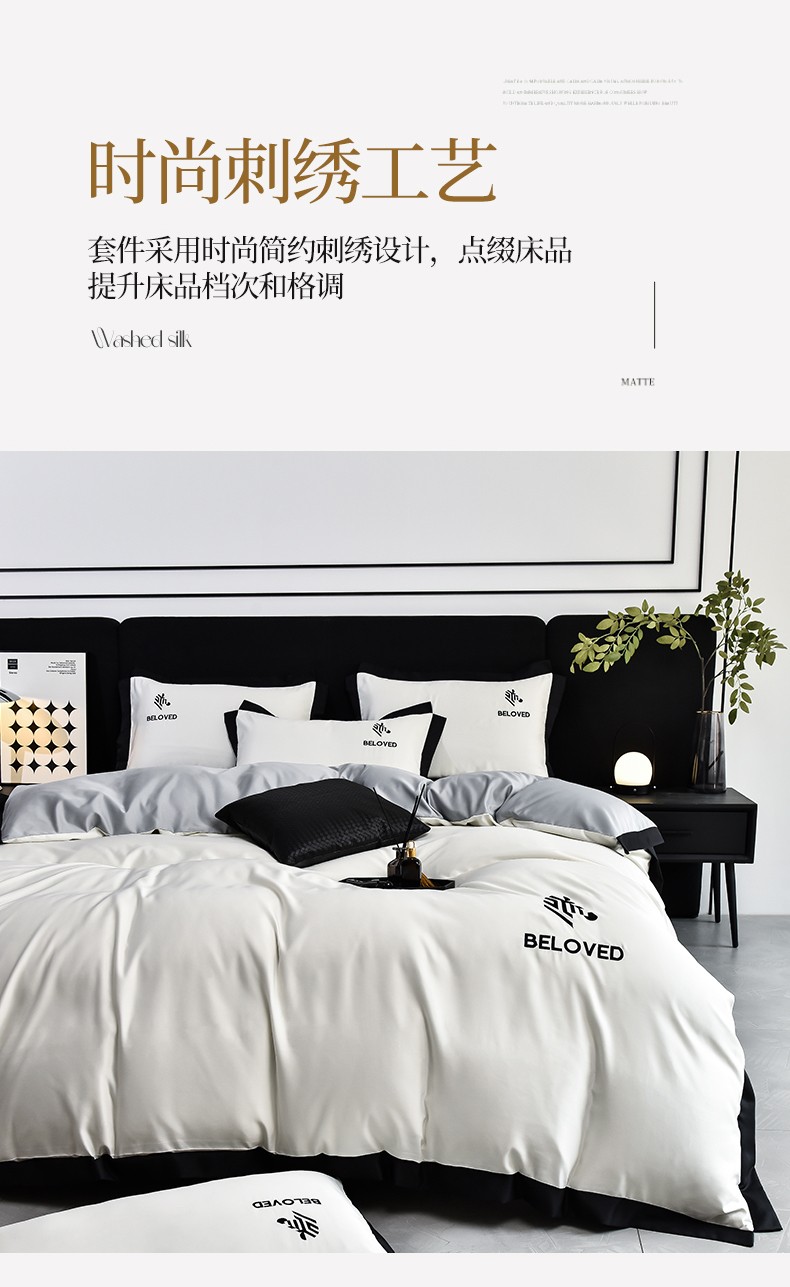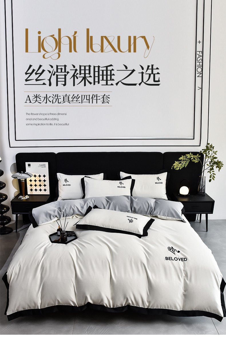 米奈 2024新款A类水洗真丝四件套-安迪 奶昔白