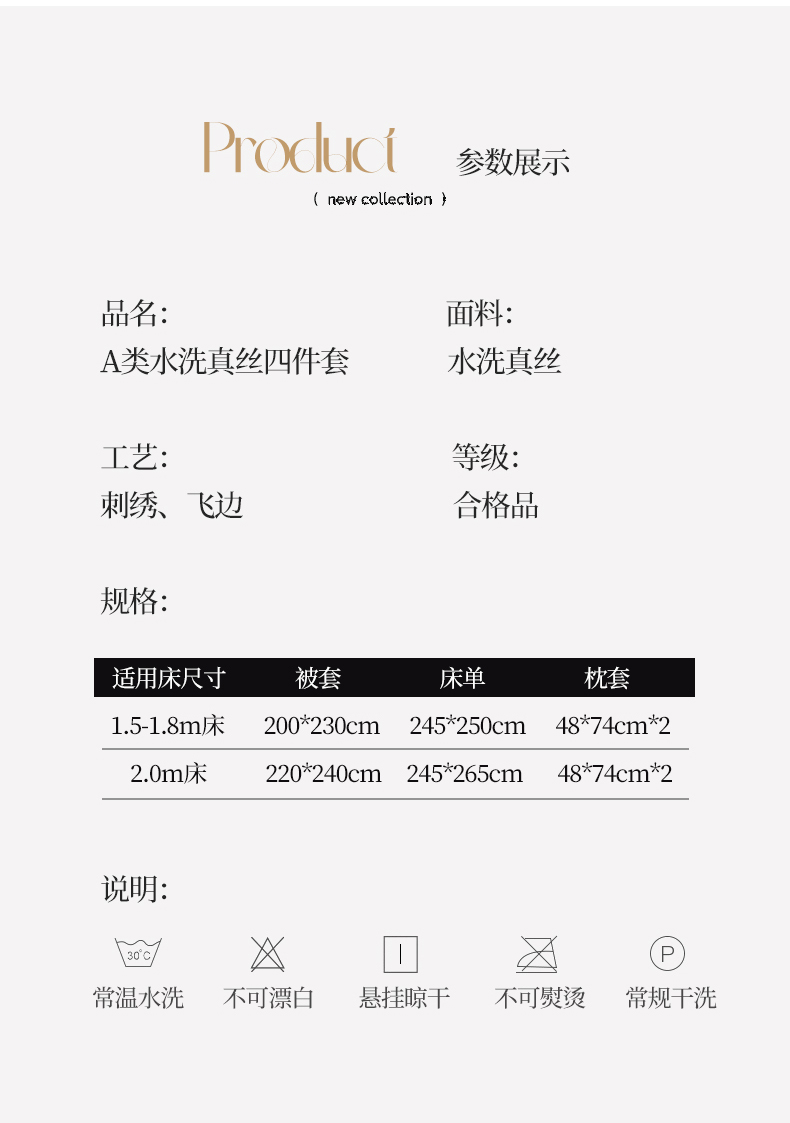 商品名称:米奈 2024新款A类水洗真丝四件套-安迪 奶昔白
