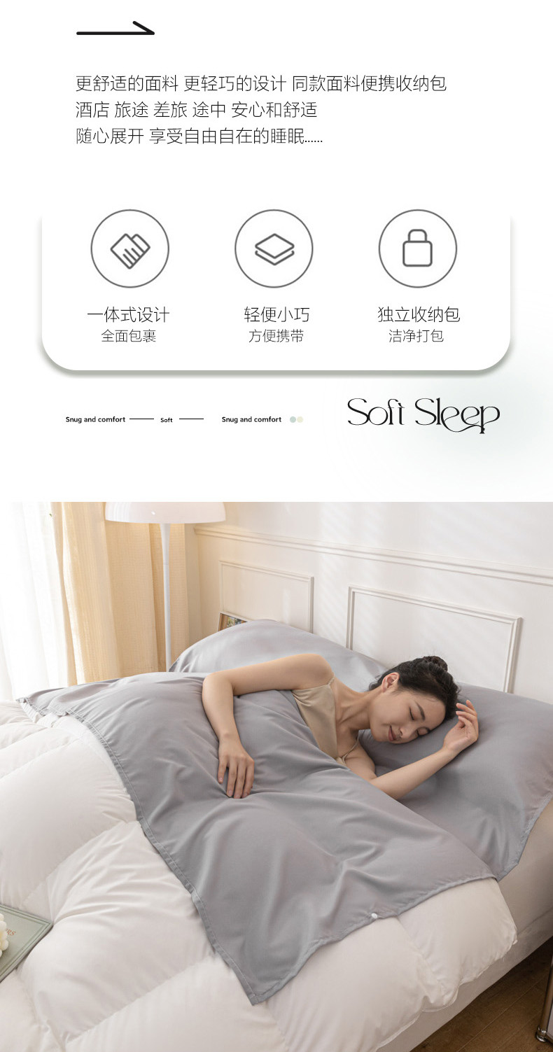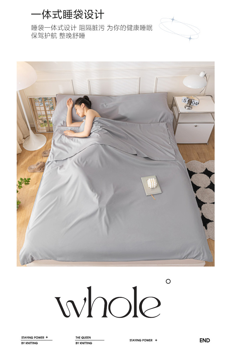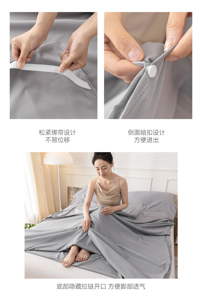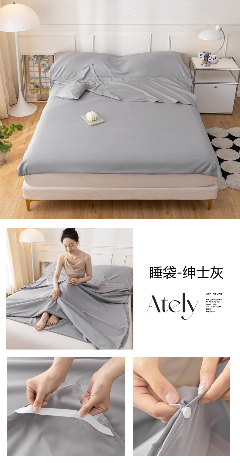 商品名称:慕澄2023新款水洗棉纯色酒店隔脏旅行睡袋 睡袋-绅士灰