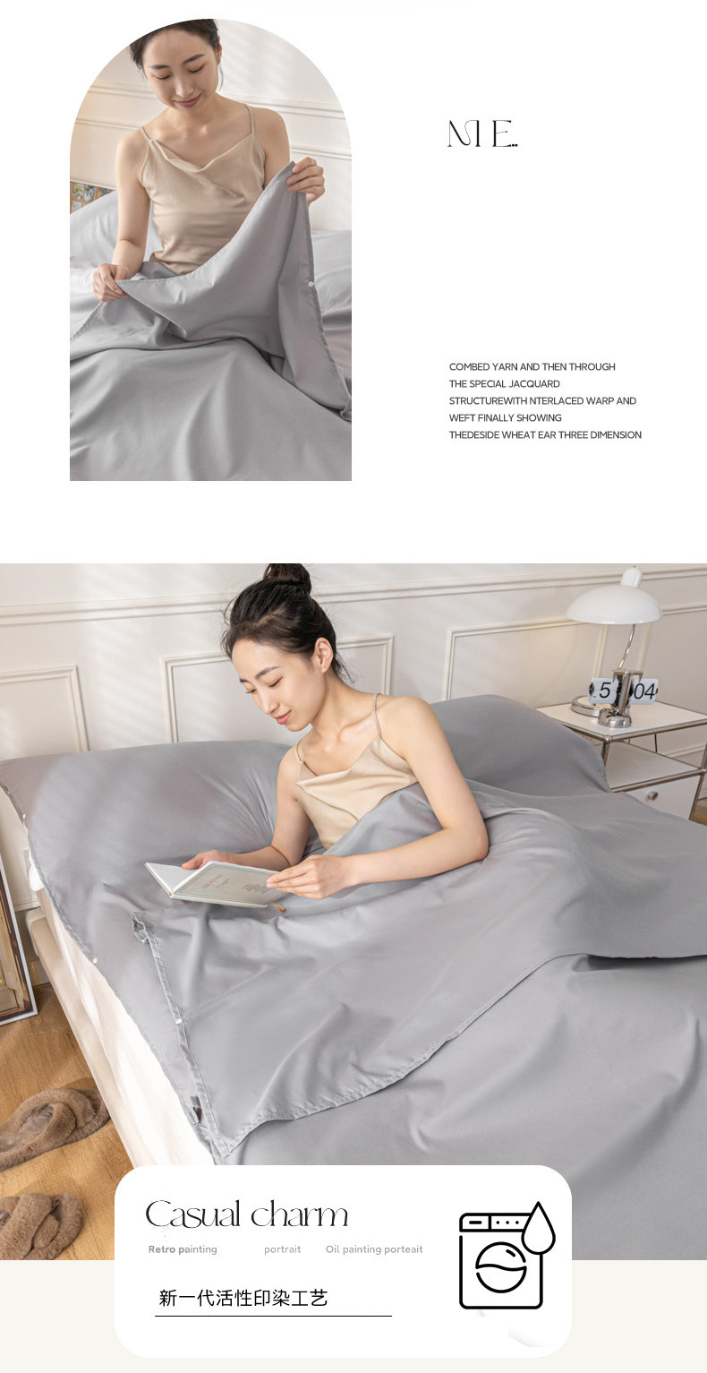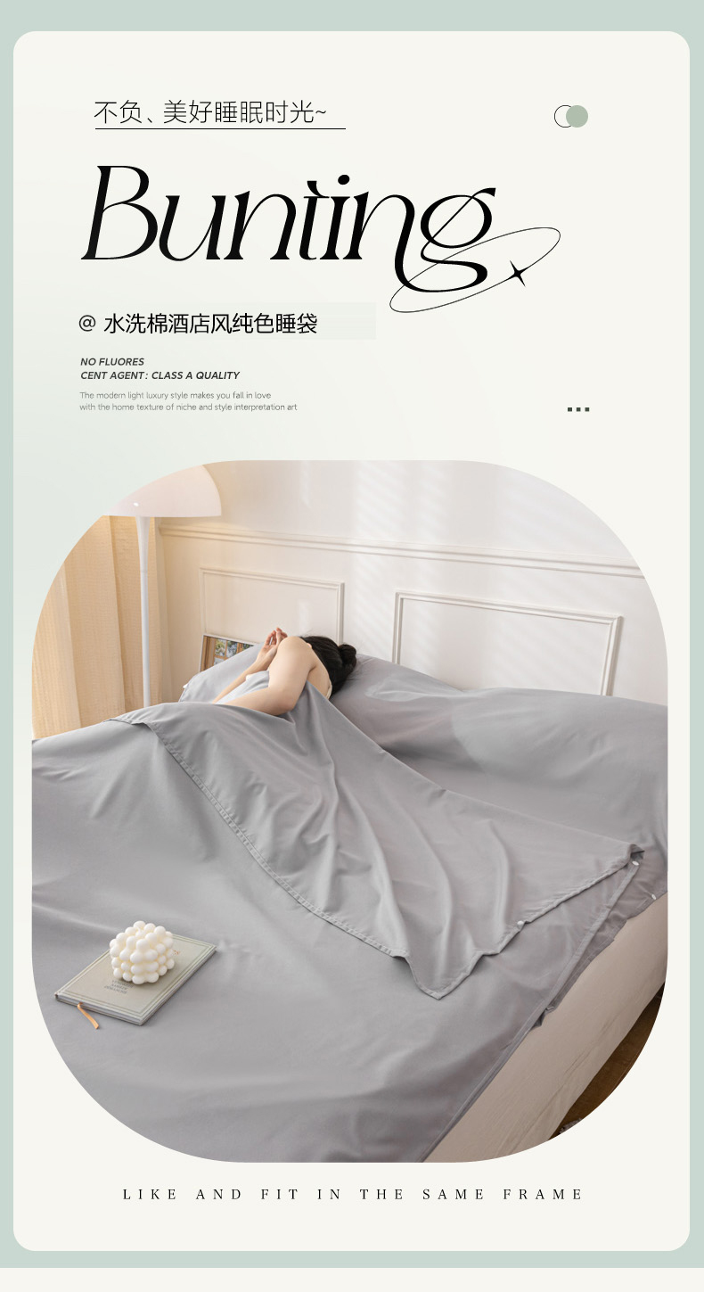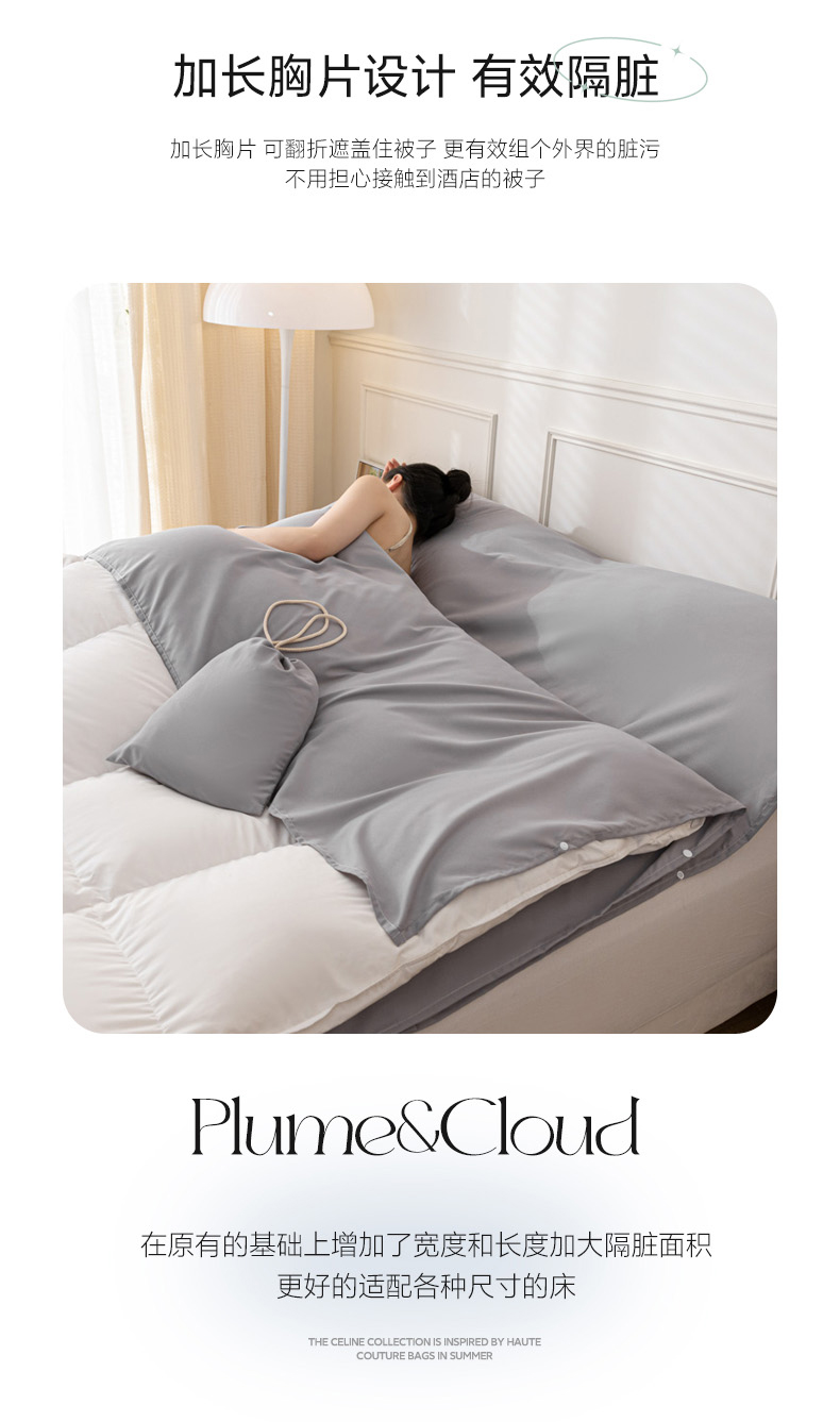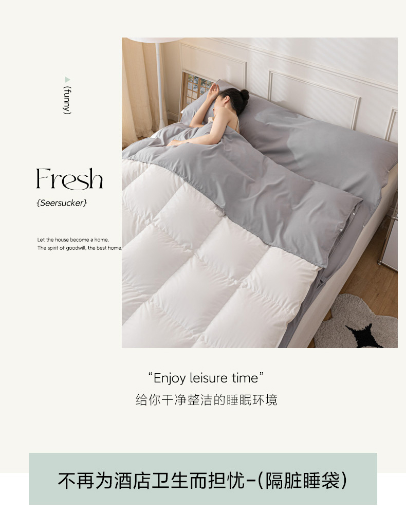 商品名称:慕澄2023新款水洗棉纯色酒店隔脏旅行睡袋 睡袋-绅士灰