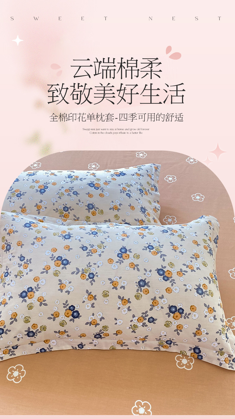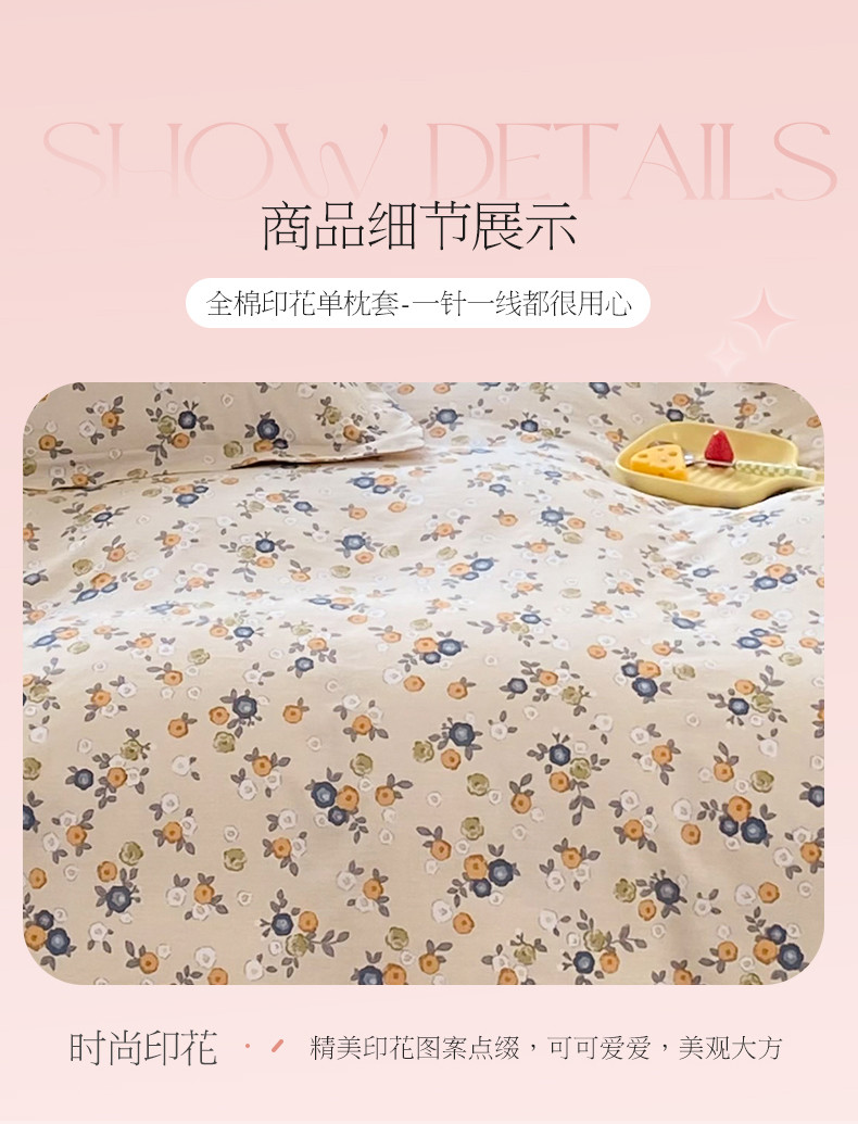 多品家纺 2023新款12868全棉双针单枕套 粉墨年华