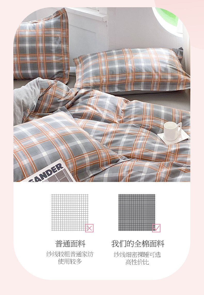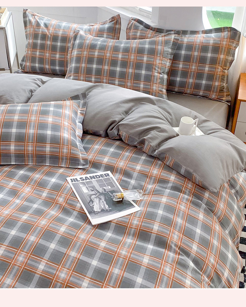 (总)多品家纺 2025新款简约复古风水洗棉格子四件套,黑小格+黑,柏林+黑,柏林+黑小格,黑小格+杏黄,时光+黑,时光+黑白格