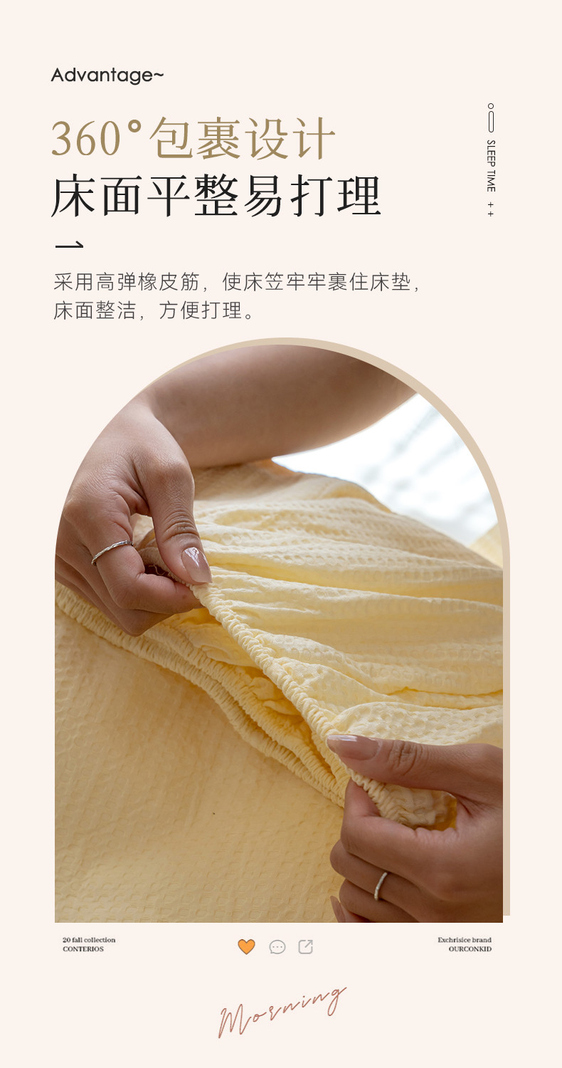 • 91家纺网 家纺一手货源 找家纺 时光里 2023新款60支全棉华夫格单品床笠 香芋紫