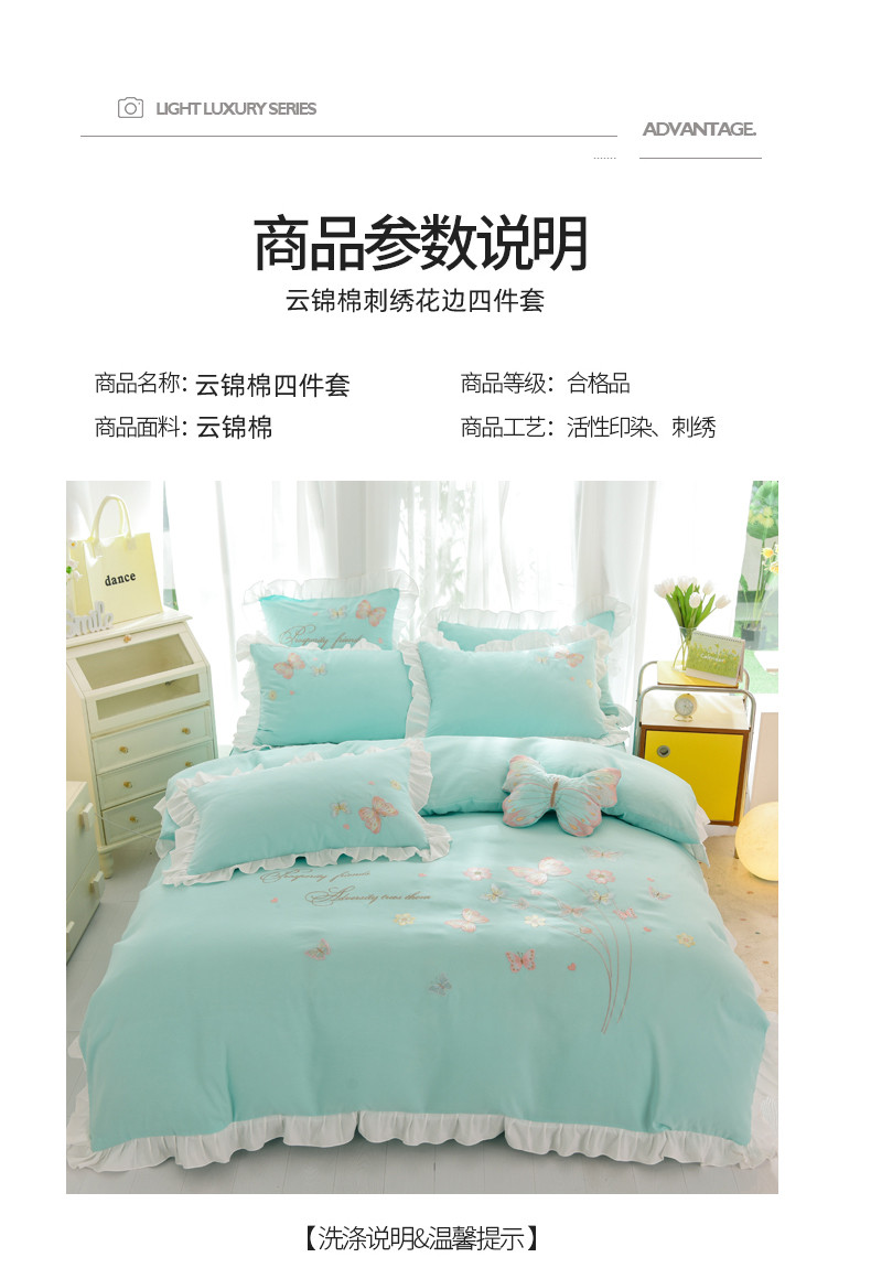 当前位置: 91家纺网 > 商品网购 > 床品套件 > 四件套 > 全棉普通四件套 > 丝印良品 2023新款云锦棉春卉四件套系列 春卉-碧绿